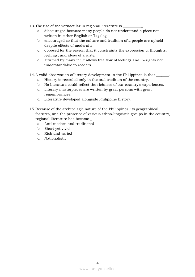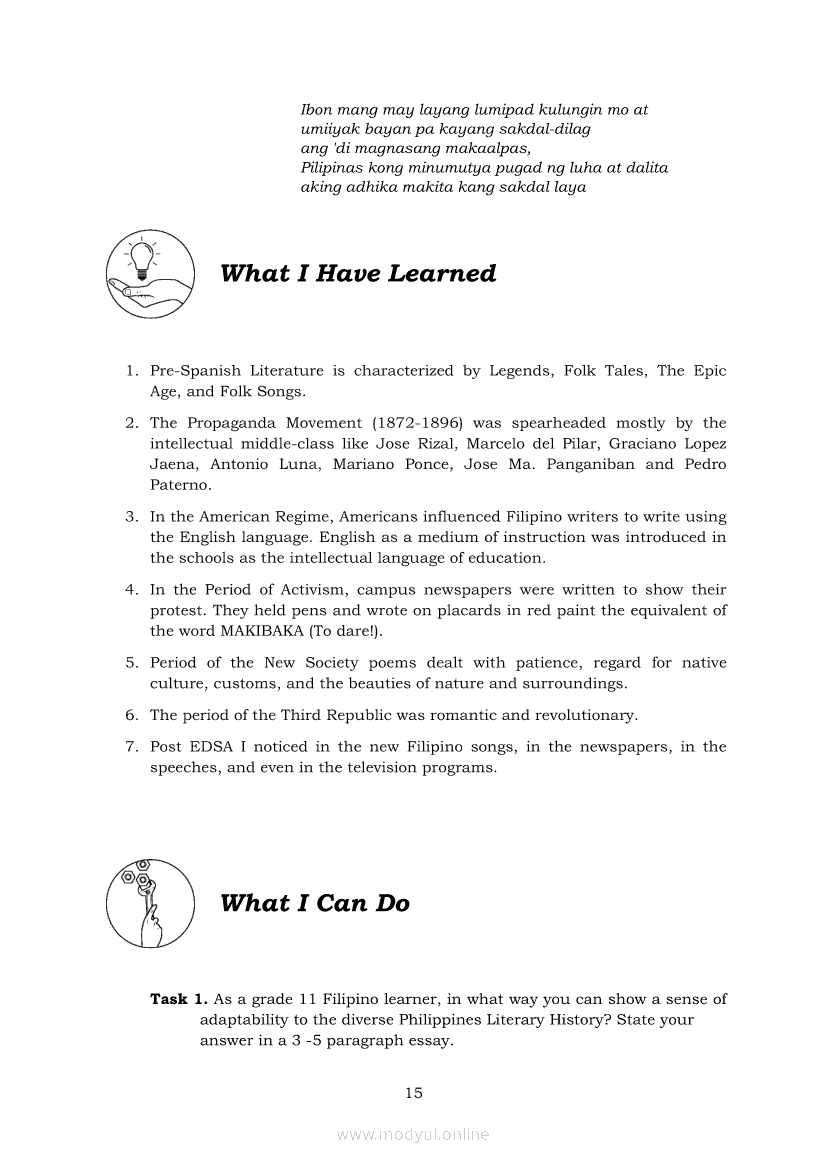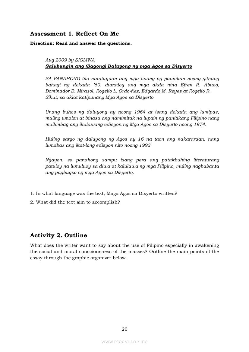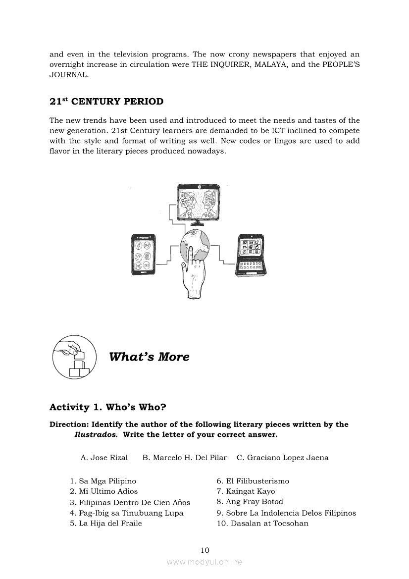 21st Century Literature from the Philippines and the World Module 1: Geographic, Linguistic and Ethnic Dimensions of Philippine Literary History from Pre-Colonial to the ContemporaryApr 22, 2021 SHSGrab your copy of Collegio Advance - ULTIMATE Updated College Entrance Exam Reviewer and pass with flying colors 🎉. 21st Century Literature from the Philippines and the WorldRelated21st Century Literature from the Philippines and the World Module 5: Elements of a Short Story21st Century Literature from the Philippines and the World Quarter 2 – Module 8: Creative Literary Adaptations21st Century Literature from the Philippines and the World Quarter 2 – Module 9: Flash Fiction: The Plot21st Century Literature from the Philippines and the World Module 2: Conventional and 21st Century Genres21st Century Literature from the Philippines and the World Module 3: Context and Text’s Meaning