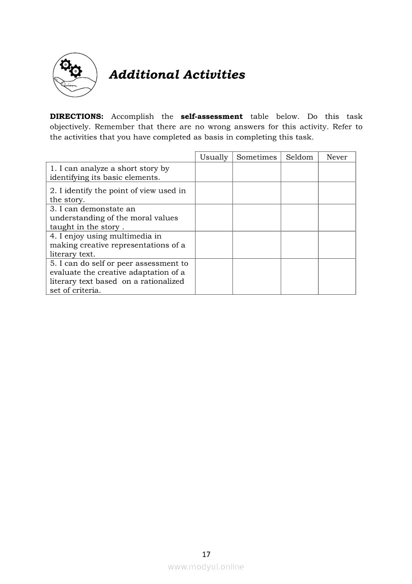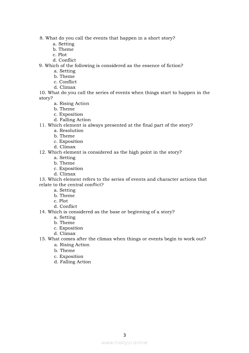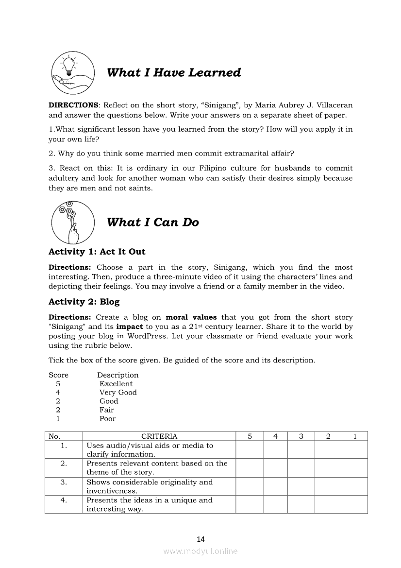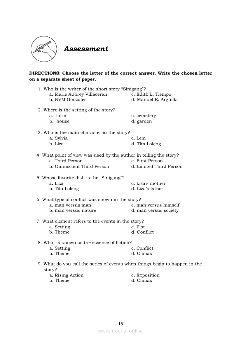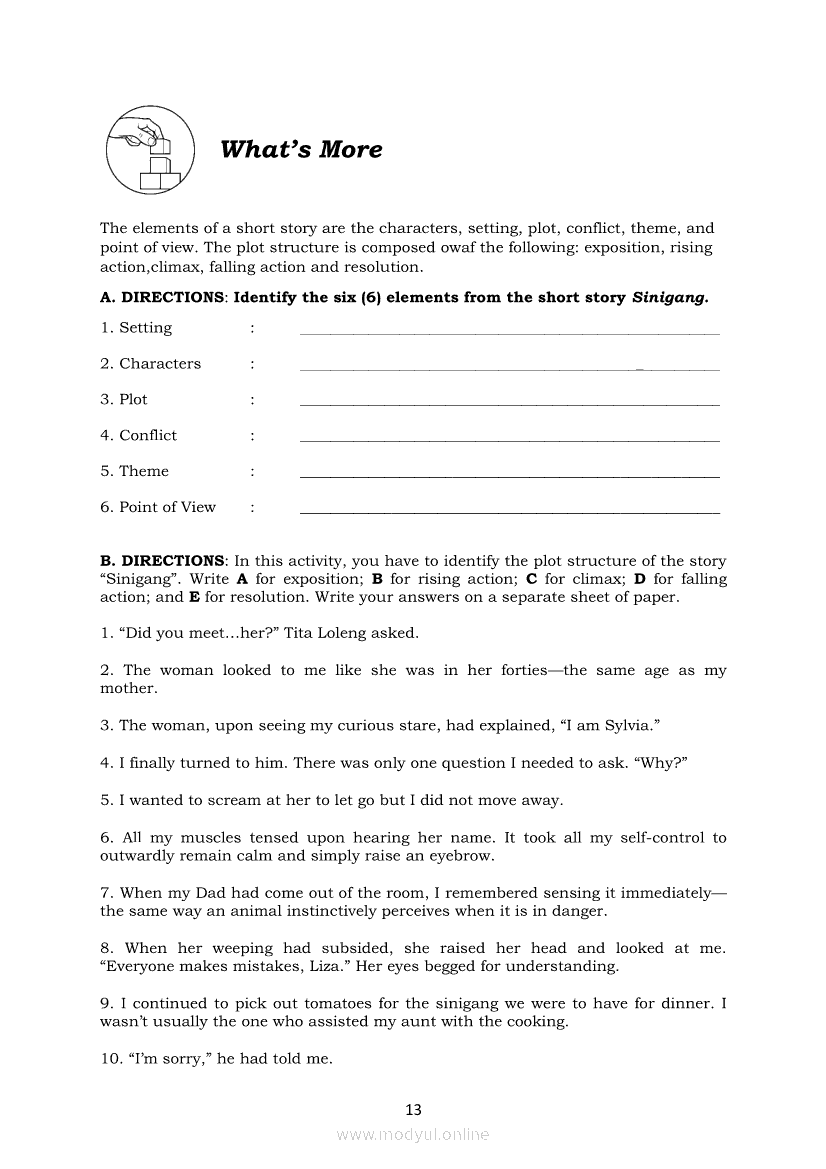 21st Century Literature from the Philippines and the World Module 5: Elements of a Short StoryApr 22, 2021 SHSGrab your copy of Collegio Advance - ULTIMATE Updated College Entrance Exam Reviewer and pass with flying colors 🎉. 21st Century Literature from the Philippines and the WorldRelated21st Century Literature from the Philippines and the World Module 3: Context and Text’s Meaning21st Century Literature from the Philippines and the World Quarter 2 – Module 9: Flash Fiction: The Plot21st Century Literature from the Philippines and the World Module 1: Geographic, Linguistic and Ethnic Dimensions of Philippine Literary History from Pre-Colonial to the Contemporary21st Century Literature from the Philippines and the World Module 4: Creative Representation of a Literary Text21st Century Literature from the Philippines and the World Quarter 2 – Module 6: Writing a Close Analysis and Critical Interpretation of Literary Texts Applying a Reading Approach