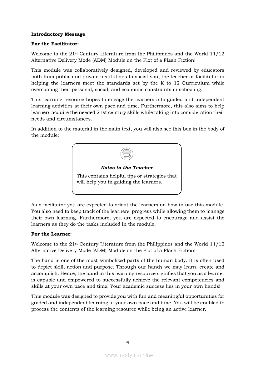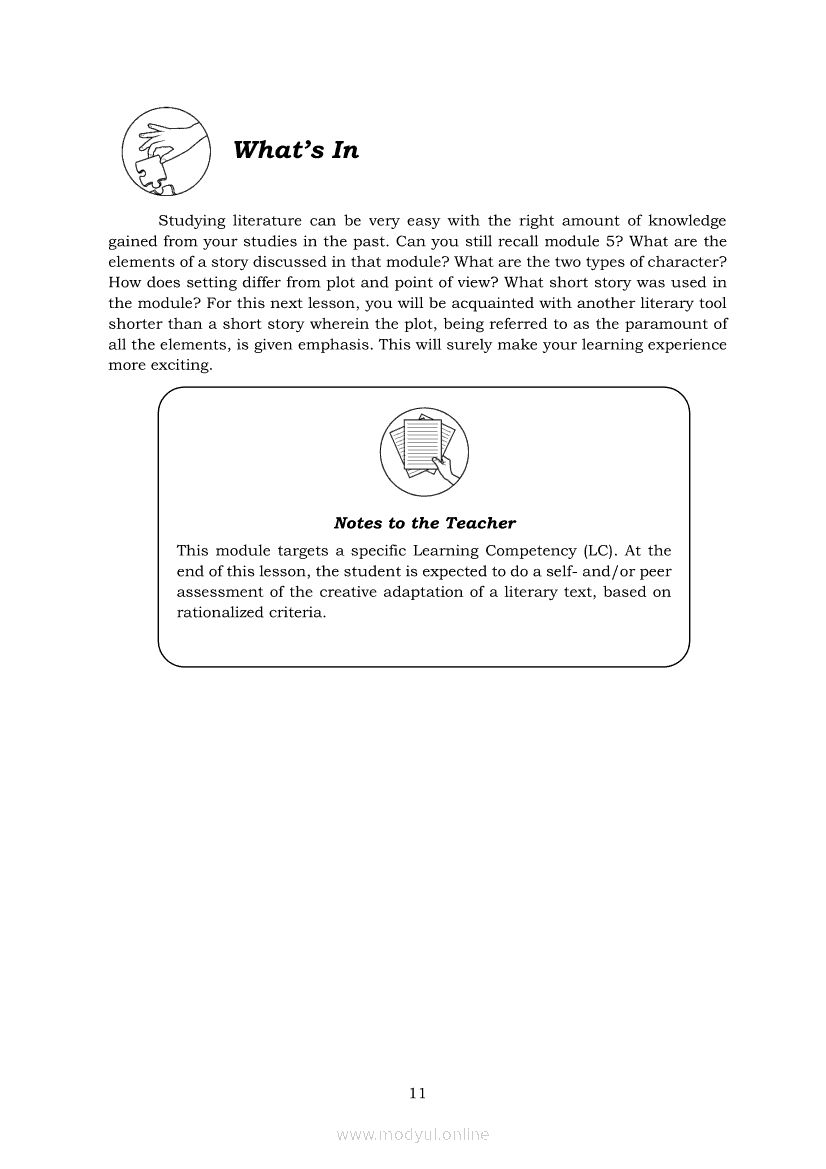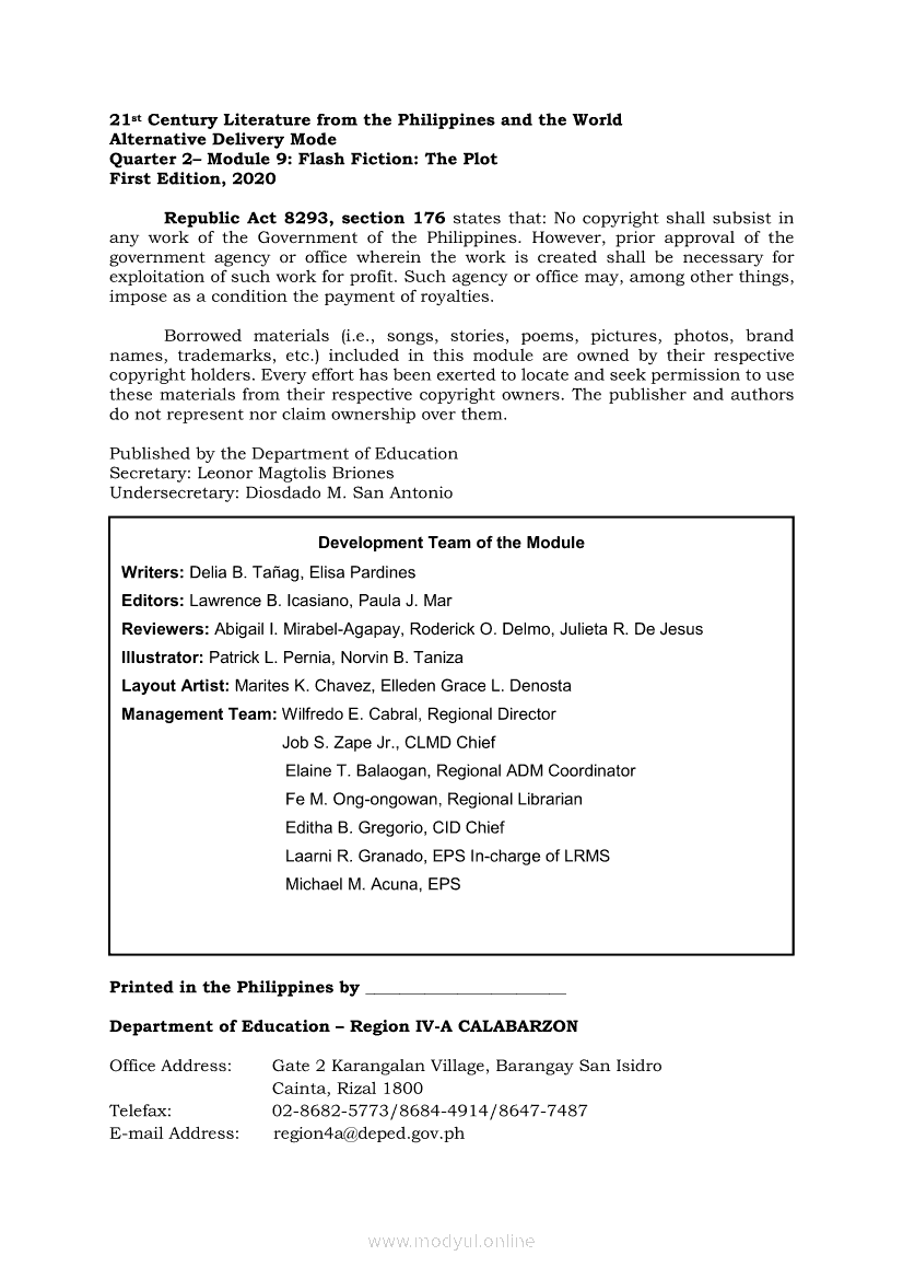 21st Century Literature from the Philippines and the World Quarter 2 β Module 9: Flash Fiction: The PlotApr 22, 2021 SHSGrab your copy of Collegio Advance - ULTIMATE Updated College Entrance Exam Reviewer and pass with flying colors π. 21st Century Literature from the Philippines and the WorldRelated21st Century Literature from the Philippines and the World Quarter 2 β Module 8: Creative Literary Adaptations21st Century Literature from the Philippines and the World Module 3: Context and Textβs Meaning21st Century Literature from the Philippines and the World Quarter 2 β Module 7: Differentiating 21st Century Literary Genres21st Century Literature from the Philippines and the World Quarter 2 β Module 6: Writing a Close Analysis and Critical Interpretation of Literary Texts Applying a Reading Approach21st Century Literature from the Philippines and the World Module 1: Geographic, Linguistic and Ethnic Dimensions of Philippine Literary History from Pre-Colonial to the Contemporary