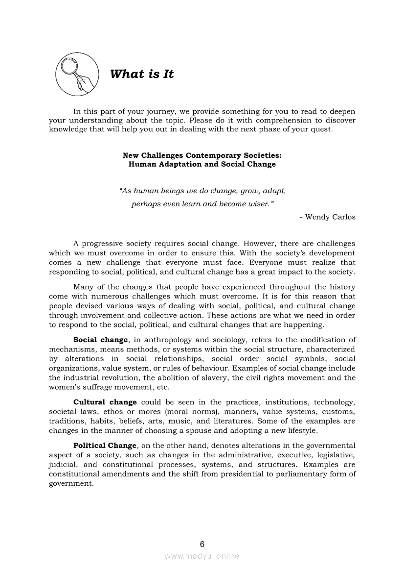 Contemporary Philippine Arts from the Region Quarter 2 – Module 6: New Challenges in Contemporary SocietiesApr 22, 2021 SHSGrab your copy of Collegio Advance - ULTIMATE Updated College Entrance Exam Reviewer and pass with flying colors 🎉. Contemporary Philippine Arts from the RegionRelatedContemporary Philippine Arts from the Region Quarter 2 – Module 4: Government Programs and Suggestions in addressing Social InequalitiesContemporary Philippine Arts from the Region Quarter 2 – Module 1: Local Materials used in Creating ArtContemporary Philippine Arts from the Region Quarter 2 – Module 1: State and Non-State InstitutionsContemporary Philippine Arts from the Region Quarter 2 – Module 2: Functions and Importance of EducationContemporary Philippine Arts from the Region Quarter 2 – Module 3: Concept, Characteristics and Forms of Stratification Systems