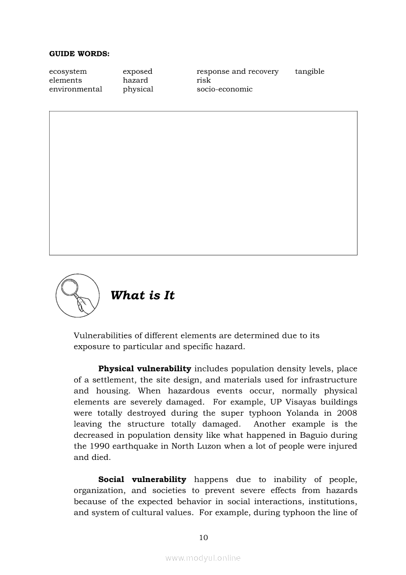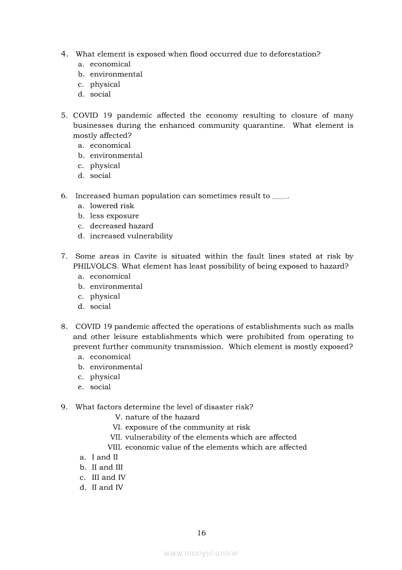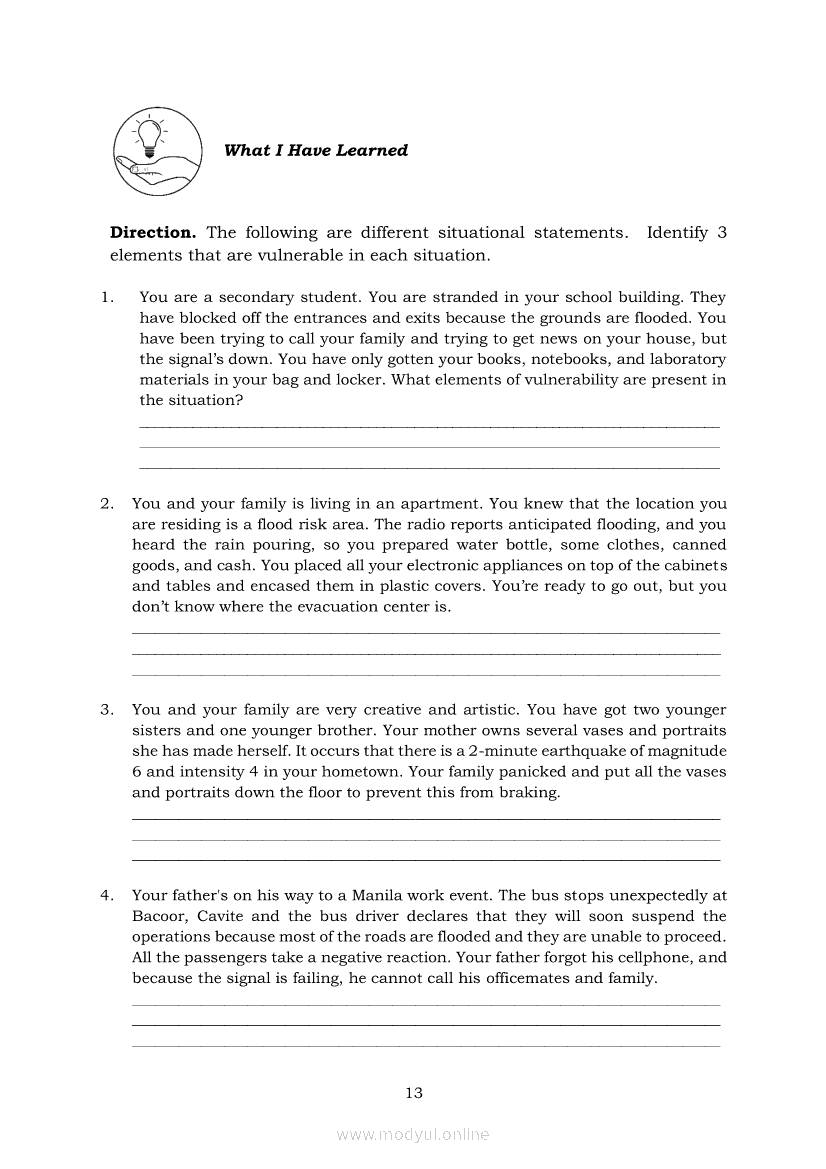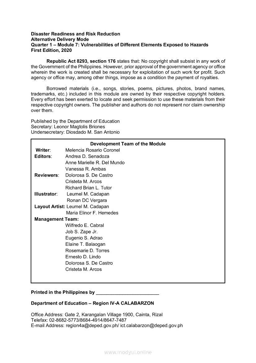 Disaster Readiness and Risk Reduction Module 7: Vulnerabilities of Different Elements Exposed to HazardsApr 22, 2021 SHSGrab your copy of Collegio Advance - ULTIMATE Updated College Entrance Exam Reviewer and pass with flying colors 🎉. Disaster Readiness and Risk ReductionRelatedDisaster Readiness and Risk Reduction Module 1: Basic Concept of Disaster and Disaster RiskDisaster Readiness and Risk Reduction Module 4: Disasters from Different PerspectivesDisaster Readiness and Risk ReductionQuarter 2 – Module 19: Policies of DRRM - The Philippine DRRM Law RA 10121 and Its Implementing Rules and RegulationsDisaster Readiness and Risk Reduction Quarter 2 – Module 18: Survival Kits and MaterialsDisaster Readiness and Risk Reduction Quarter 2 – Module 12: Response Procedure During a Fire Incident