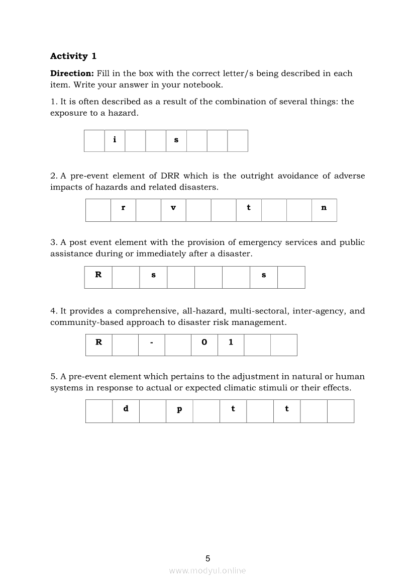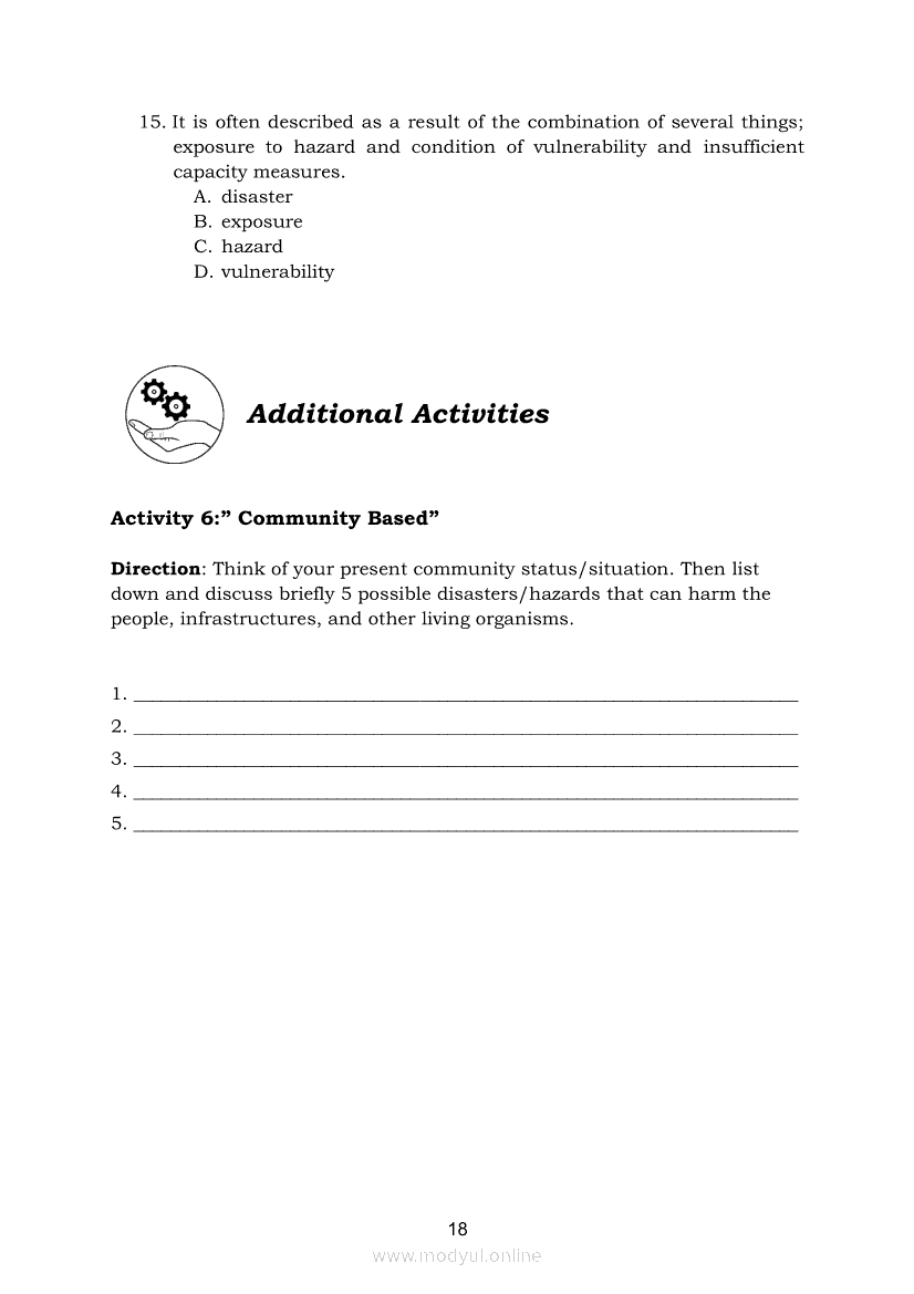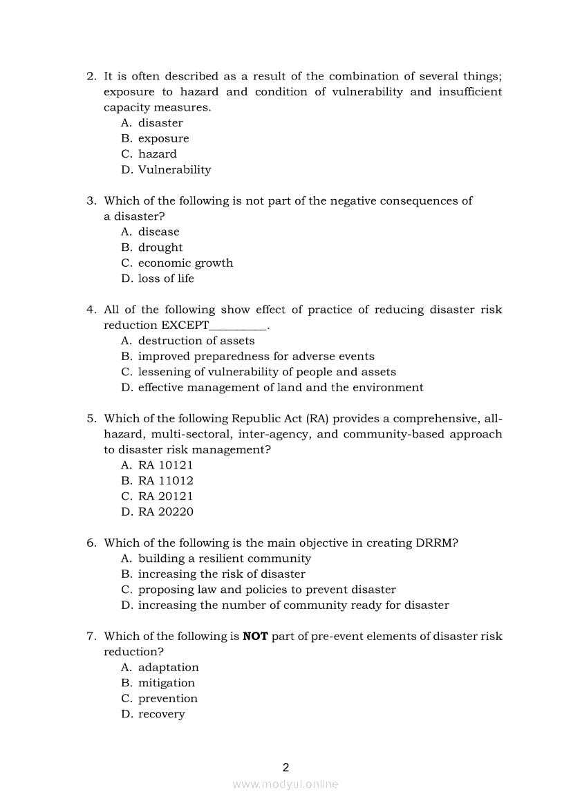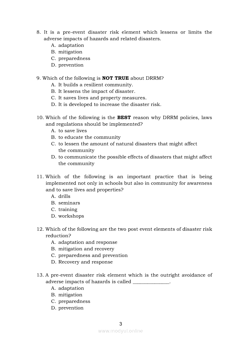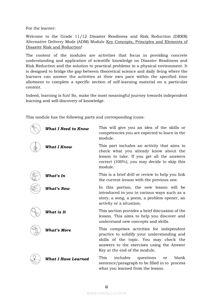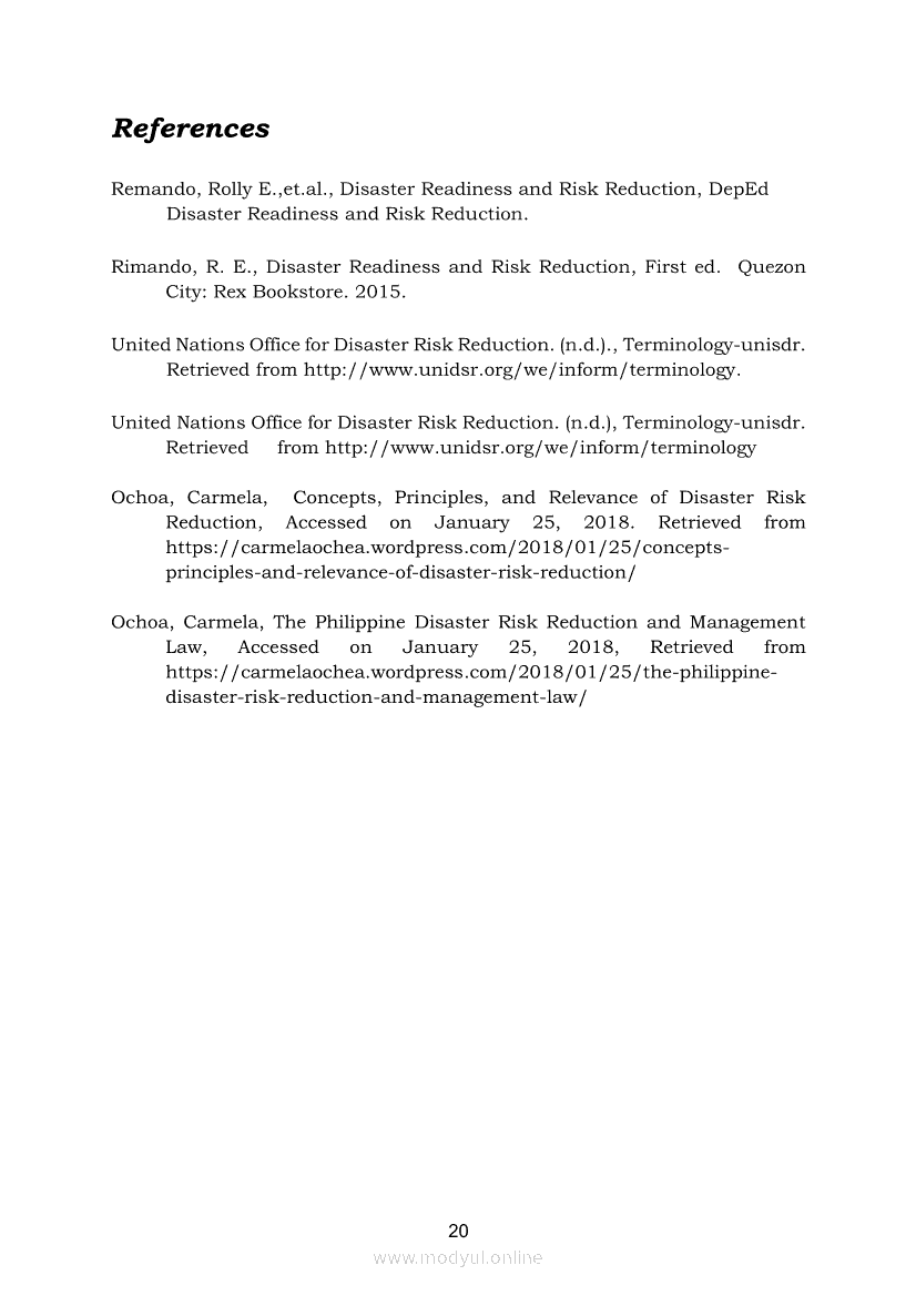 Disaster Readiness and Risk Reduction Quarter 2 – Module 14: Key Concepts, Principles and Elements of DRRApr 22, 2021 SHSGrab your copy of Collegio Advance - ULTIMATE Updated College Entrance Exam Reviewer and pass with flying colors 🎉. Disaster Readiness and Risk ReductionRelatedDisaster Readiness and Risk Reduction Disaster Readiness and Risk Reduction Module (PIVOT)Disaster Readiness and Risk Reduction Module 8: Effects of Hazard, Exposure and Vulnerability to Disaster RisksDisaster Readiness and Risk Reduction Quarter 2 – Module 3: Signs of Other Related Geological HazardsDisaster Readiness and Risk Reduction Quarter 2 – Module 12: Response Procedure During a Fire IncidentDisaster Readiness and Risk Reduction Quarter 2 – Module 17: Community Preparedness Plan