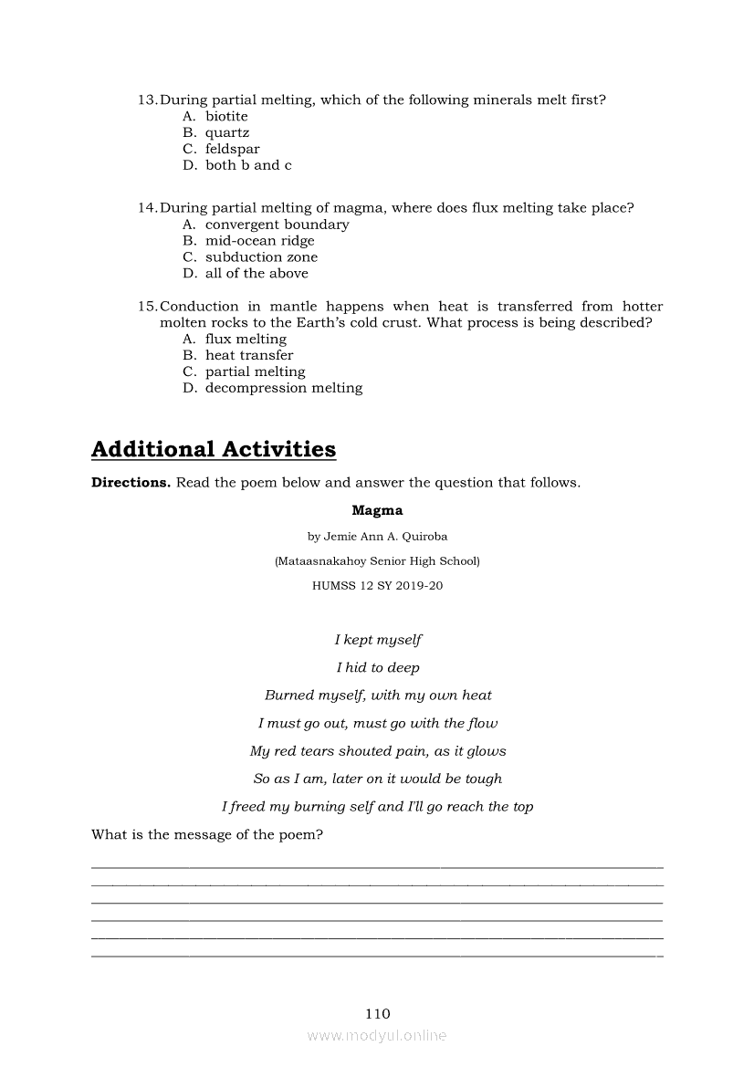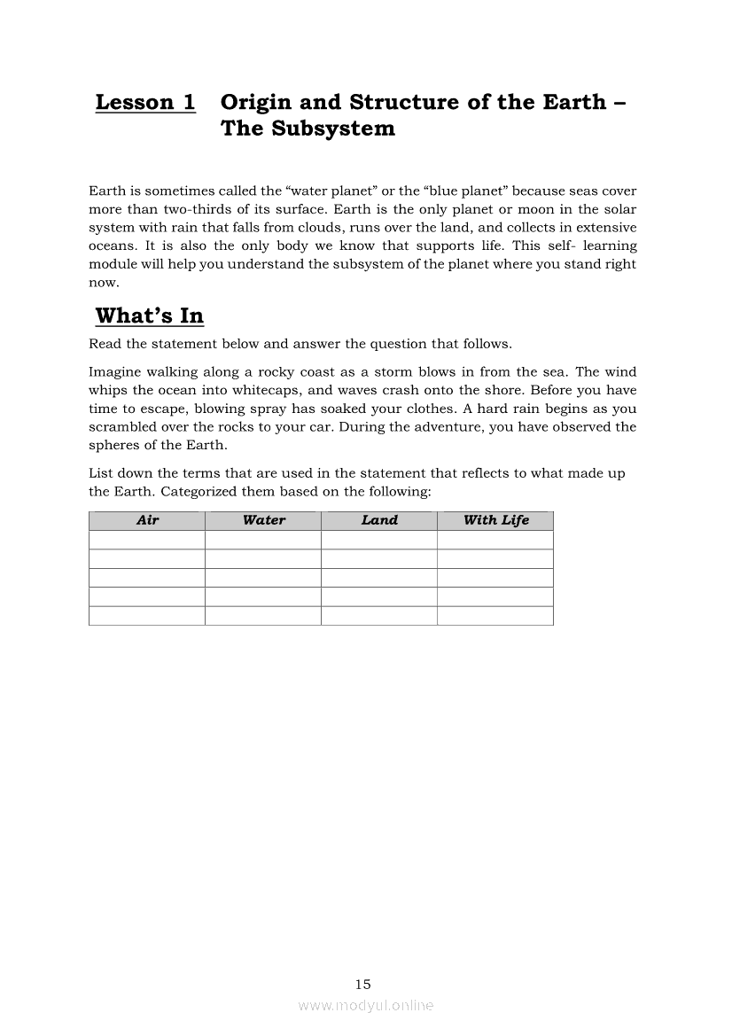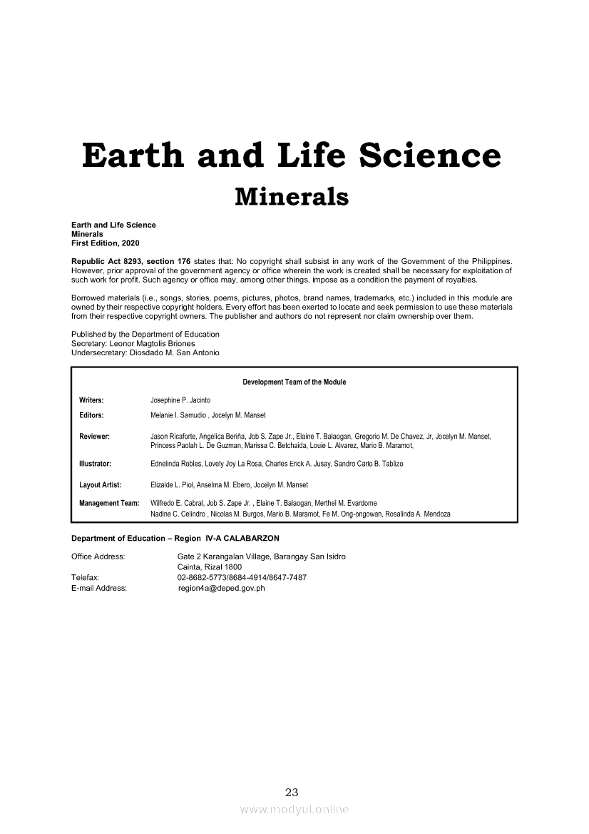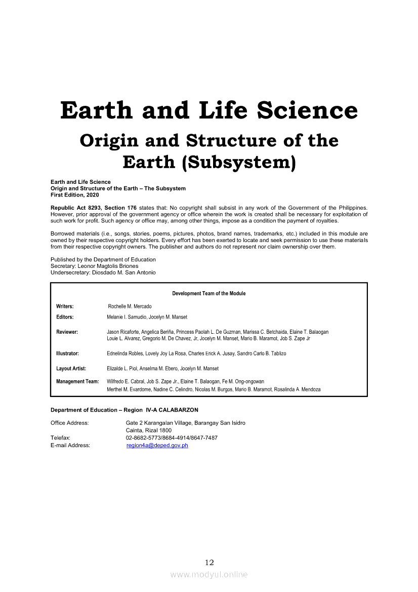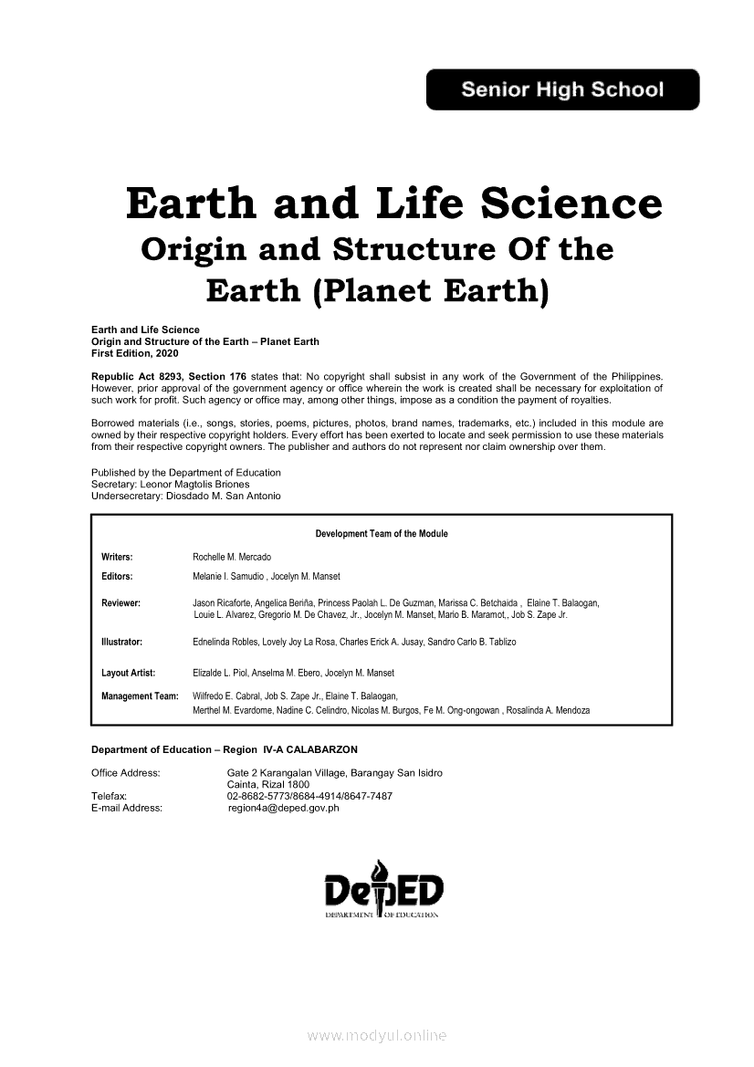 Earth and Life Science Earth and Life Science (PIVOT)Apr 22, 2021 SHSGrab your copy of Collegio Advance - ULTIMATE Updated College Entrance Exam Reviewer and pass with flying colors 🎉. Earth and Life ScienceRelatedEarth and Life Science Module 12: Relative and Absolute DatingEarth and Life Science Module 10: Movements of Plates and Formation of Folds and FaultsEarth and Life Science Module 1: Origin and Structure of the Earth (Planet Earth)Earth and Life Science Module 3: MineralsEarth and Life Science Quarter 2 – Module 28: The Process of Evolution