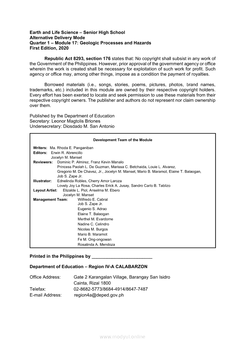 Earth and Life Science Module 17: Geologic Processes and HazardsApr 22, 2021 SHSGrab your copy of Collegio Advance - ULTIMATE Updated College Entrance Exam Reviewer and pass with flying colors 🎉. Earth and Life ScienceRelatedEarth and Life Science Module 5: Exogenic ProcessesEarth and Life Science Quarter 2 – Module 23: Perpetuation of LifeEarth and Life Science Module 3: MineralsEarth and Life Science Module 7: MagmatismEarth and Life Science Module 18: Hydrometeorological Phenomena and Hazards