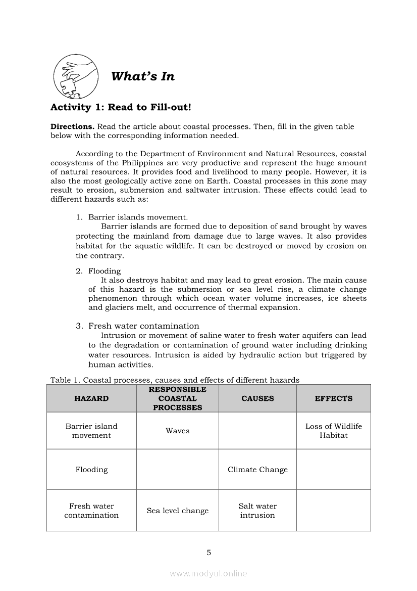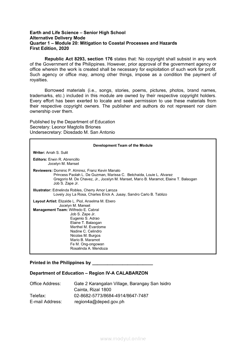 Earth and Life Science Module 20 Mitigation to Coastal Processes and HazardsApr 22, 2021 SHSGrab your copy of Collegio Advance - ULTIMATE Updated College Entrance Exam Reviewer and pass with flying colors 🎉. Earth and Life ScienceRelatedEarth and Life Science Module 5: Exogenic ProcessesEarth and Life Science Module 18: Hydrometeorological Phenomena and HazardsEarth and Life Science Quarter 2 – Module 29: The Process of EvolutionEarth and Life Science Module 10: Movements of Plates and Formation of Folds and FaultsEarth and Life Science Module 15: Geologic Processes and Hazards