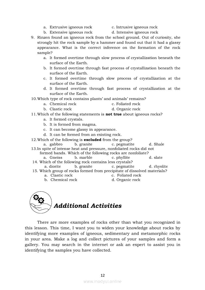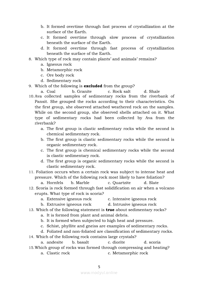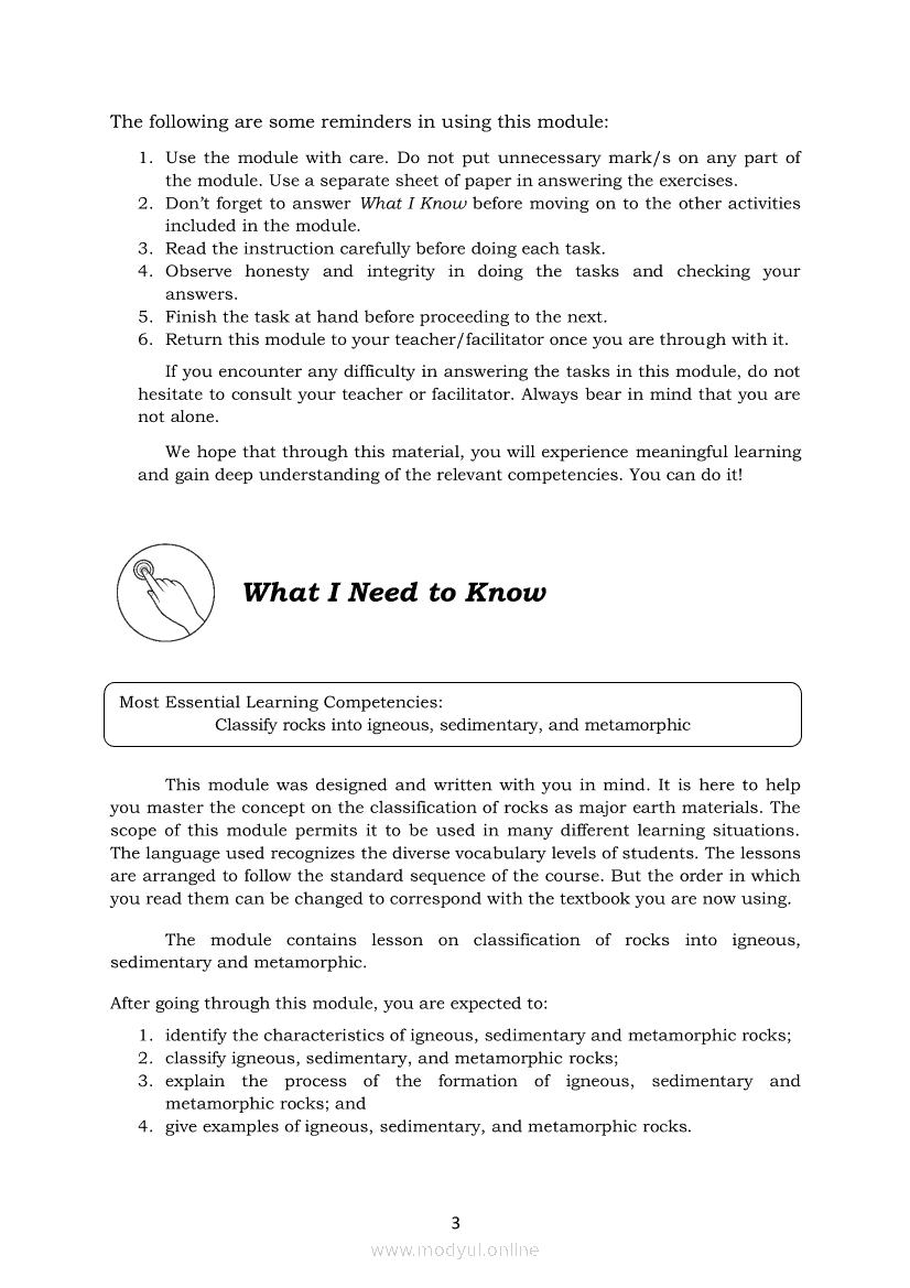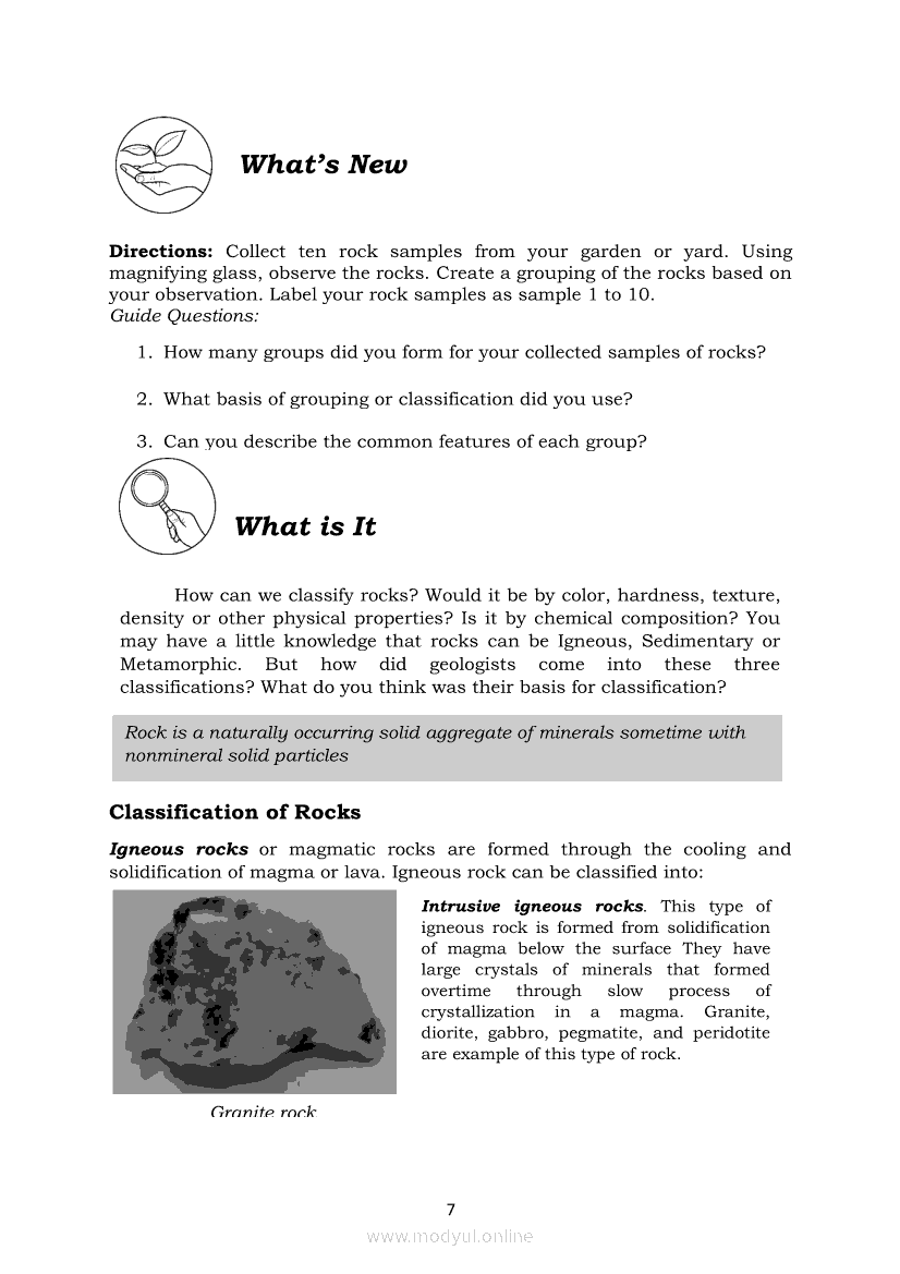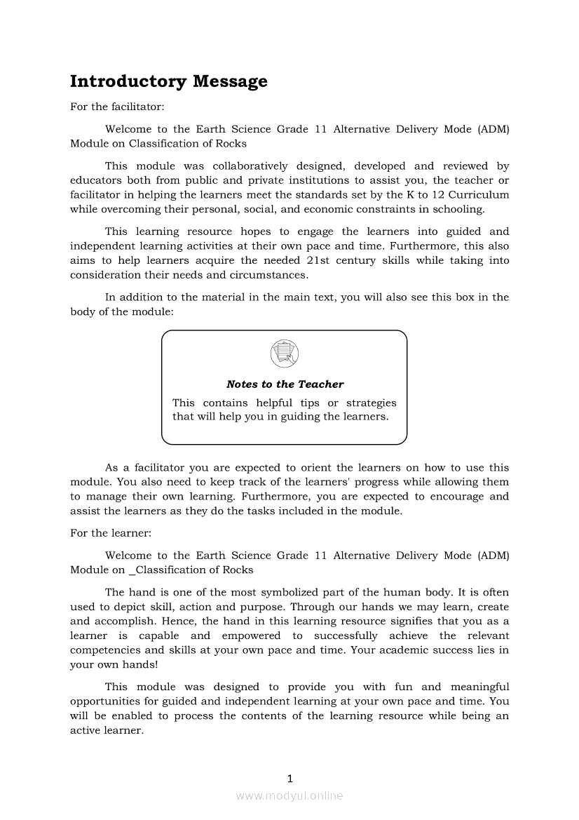 Earth Science Module 4: Classification of RocksApr 22, 2021 SHSGrab your copy of Collegio Advance - ULTIMATE Updated College Entrance Exam Reviewer and pass with flying colors 🎉. Earth ScienceRelatedEarth Science Quarter 2 – Module 12: Describe How Index Fossils (also known as guide fossils) are used to define and identify subdivisions of the Geologic Time ScaleEarth Science (PIVOT Module)Earth Science Quarter 2 – Module 9: How Layers of Rocks (Stratified Rocks) are FormedEarth Science Quarter 2 – Module 3: Endogenic Processes: Plutonism and VolcanismEarth Science Quarter 2 – Module 4: Metamorphism