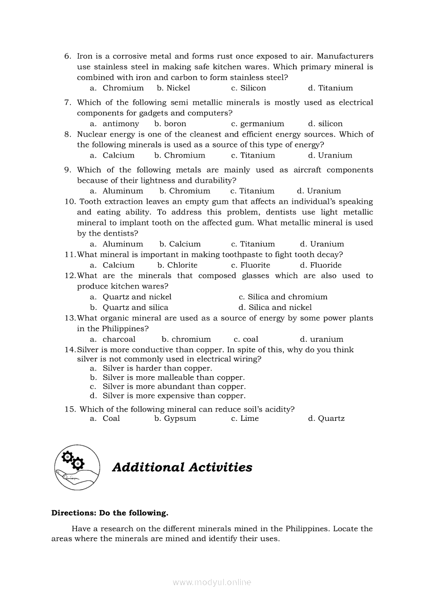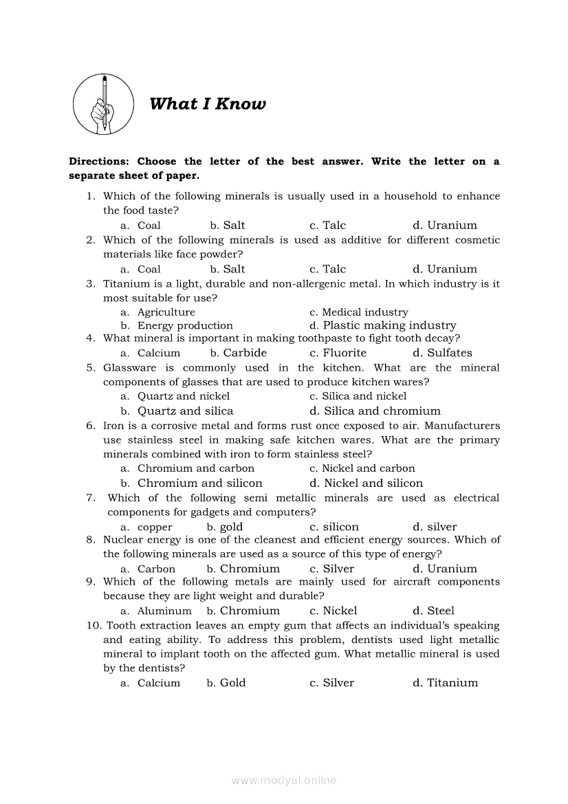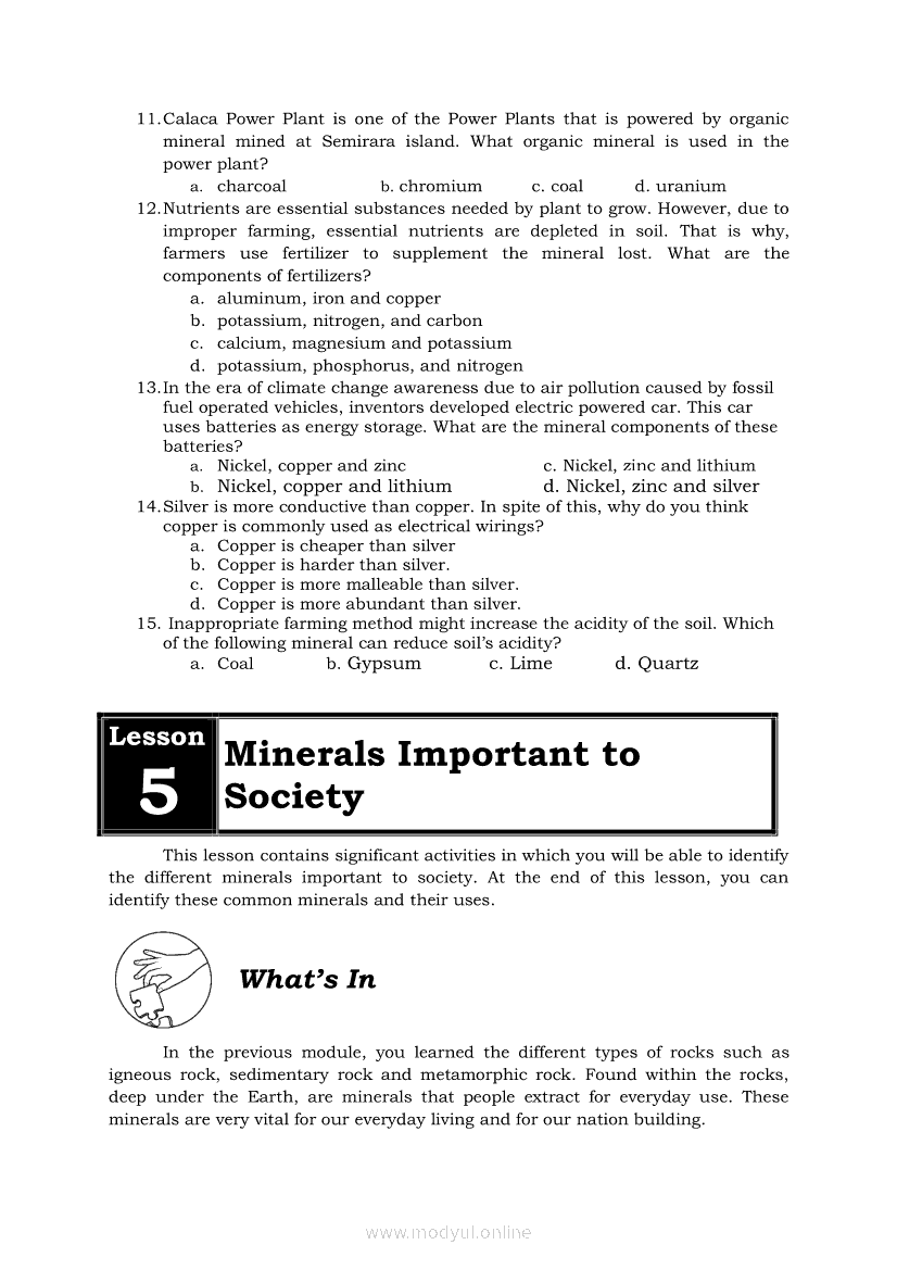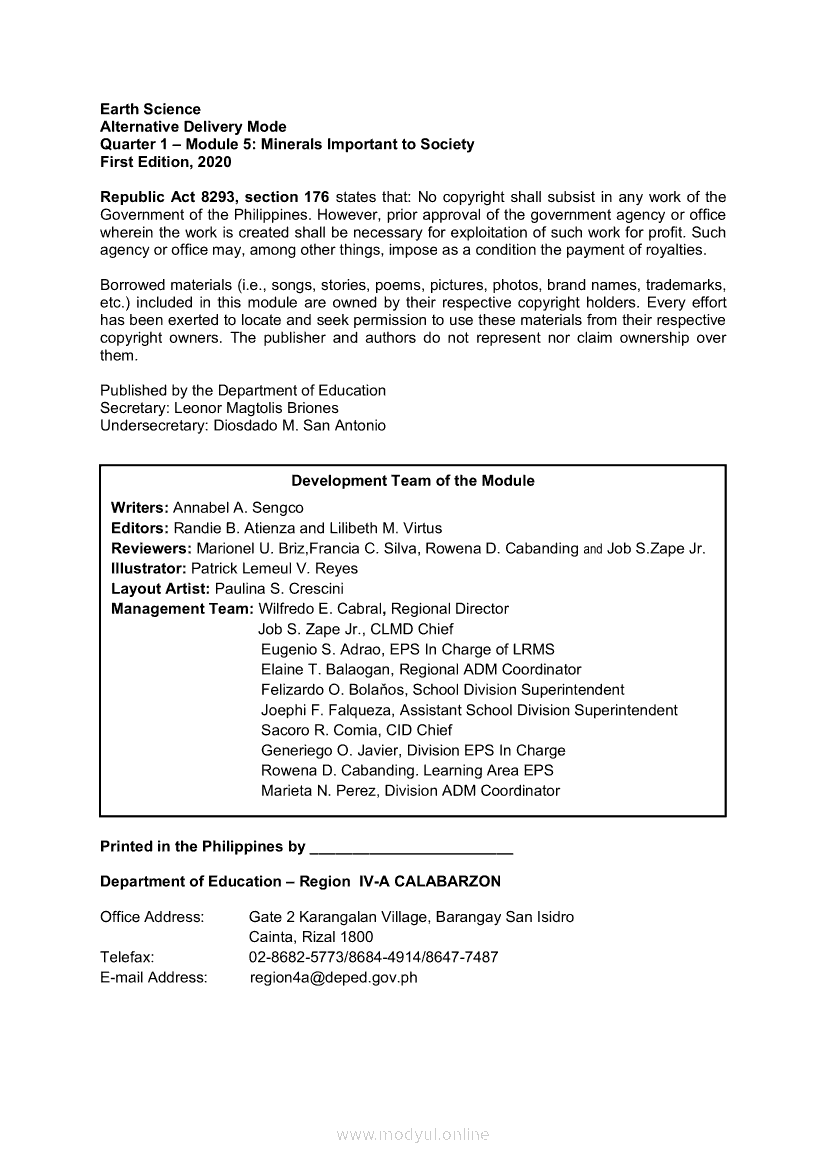 Earth Science Module 5: Important Minerals to SocietyApr 22, 2021 SHSGrab your copy of Collegio Advance - ULTIMATE Updated College Entrance Exam Reviewer and pass with flying colors 🎉. Earth ScienceRelatedEarth Science Quarter 2 –Module 5 Rock Behaviors Under StressEarth Science Module 4: Classification of RocksEarth Science Quarter 2 – Module 4: MetamorphismEarth Science Quarter 2 – Module 11: Relative and Absolute datingEarth Science Quarter 2 – Module 12: Describe How Index Fossils (also known as guide fossils) are used to define and identify subdivisions of the Geologic Time Scale