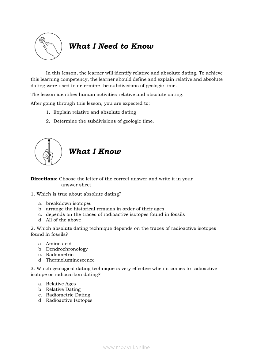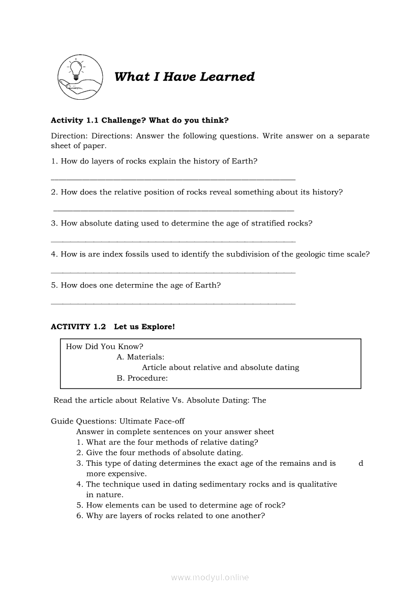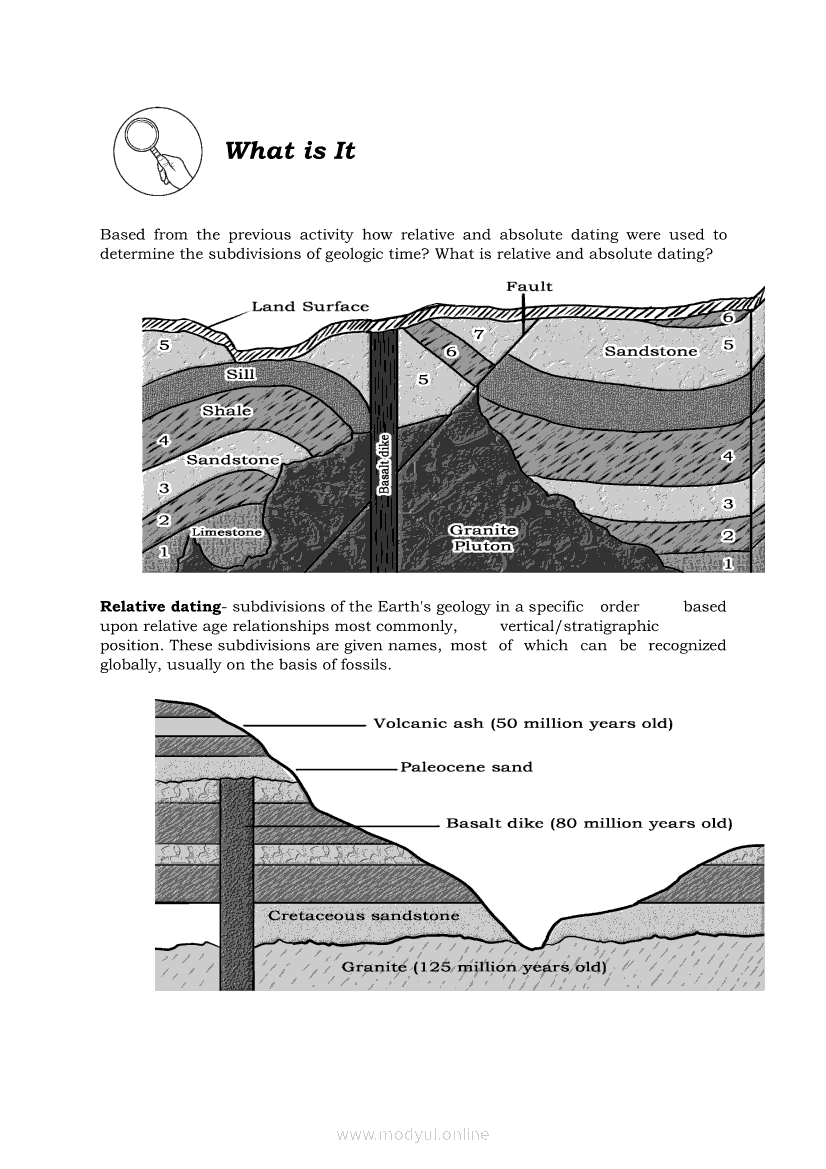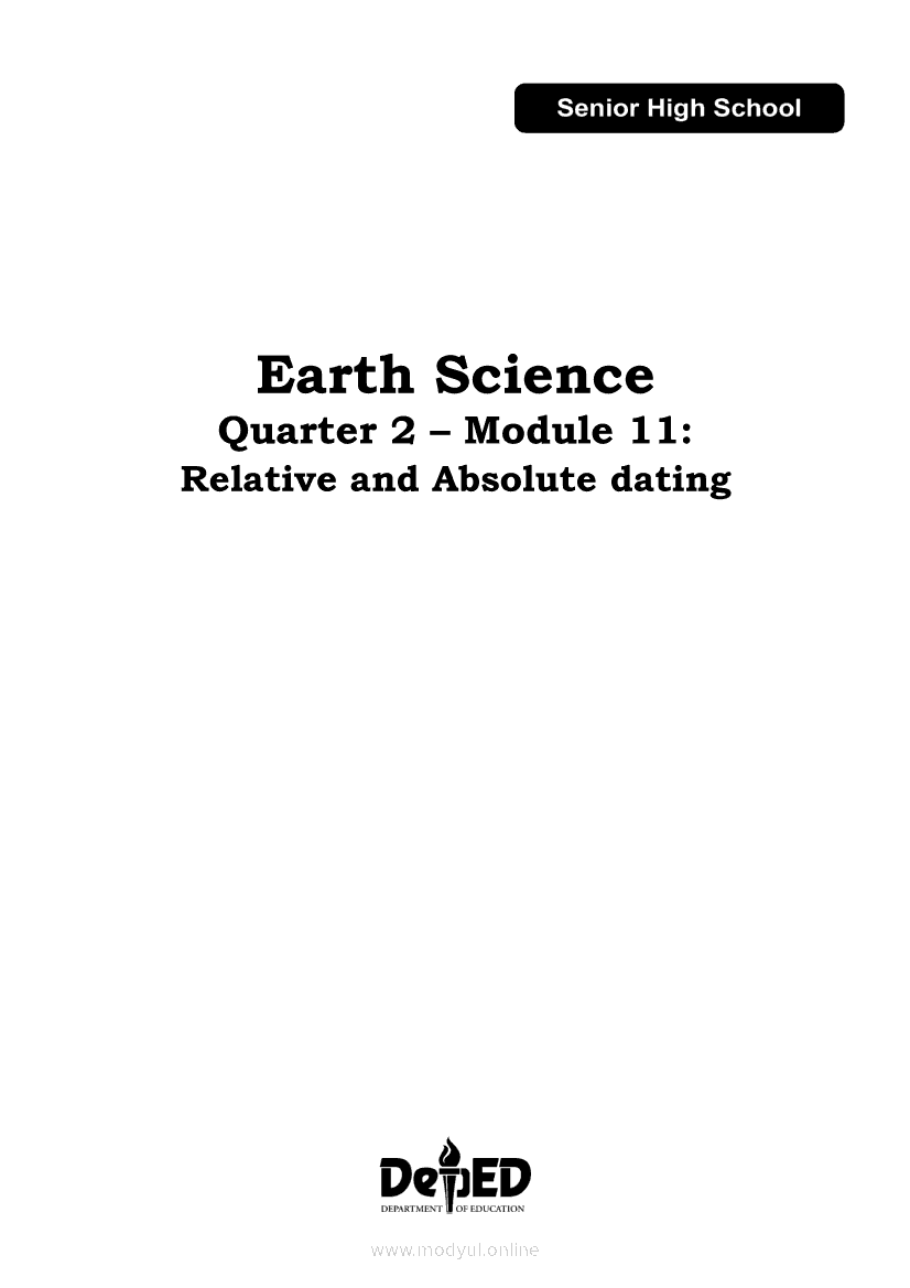 Earth Science Quarter 2 β Module 11: Relative and Absolute datingApr 22, 2021 SHSGrab your copy of Collegio Advance - ULTIMATE Updated College Entrance Exam Reviewer and pass with flying colors π. Earth ScienceRelatedEarth Science Module 6: Ore Minerals: How they are Found, Mined, and Processed for Human UseEarth Science Module 7: Formation of Fossil FuelsEarth Science Quarter 2 β Module 10: Different Methods of Determining the Age of Stratified RocksEarth Science Quarter 2 β Module 2: Earthβs Internal Heat SourcesEarth Science (PIVOT Module)