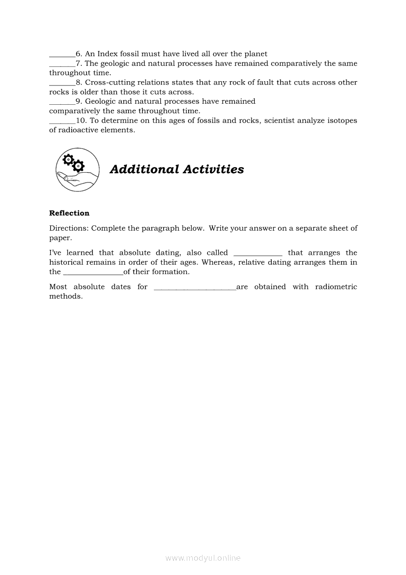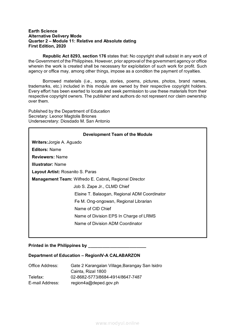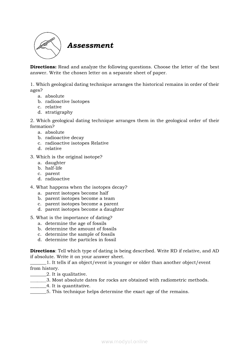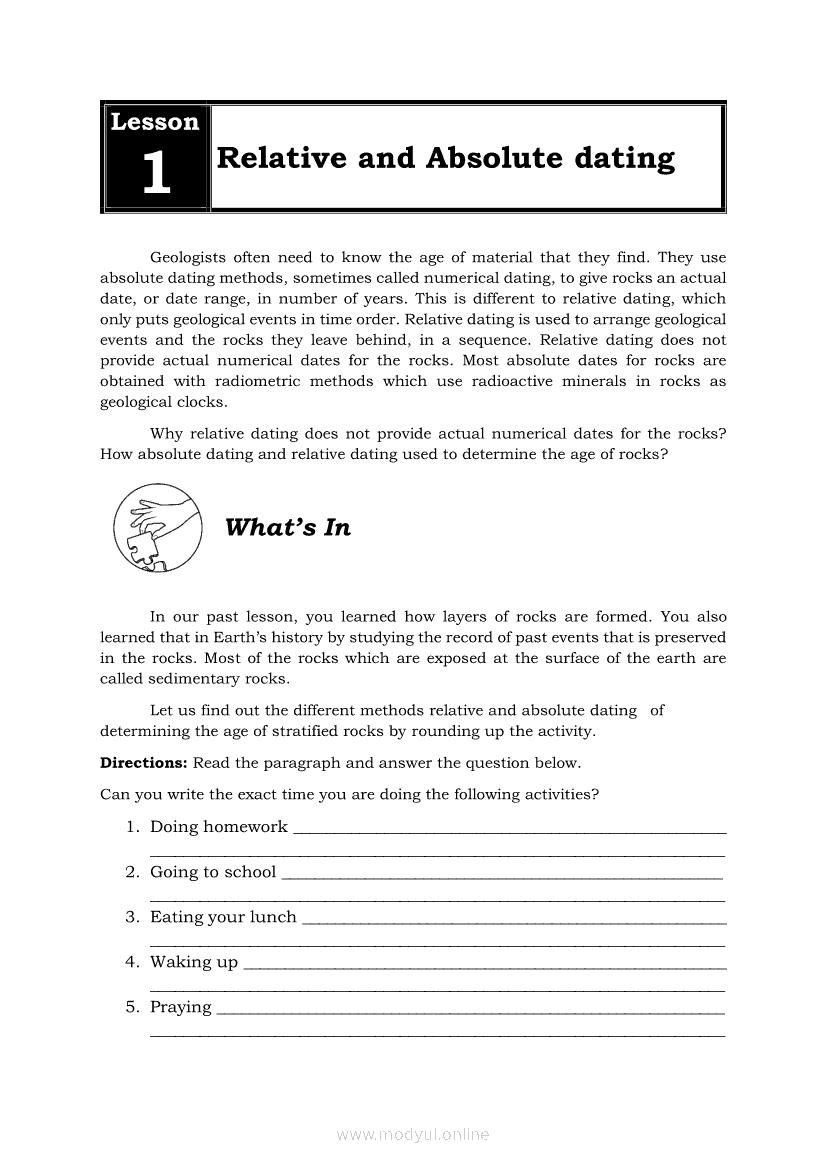 Earth Science Quarter 2 β Module 11: Relative and Absolute datingApr 22, 2021 SHSGrab your copy of Collegio Advance - ULTIMATE Updated College Entrance Exam Reviewer and pass with flying colors π. Earth ScienceRelatedEarth Science Module 6: Ore Minerals: How they are Found, Mined, and Processed for Human UseEarth Science Module 7: Formation of Fossil FuelsEarth Science Quarter 2 β Module 10: Different Methods of Determining the Age of Stratified RocksEarth Science Quarter 2 β Module 2: Earthβs Internal Heat SourcesEarth Science (PIVOT Module)