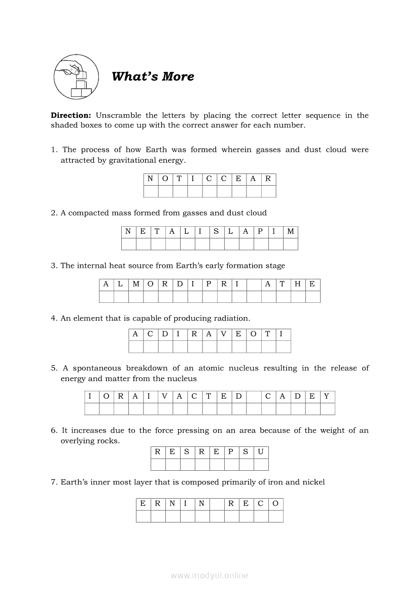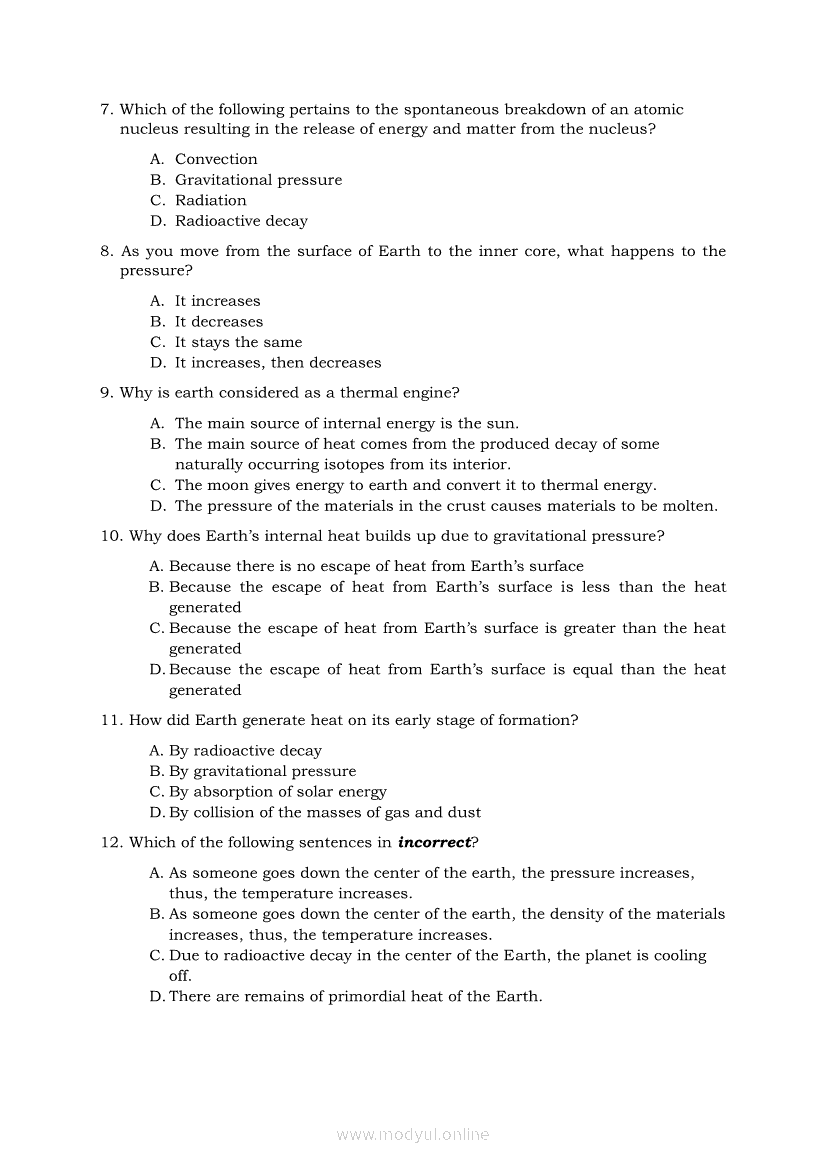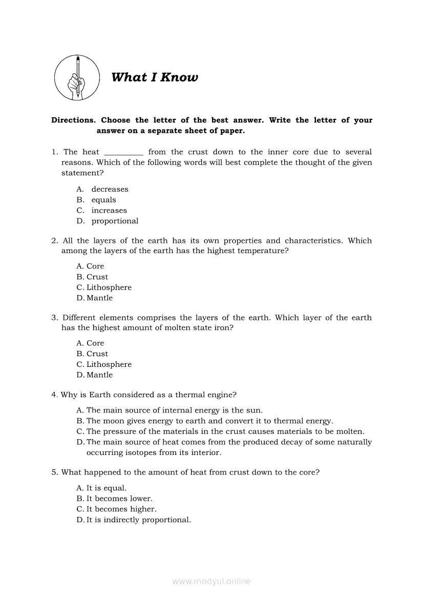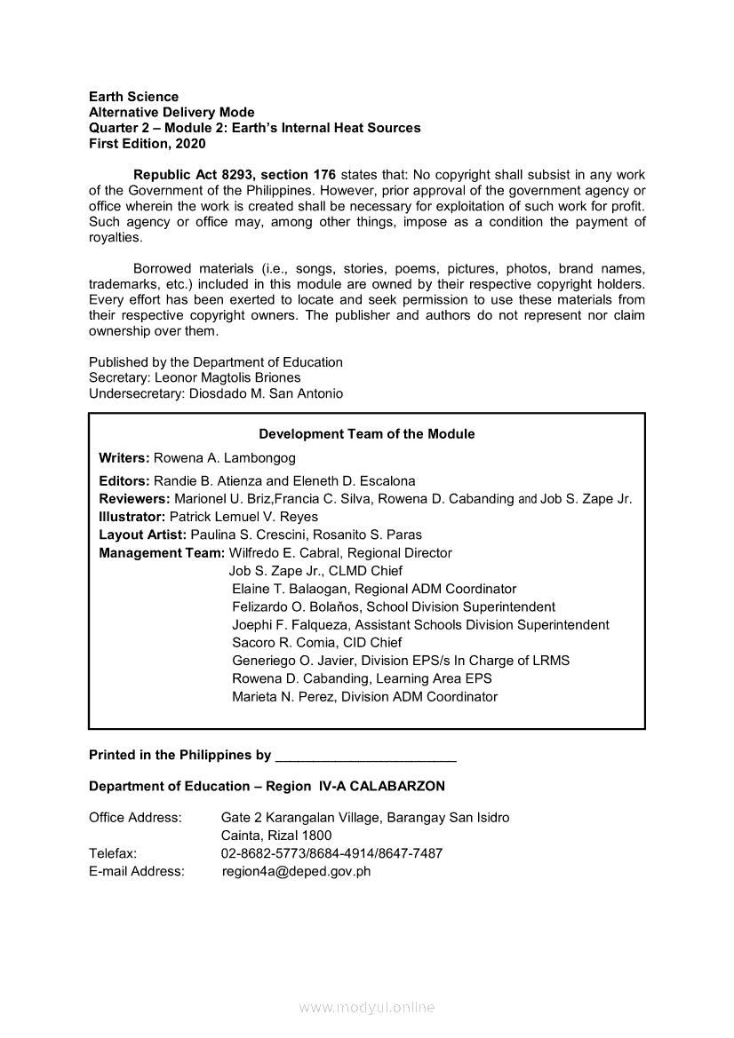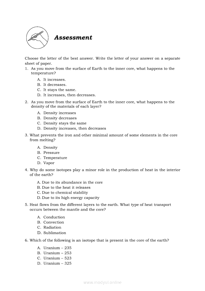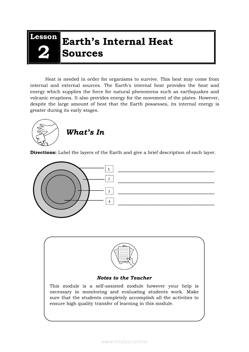 Earth Science Quarter 2 – Module 2: Earth’s Internal Heat SourcesApr 22, 2021 SHSGrab your copy of Collegio Advance - ULTIMATE Updated College Entrance Exam Reviewer and pass with flying colors 🎉. Earth ScienceRelatedEarth Science Quarter 2 –Module 5 Rock Behaviors Under StressEarth Science (PIVOT Module)Earth Science Quarter 2 – Module 9: How Layers of Rocks (Stratified Rocks) are FormedEarth Science Quarter 2 – Module 10: Different Methods of Determining the Age of Stratified RocksEarth Science Quarter 2 – Module 12: Describe How Index Fossils (also known as guide fossils) are used to define and identify subdivisions of the Geologic Time Scale
