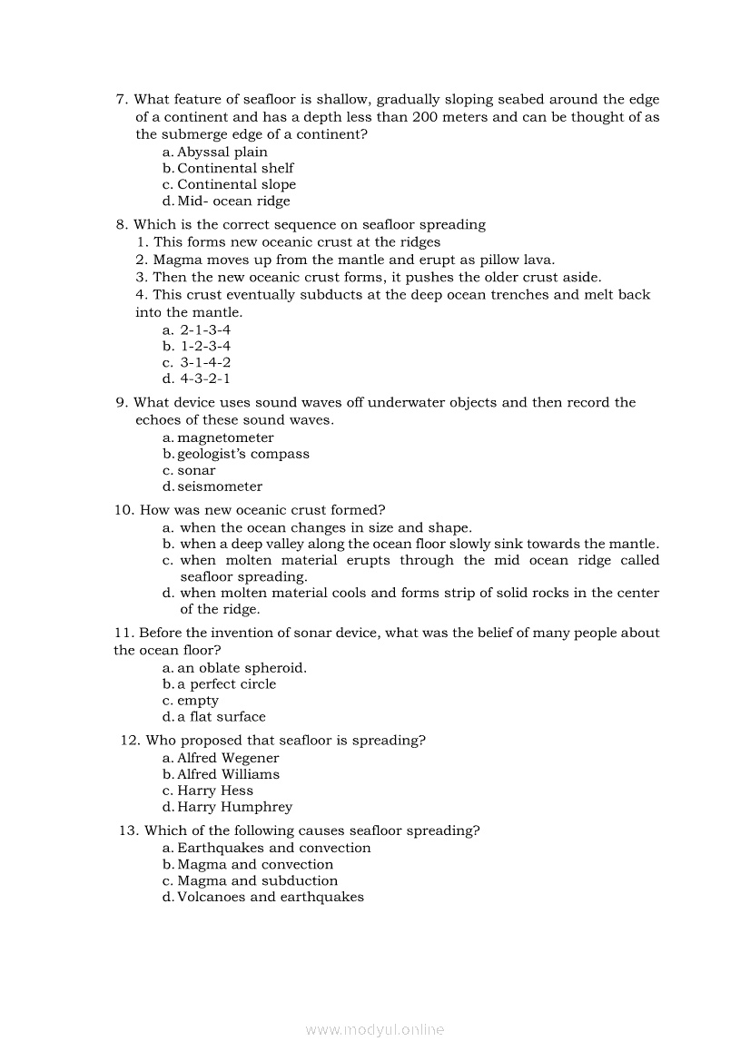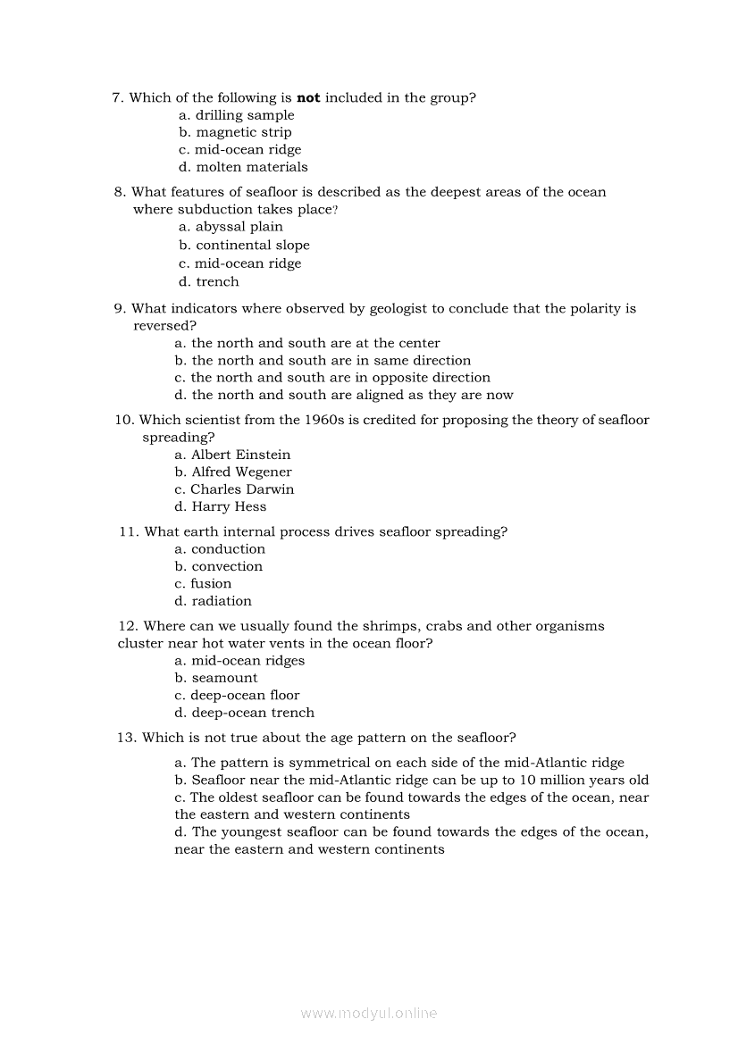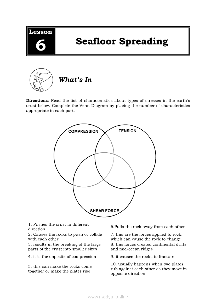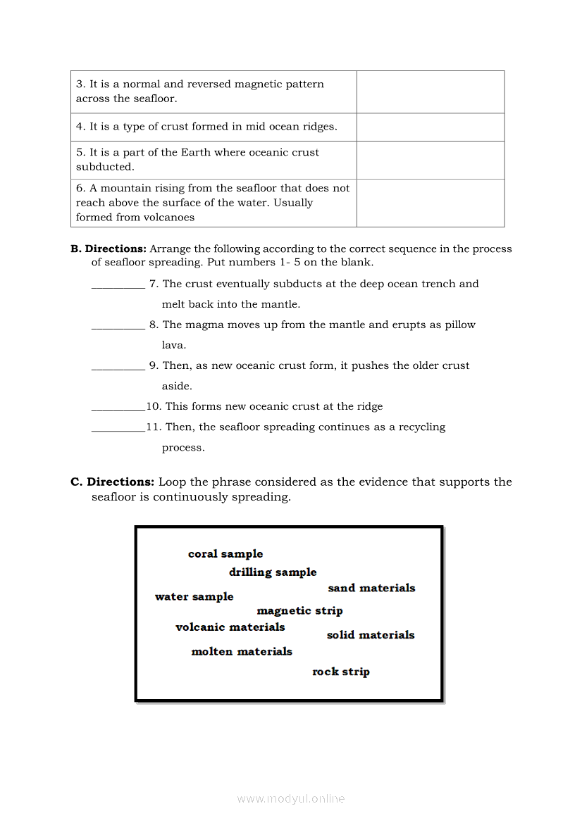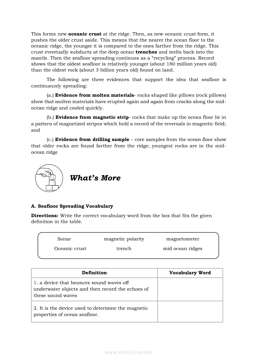 Earth Science Quarter 2 – Module 6: Seafloor SpreadingApr 22, 2021 SHSGrab your copy of Collegio Advance - ULTIMATE Updated College Entrance Exam Reviewer and pass with flying colors 🎉. Earth ScienceRelatedEarth Science Quarter 2 – Module 8: Movement of PlatesEarth Science Quarter 2 – Module 3: Endogenic Processes: Plutonism and VolcanismEarth Science Quarter 2 – Module 2: Earth’s Internal Heat SourcesEarth Science Quarter 2 –Module 5 Rock Behaviors Under StressEarth Science Quarter 2 – Module 1: Weathering