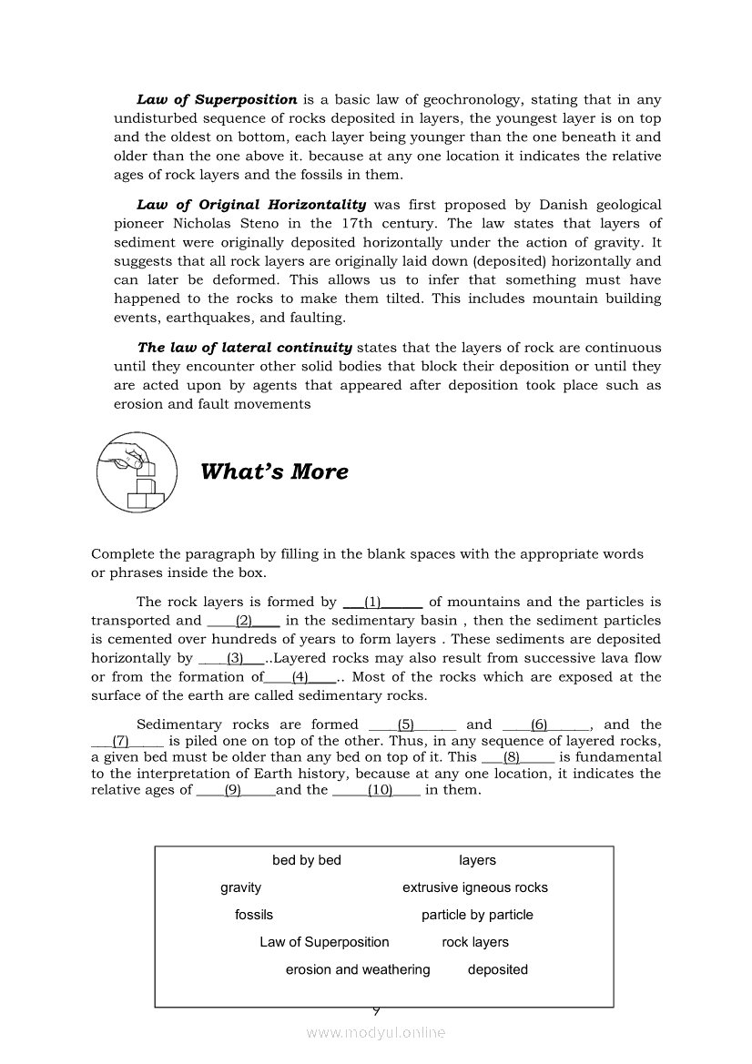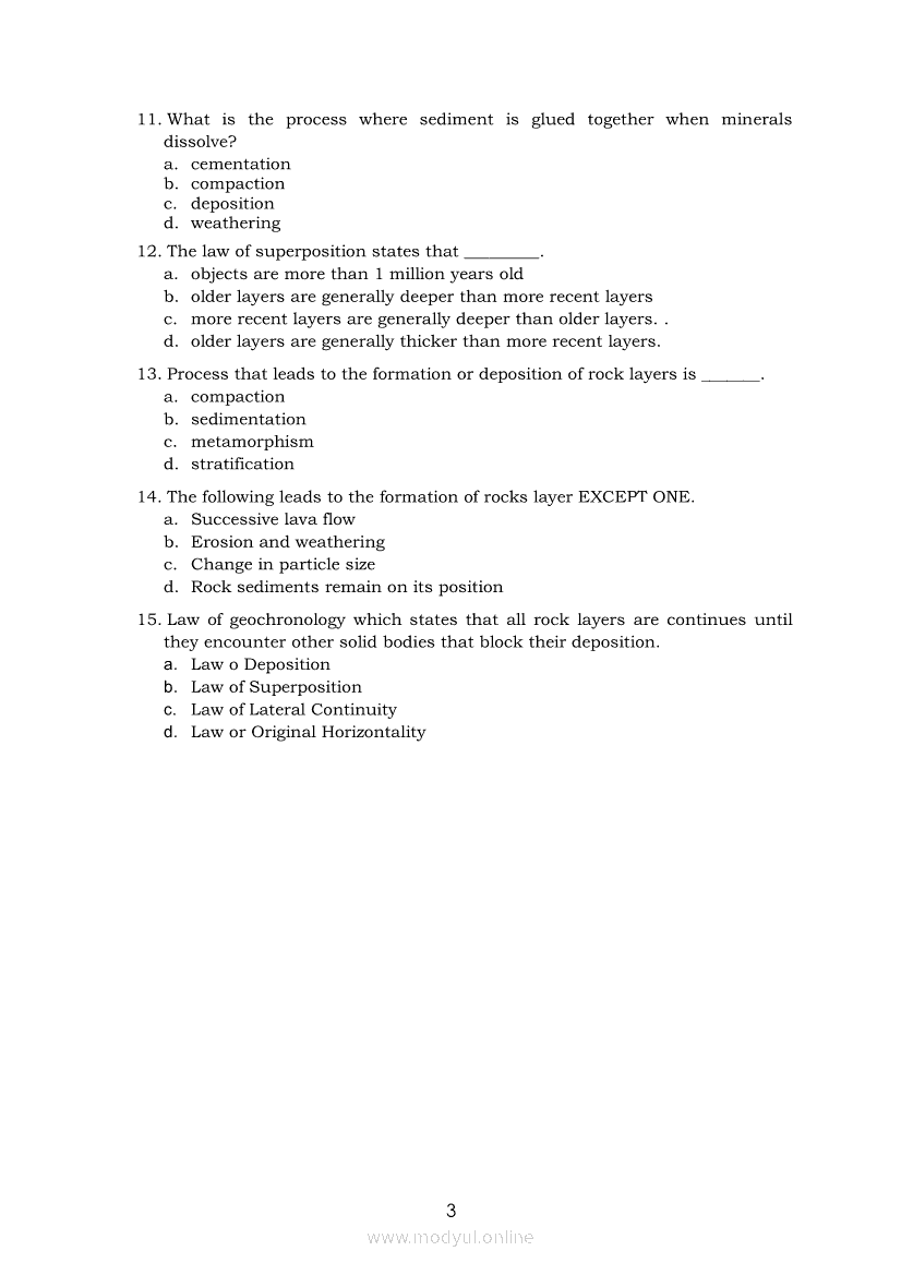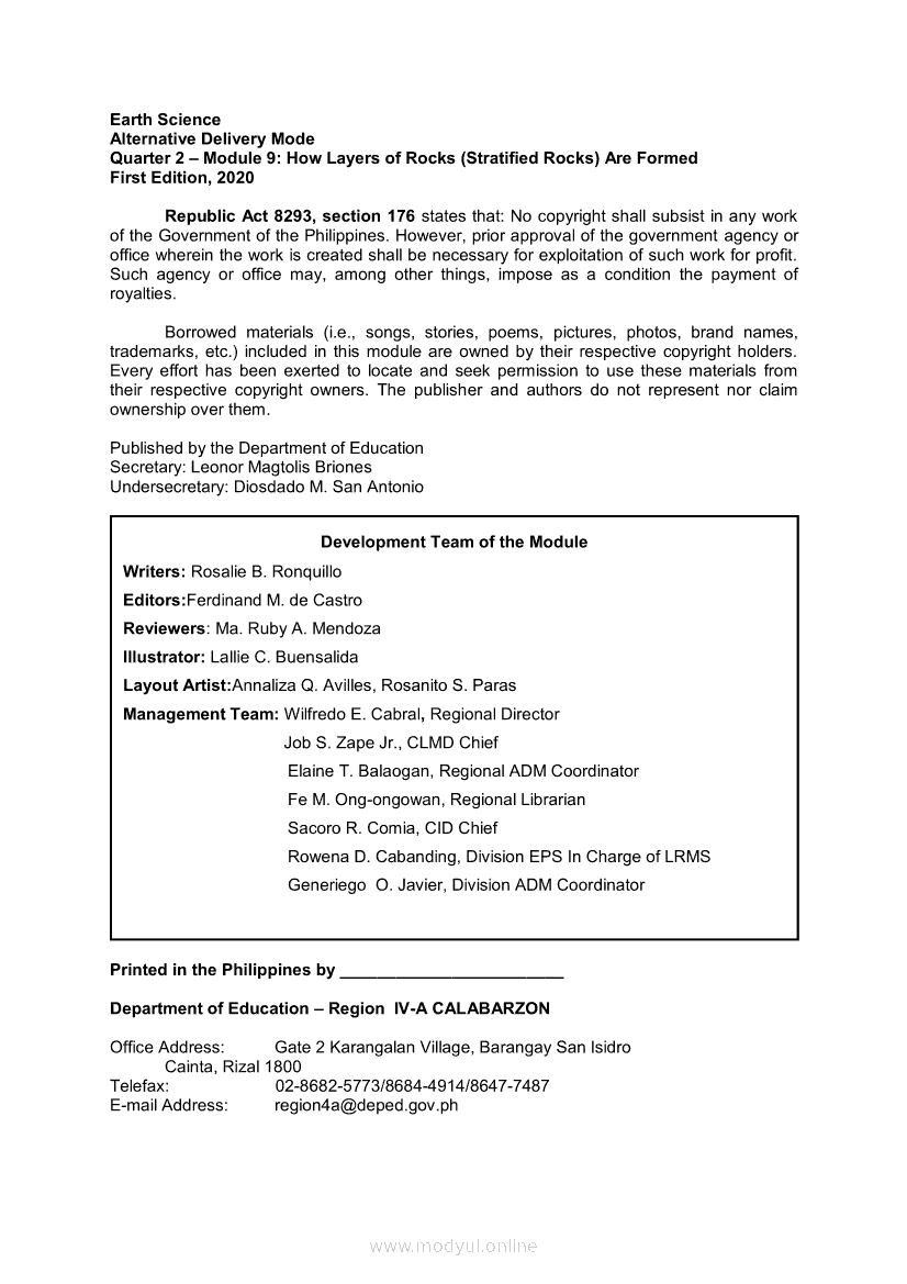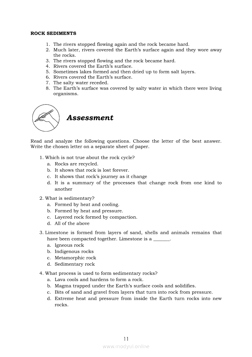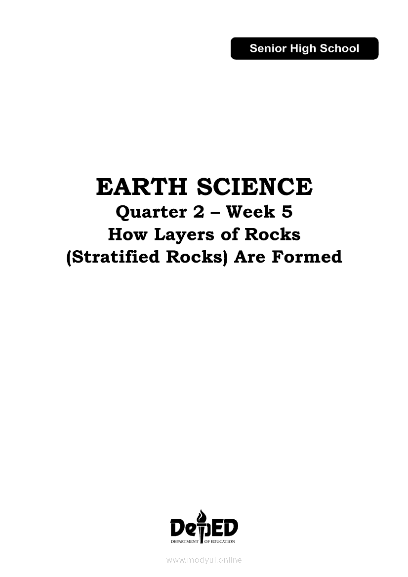 Earth Science Quarter 2 – Module 9: How Layers of Rocks (Stratified Rocks) are FormedApr 22, 2021 SHSGrab your copy of Collegio Advance - ULTIMATE Updated College Entrance Exam Reviewer and pass with flying colors 🎉. Earth ScienceRelatedEarth Science Module 5: Important Minerals to SocietyEarth Science Module 4: Classification of RocksEarth Science Quarter 2 – Module 6: Seafloor SpreadingEarth Science Quarter 2 – Module 8: Movement of PlatesEarth Science Module 6: Ore Minerals: How they are Found, Mined, and Processed for Human Use
