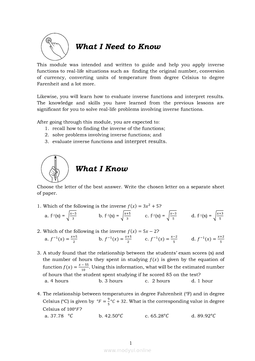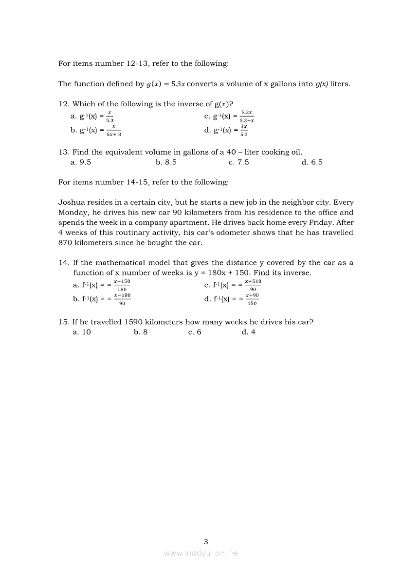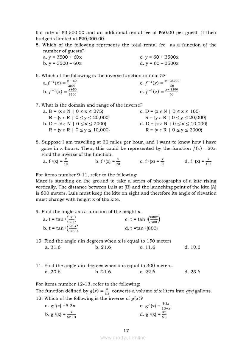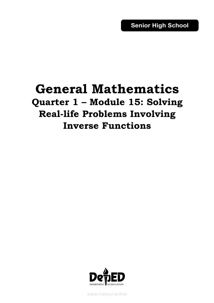 General Mathematics Module 15: Solving Real-life Problems Involving Inverse FunctionsApr 22, 2021 SHSGrab your copy of Collegio Advance - ULTIMATE Updated College Entrance Exam Reviewer and pass with flying colors 🎉. General MathematicsRelatedGeneral Mathematics Module 20: Domain and Range of Exponential FunctionsGeneral Mathematics Quarter 2 – Module 14: Simple and Compound PropositionsGeneral Mathematics Quarter 2 – Module 11: Business and Consumer LoansGeneral Mathematics Module 6: Solving Rational Equations and InequalitiesGeneral Mathematics Quarter 2 – Module 18: Tautologies and Fallacies