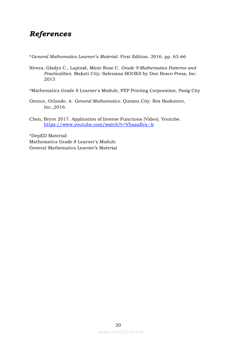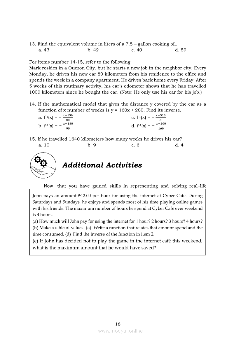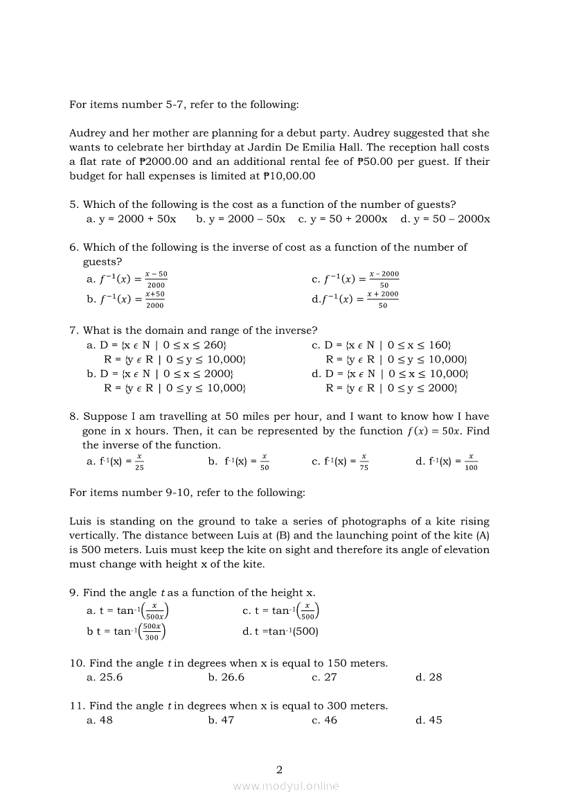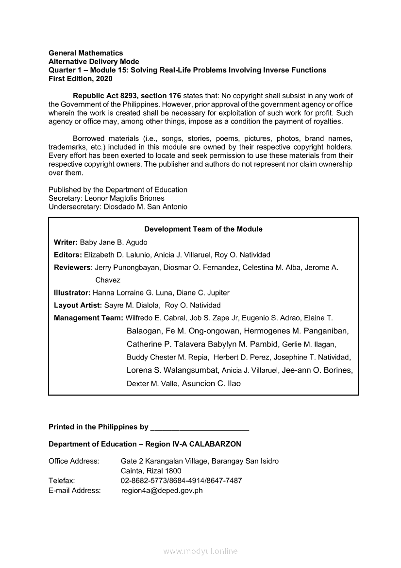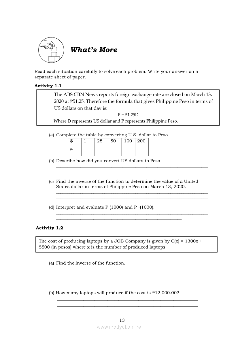 General Mathematics Module 15: Solving Real-life Problems Involving Inverse FunctionsApr 22, 2021 SHSGrab your copy of Collegio Advance - ULTIMATE Updated College Entrance Exam Reviewer and pass with flying colors 🎉. General MathematicsRelatedGeneral Mathematics Module 20: Domain and Range of Exponential FunctionsGeneral Mathematics Quarter 2 – Module 14: Simple and Compound PropositionsGeneral Mathematics Quarter 2 – Module 11: Business and Consumer LoansGeneral Mathematics Module 6: Solving Rational Equations and InequalitiesGeneral Mathematics Quarter 2 – Module 18: Tautologies and Fallacies
