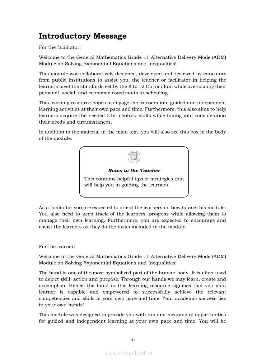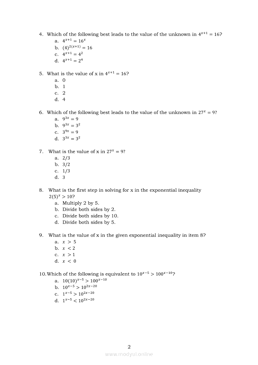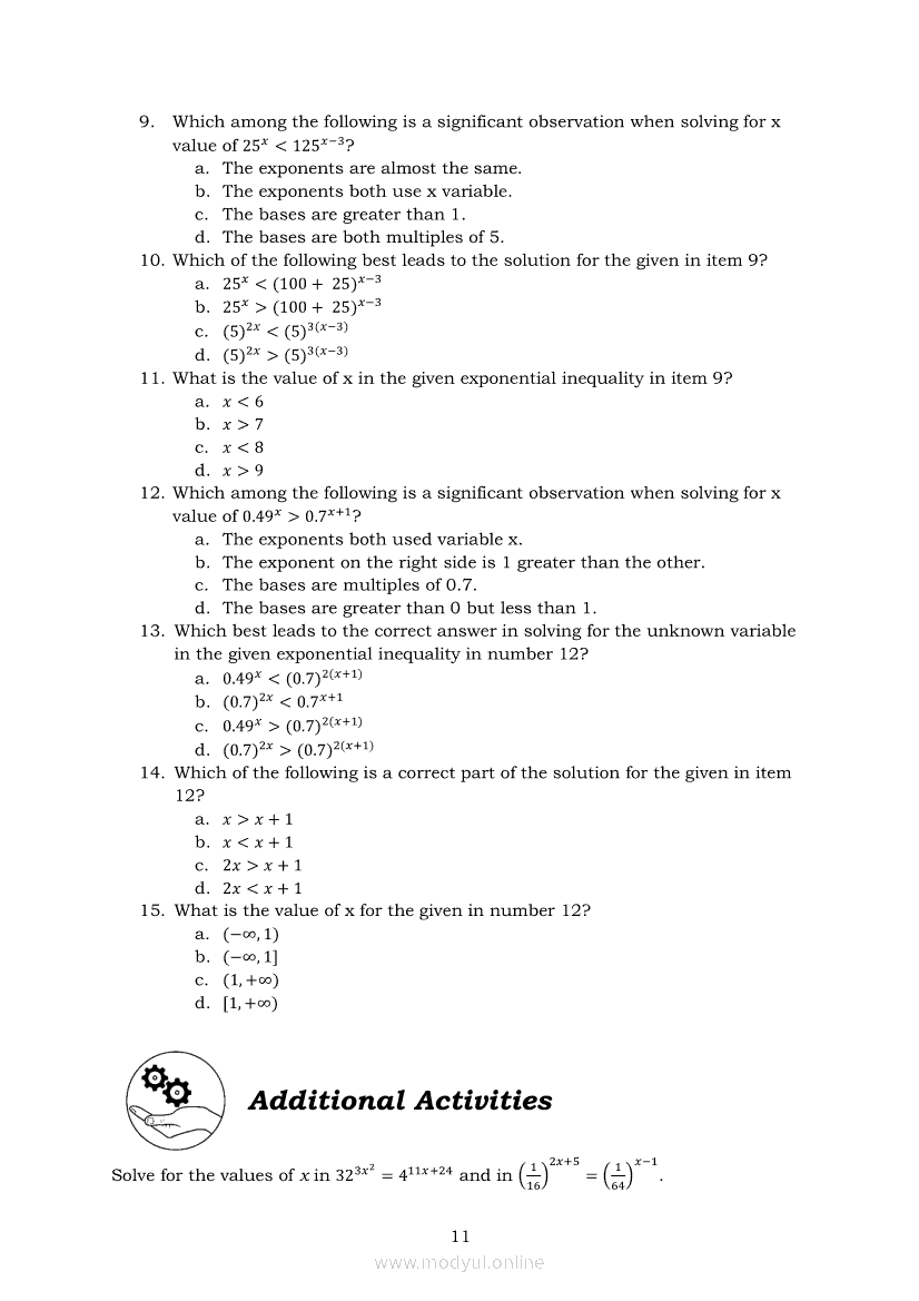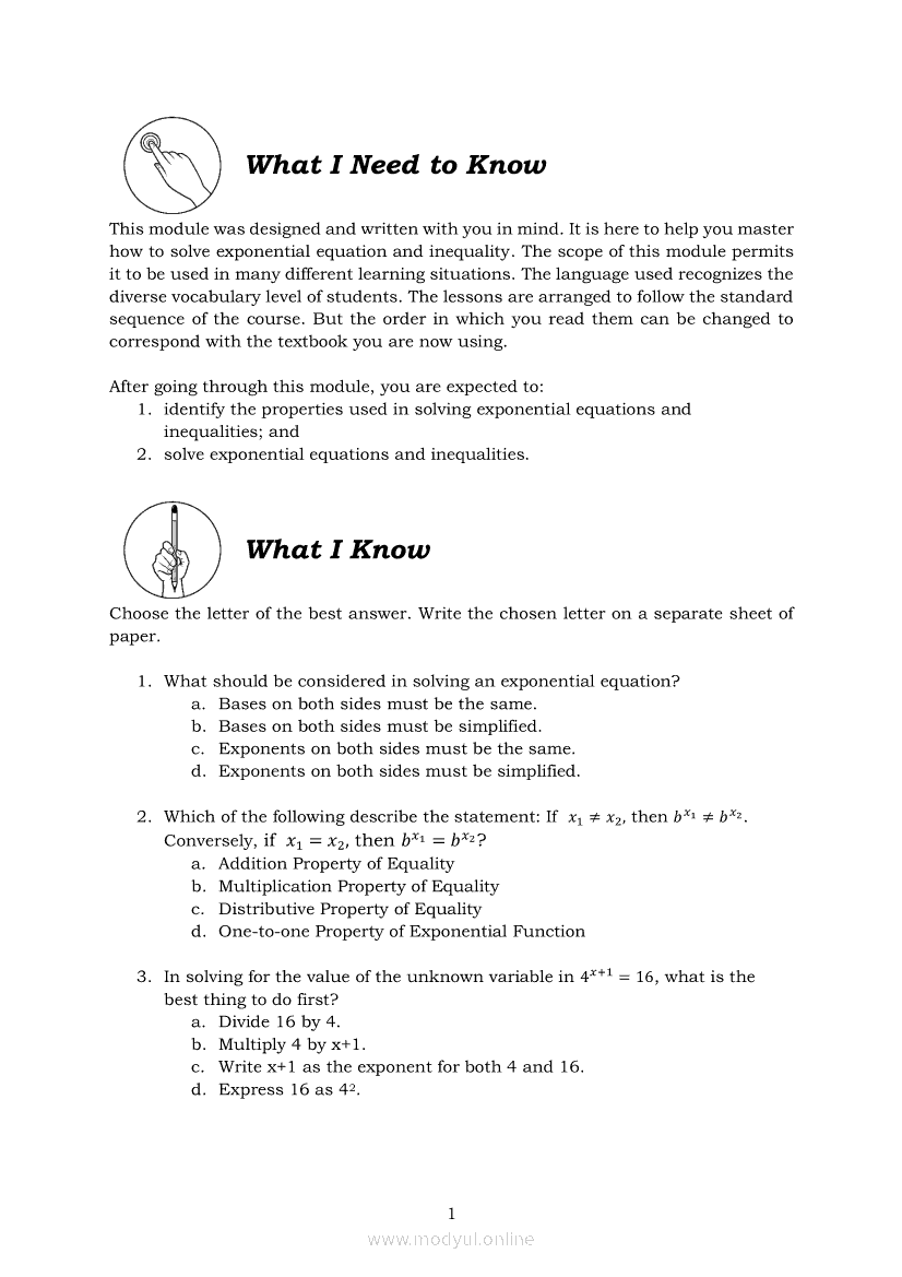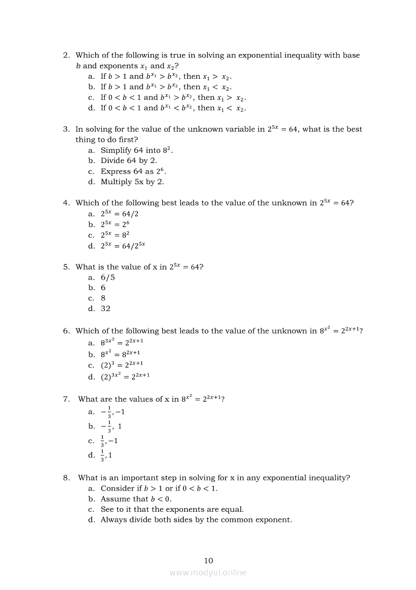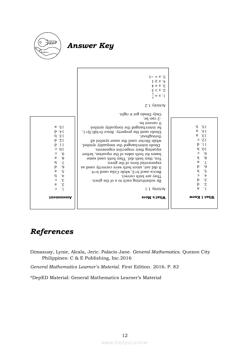 General Mathematics Module 17: Exponential Functions, Equations and InequalitiesApr 22, 2021 SHSGrab your copy of Collegio Advance - ULTIMATE Updated College Entrance Exam Reviewer and pass with flying colors 🎉. General MathematicsRelatedGeneral Mathematics Module 3: Operations on FunctionsGeneral Mathematics Module 14: Domain and Range of Inverse FunctionsGeneral Mathematics Module 2: Evaluating FunctionsGeneral Mathematics Quarter 2 – Module 13: PropositionsGeneral Mathematics Quarter 2 – Module 8: Stocks and Bonds