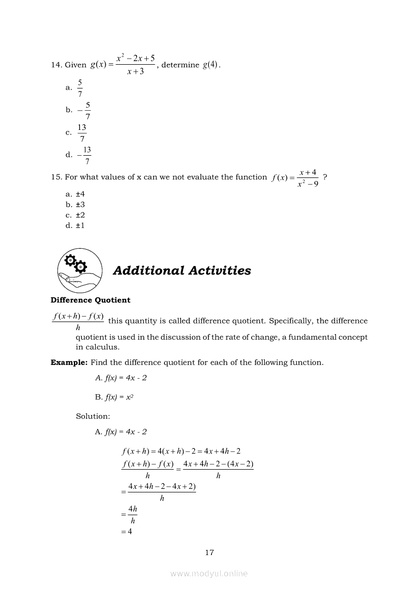 General Mathematics Module 2: Evaluating FunctionsApr 22, 2021 SHSGrab your copy of Collegio Advance - ULTIMATE Updated College Entrance Exam Reviewer and pass with flying colors 🎉. General MathematicsRelatedGeneral Mathematics Module 1: FunctionsGeneral Mathematics Module 27: Intercepts, Zeroes and Asymptotes of Logarithmic FunctionsGeneral Mathematics Module 10: Solving Real-Life Problems Involving Rational Functions, Equations, and InequalitiesGeneral Mathematics Module 12: The Inverse of One-to-one FunctionsGeneral Mathematics Module 4: Solving Real- Life Problems Involving Functions