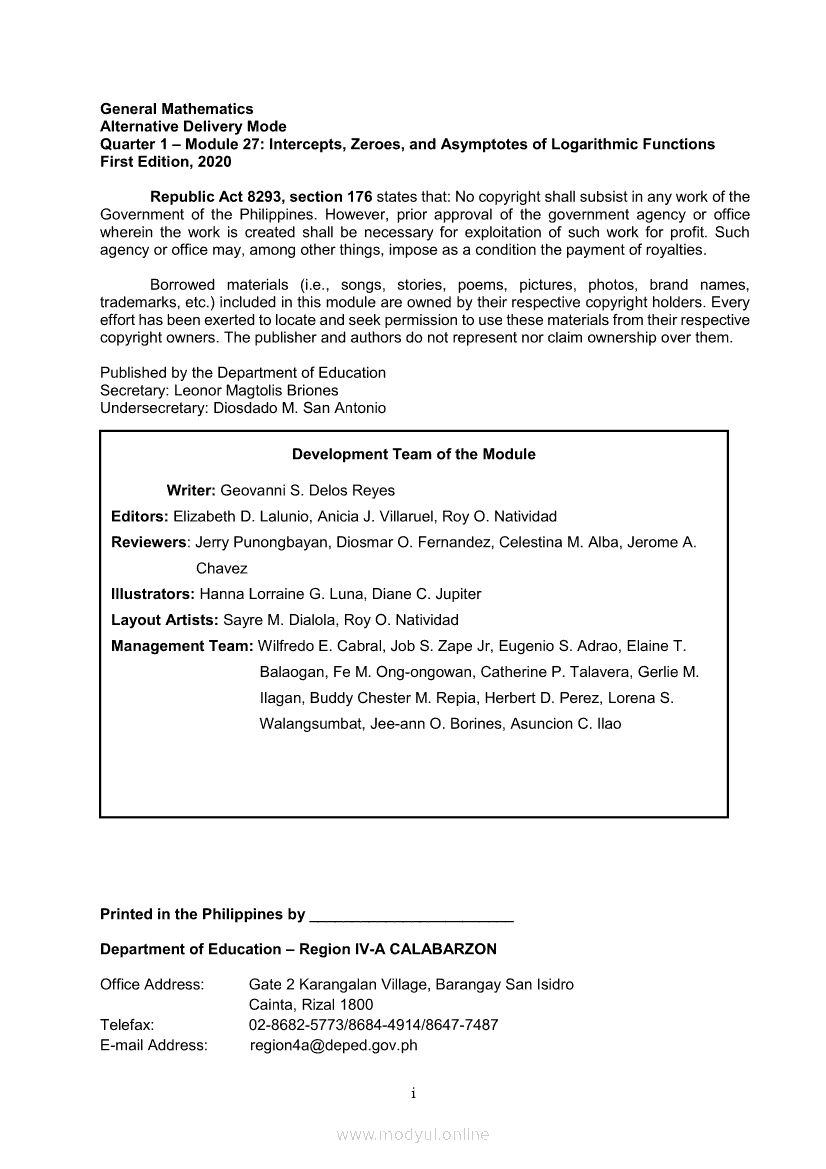General Mathematics Module 28: Solving Real-Life Problems Involving Logarithmic Functions, Equations and InequalitiesApr 22, 2021 SHSGrab your copy of Collegio Advance - ULTIMATE Updated College Entrance Exam Reviewer and pass with flying colors 🎉. General MathematicsRelatedGeneral Mathematics Quarter 2 – Module 15: Logical OperatorsGeneral Mathematics Module 18: Solving Exponential Equations and InequalitiesGeneral Mathematics Module 2: Evaluating FunctionsGeneral Mathematics Quarter 2 – Module 10: Market Indices for Stocks and BondsGeneral Mathematics Module 15: Solving Real-life Problems Involving Inverse Functions