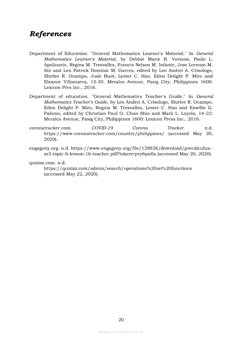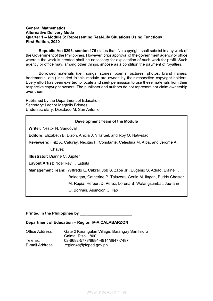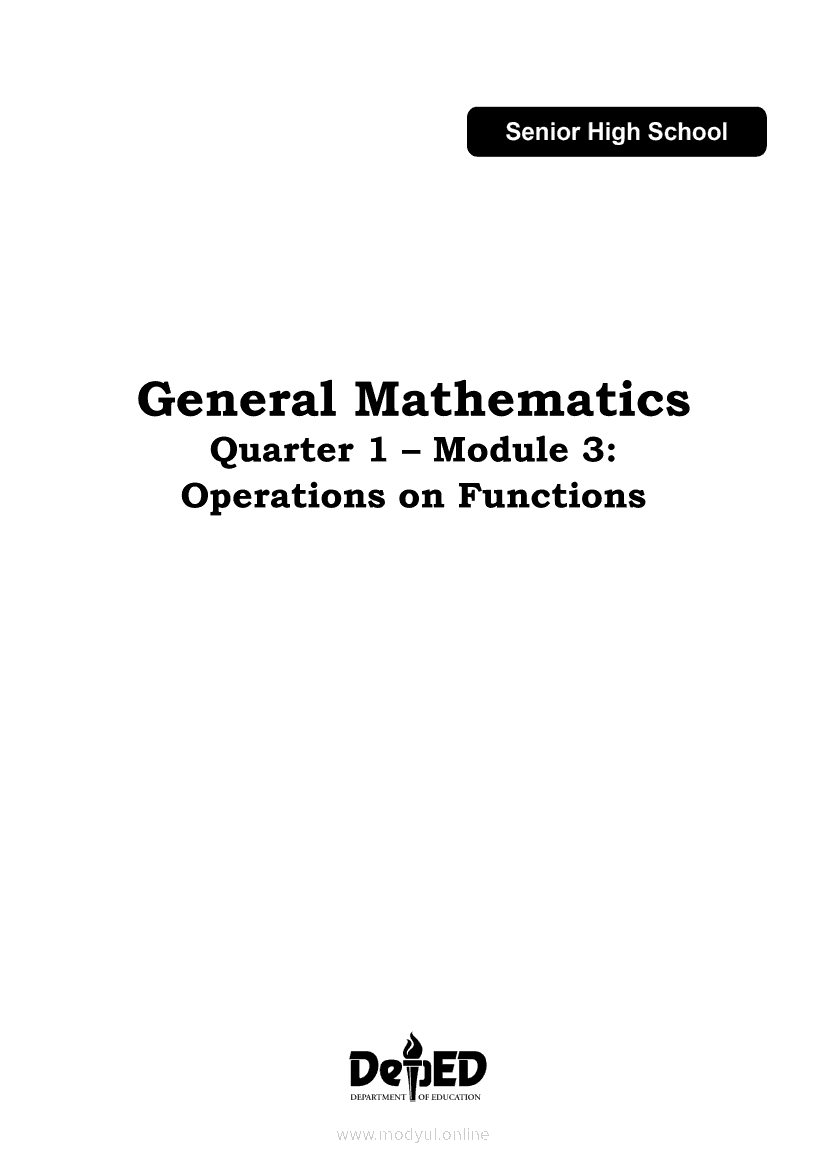 General Mathematics Module 3: Operations on FunctionsApr 22, 2021 SHSGrab your copy of Collegio Advance - ULTIMATE Updated College Entrance Exam Reviewer and pass with flying colors 🎉. General MathematicsRelatedGeneral Mathematics Quarter 2 – Module 15: Logical OperatorsGeneral Mathematics Quarter 2 – Module 12: Solving Problems on Business and Consumer LoansGeneral Mathematics Quarter 2 – Module 8: Stocks and BondsGeneral Mathematics Quarter 2 – Module 14: Simple and Compound PropositionsGeneral Mathematics Module 17: Exponential Functions, Equations and Inequalities