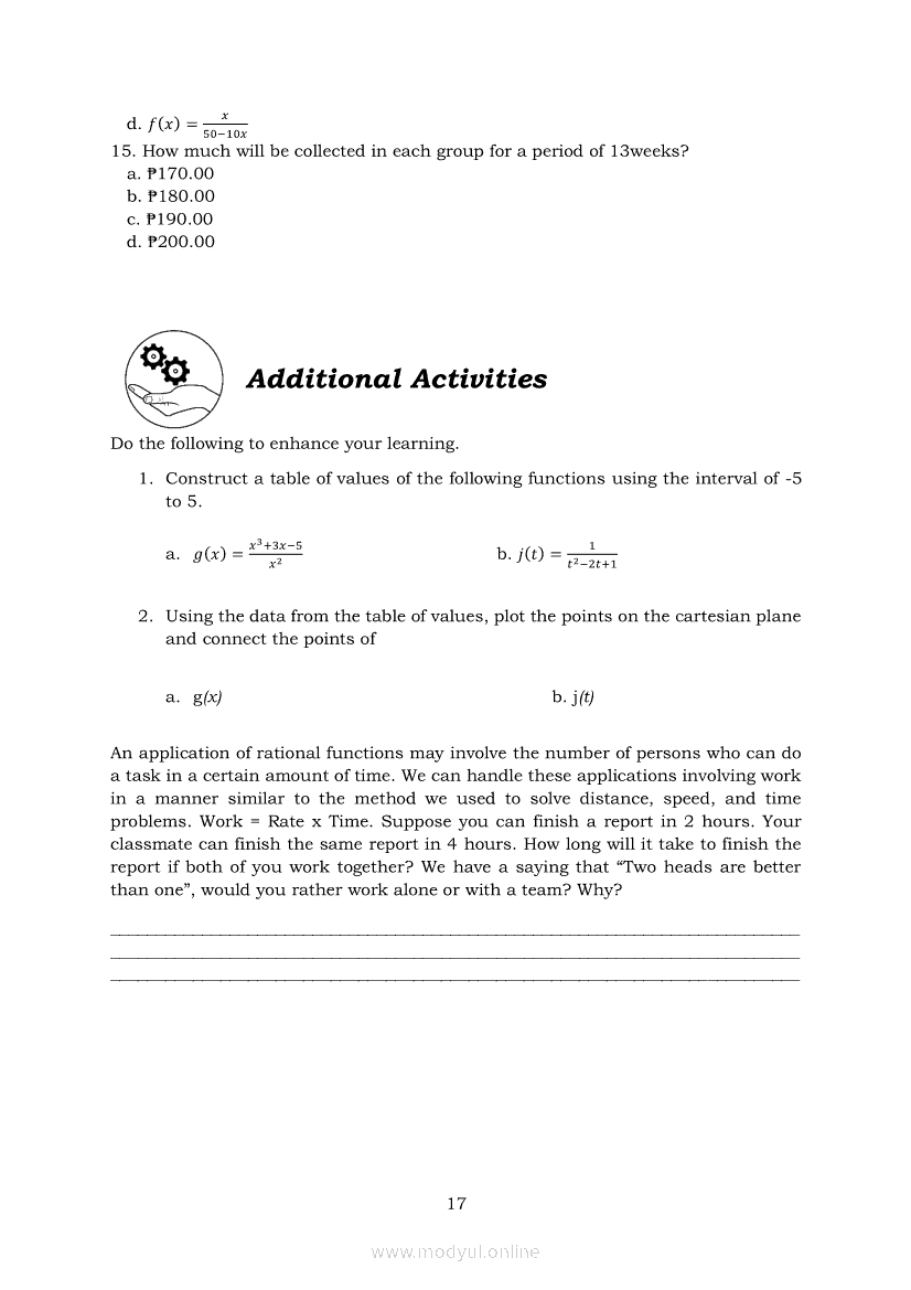 General Mathematics Module 8: The Domain and Range of a Rational FunctionsApr 22, 2021 SHSGrab your copy of Collegio Advance - ULTIMATE Updated College Entrance Exam Reviewer and pass with flying colors 🎉. General MathematicsRelatedGeneral Mathematics Module 10: Solving Real-Life Problems Involving Rational Functions, Equations, and InequalitiesGeneral Mathematics Module 28: Solving Real-Life Problems Involving Logarithmic Functions, Equations and InequalitiesGeneral Mathematics Module 9: Intercepts, Zeroes and Asymptotes of Rational FunctionsGeneral Mathematics Quarter 2 – Module 15: Logical OperatorsGeneral Mathematics Quarter 2 – Module 19: Validity of Categorical Syllogisms