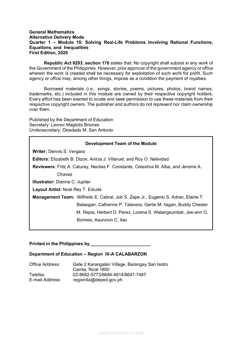 General Mathematics Module 9: Intercepts, Zeroes and Asymptotes of Rational FunctionsApr 22, 2021 SHSGrab your copy of Collegio Advance - ULTIMATE Updated College Entrance Exam Reviewer and pass with flying colors 🎉. General MathematicsRelatedGeneral Mathematics Module 7: Representations of Rational FunctionsGeneral Mathematics Quarter 2 – Module 7: Deferred AnnuityGeneral Mathematics Module 27: Intercepts, Zeroes and Asymptotes of Logarithmic FunctionsGeneral Mathematics Quarter 2 – Module 14: Simple and Compound PropositionsGeneral Mathematics Quarter 2 – Module 4: Simple and General Annuities