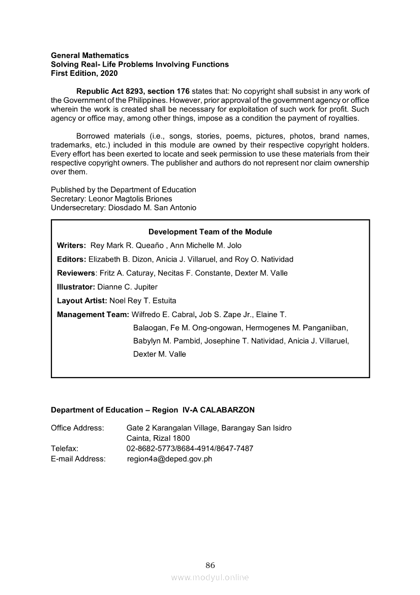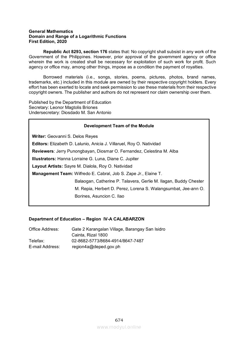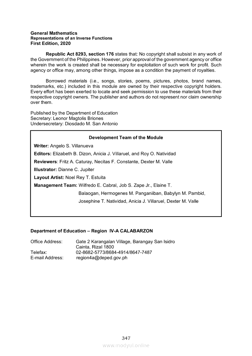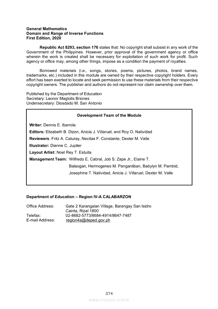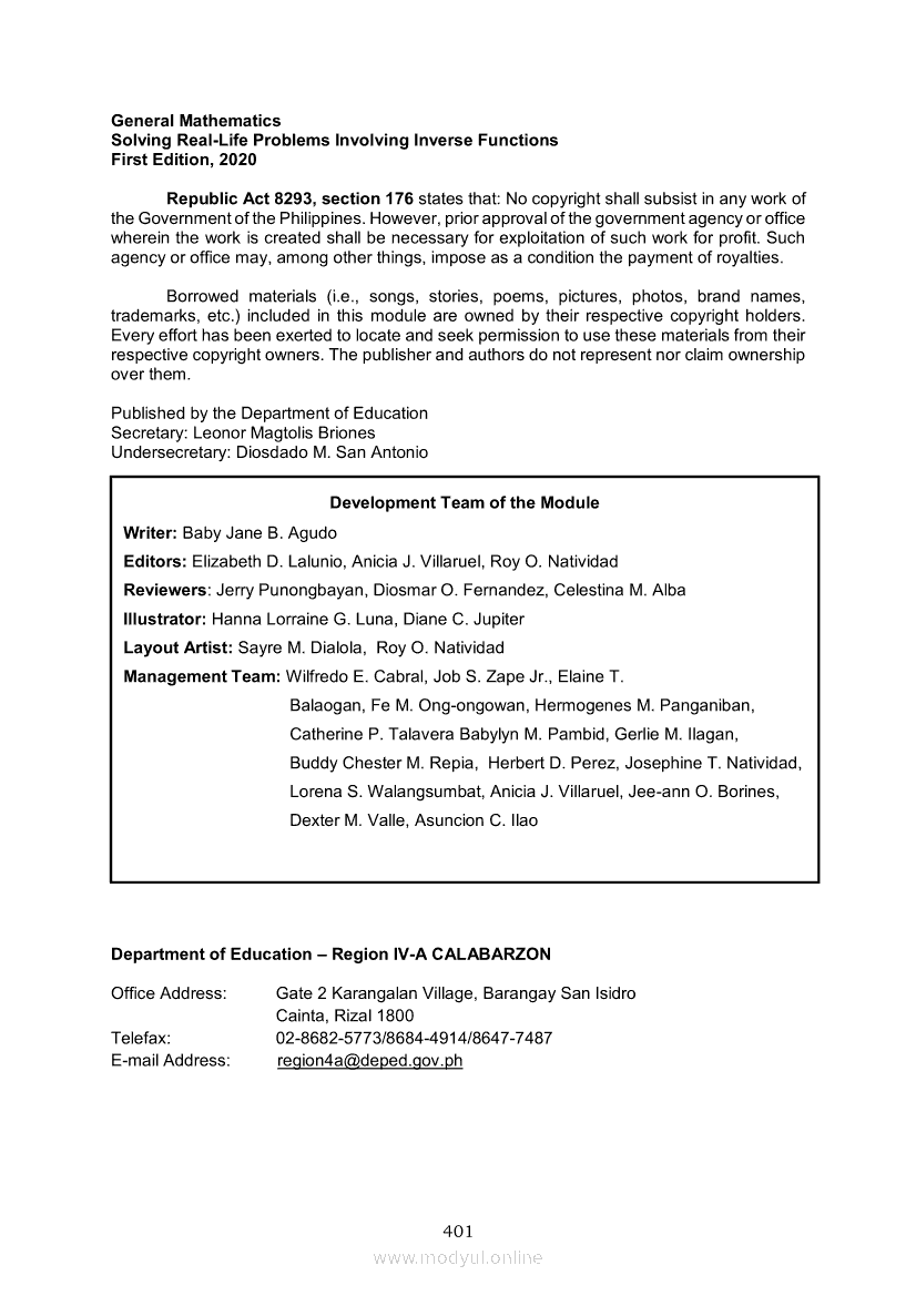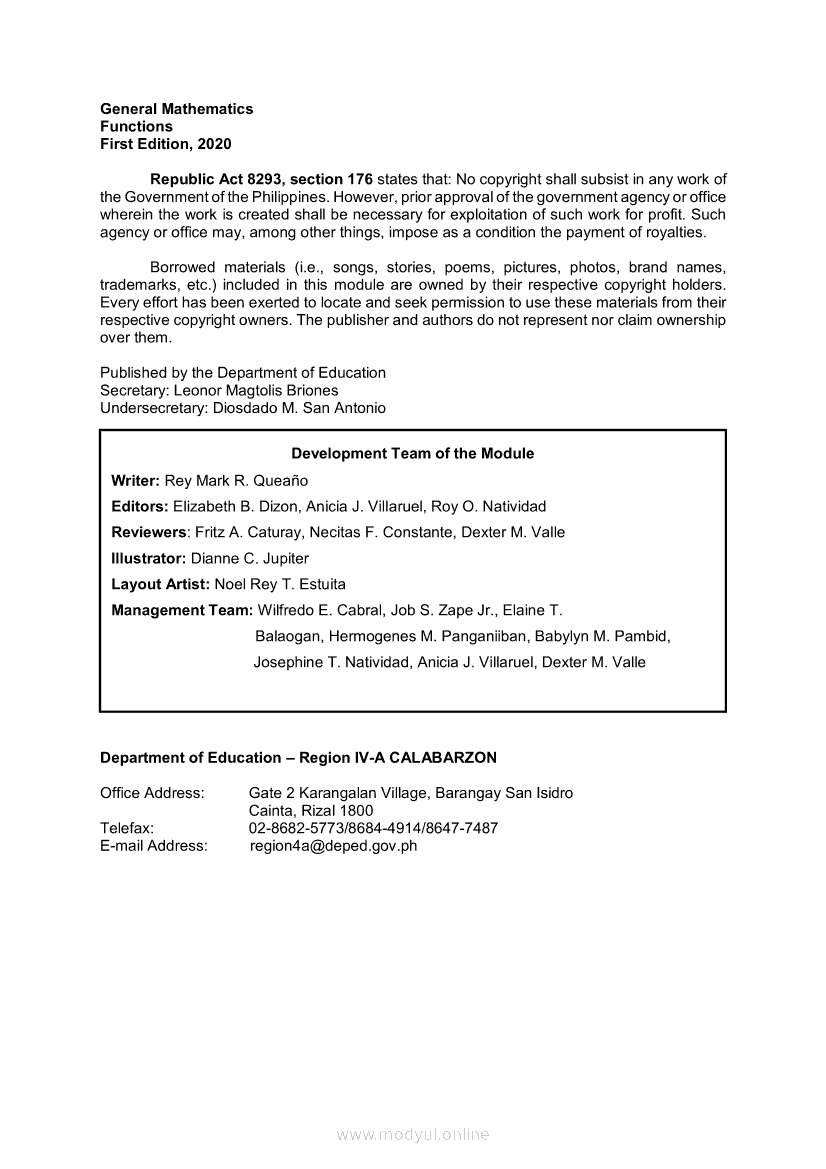 General Mathematics PIVOT Module in General MathematicsApr 22, 2021 SHSGrab your copy of Collegio Advance - ULTIMATE Updated College Entrance Exam Reviewer and pass with flying colors 🎉. General MathematicsRelatedGeneral Mathematics Module 12: The Inverse of One-to-one FunctionsGeneral Mathematics Quarter 2 – Module 18: Tautologies and FallaciesGeneral Mathematics Module 8: The Domain and Range of a Rational FunctionsGeneral Mathematics Module 26: Domain and Range of Logarithmic FunctionsGeneral Mathematics Module 7: Representations of Rational Functions