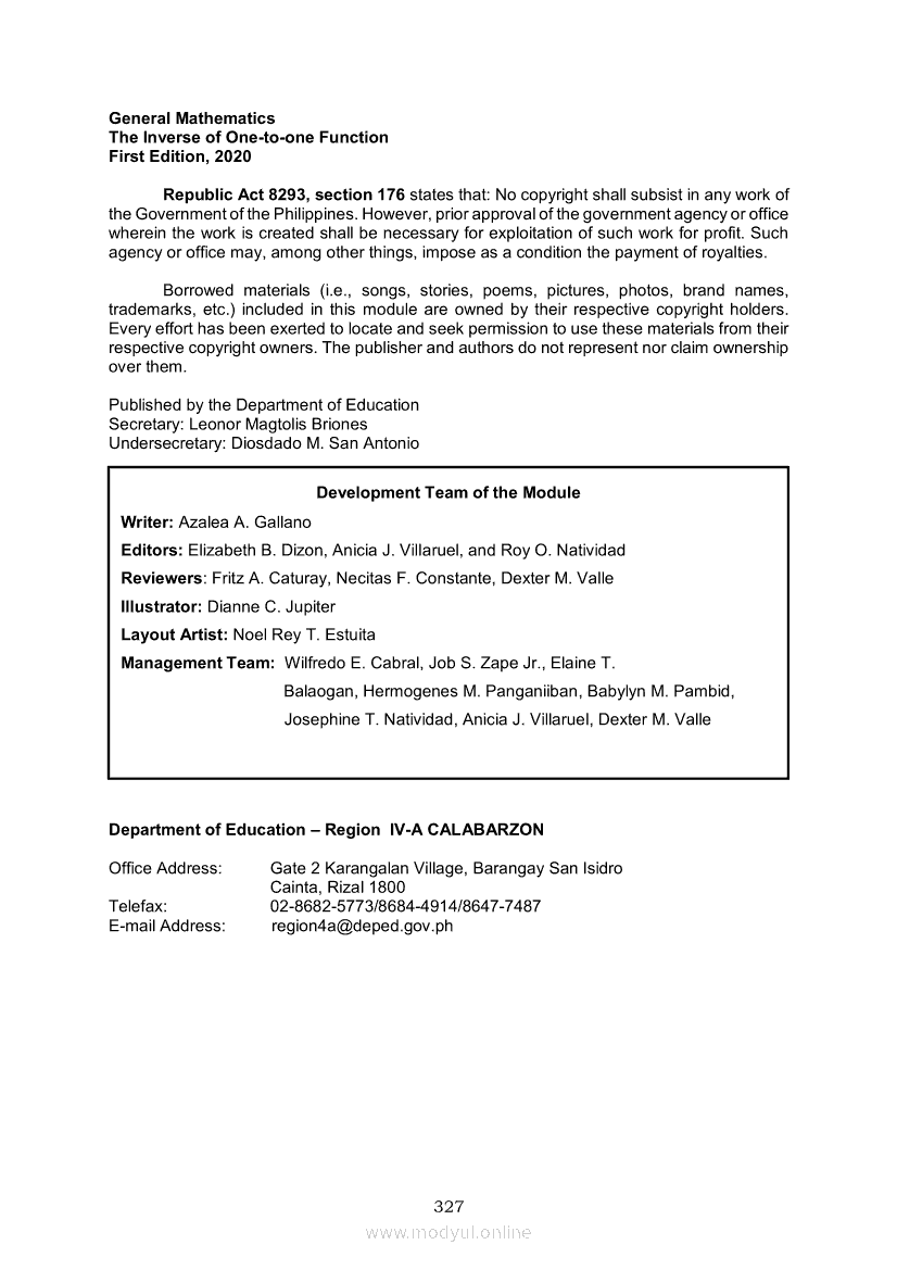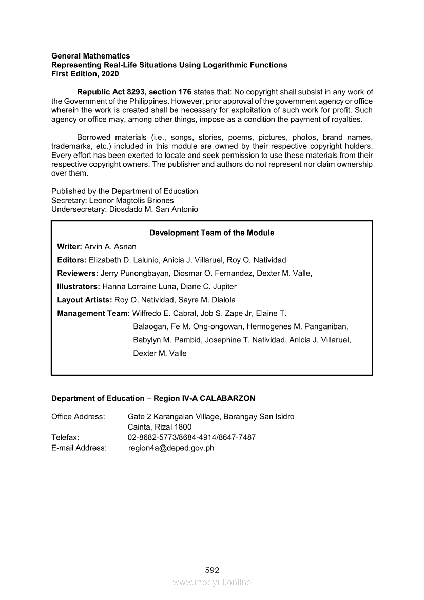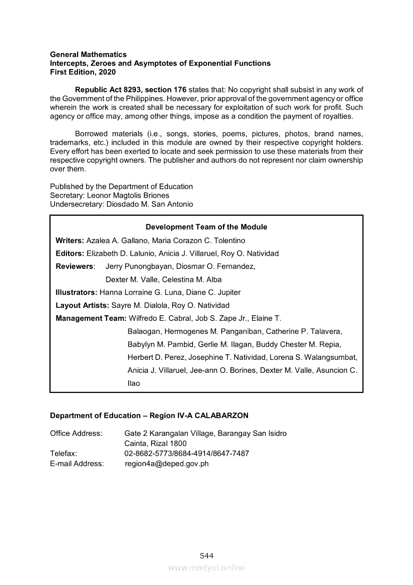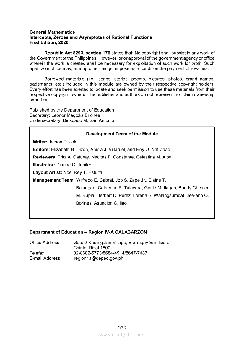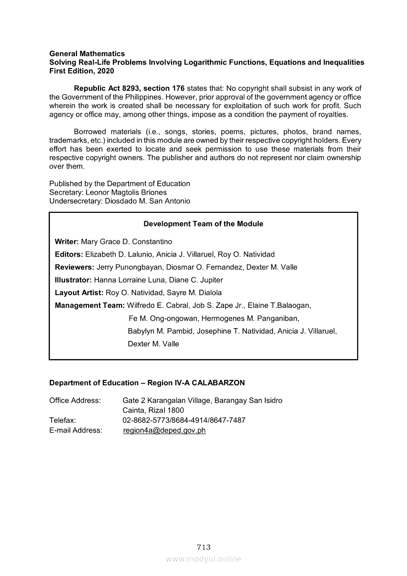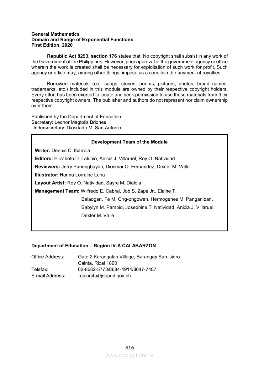 General Mathematics PIVOT Module in General MathematicsApr 22, 2021 SHSGrab your copy of Collegio Advance - ULTIMATE Updated College Entrance Exam Reviewer and pass with flying colors 🎉. General MathematicsRelatedGeneral Mathematics Module 12: The Inverse of One-to-one FunctionsGeneral Mathematics Quarter 2 – Module 18: Tautologies and FallaciesGeneral Mathematics Module 8: The Domain and Range of a Rational FunctionsGeneral Mathematics Module 26: Domain and Range of Logarithmic FunctionsGeneral Mathematics Module 7: Representations of Rational Functions