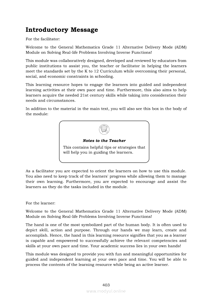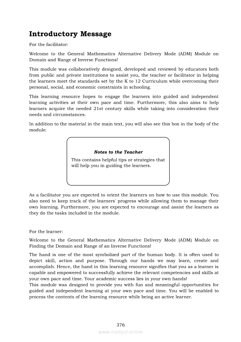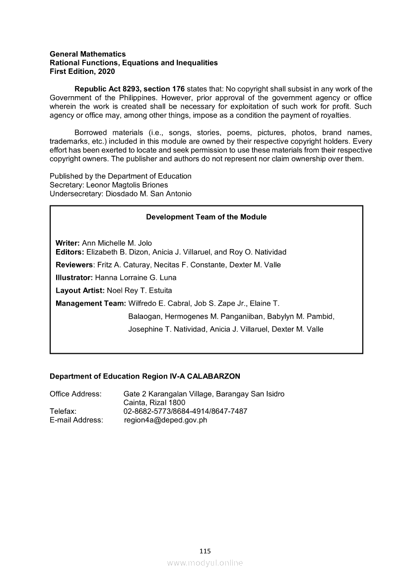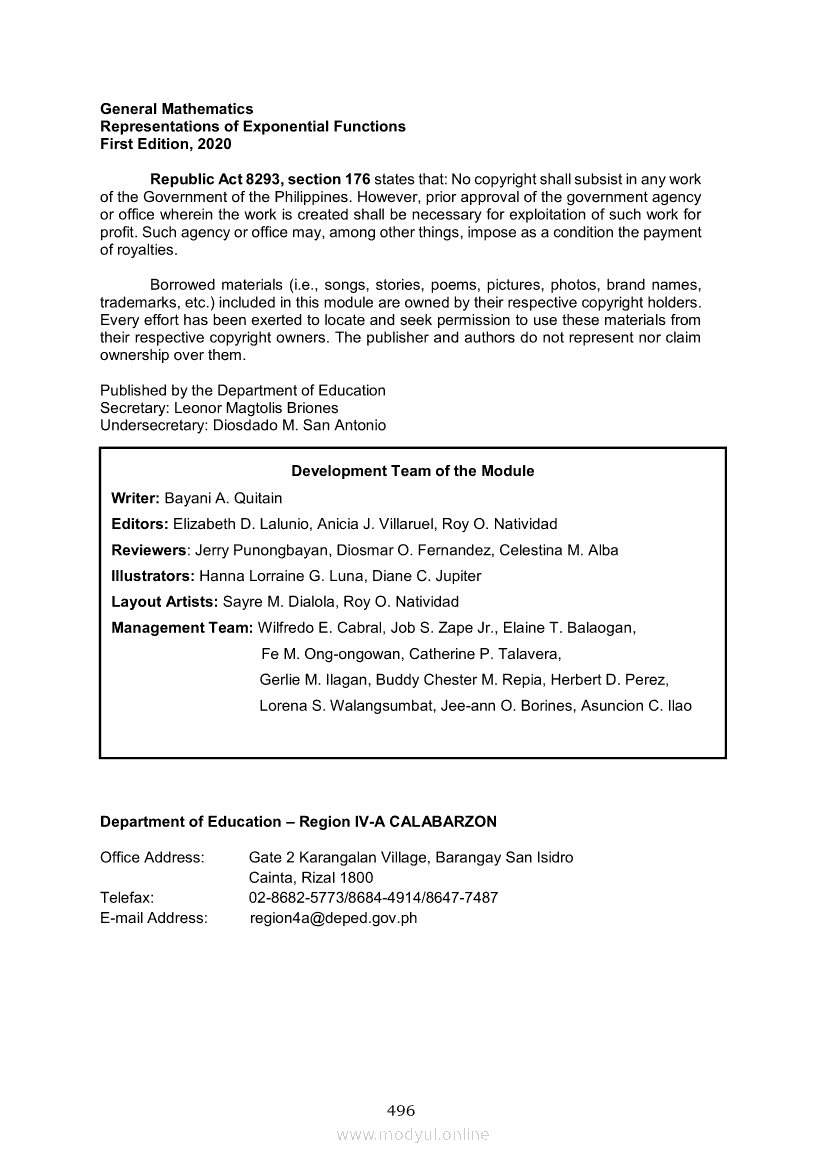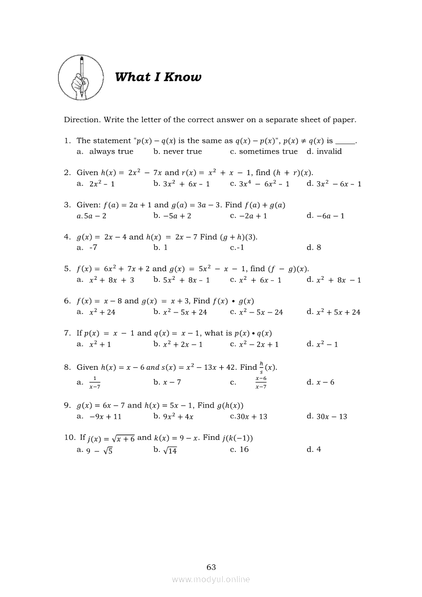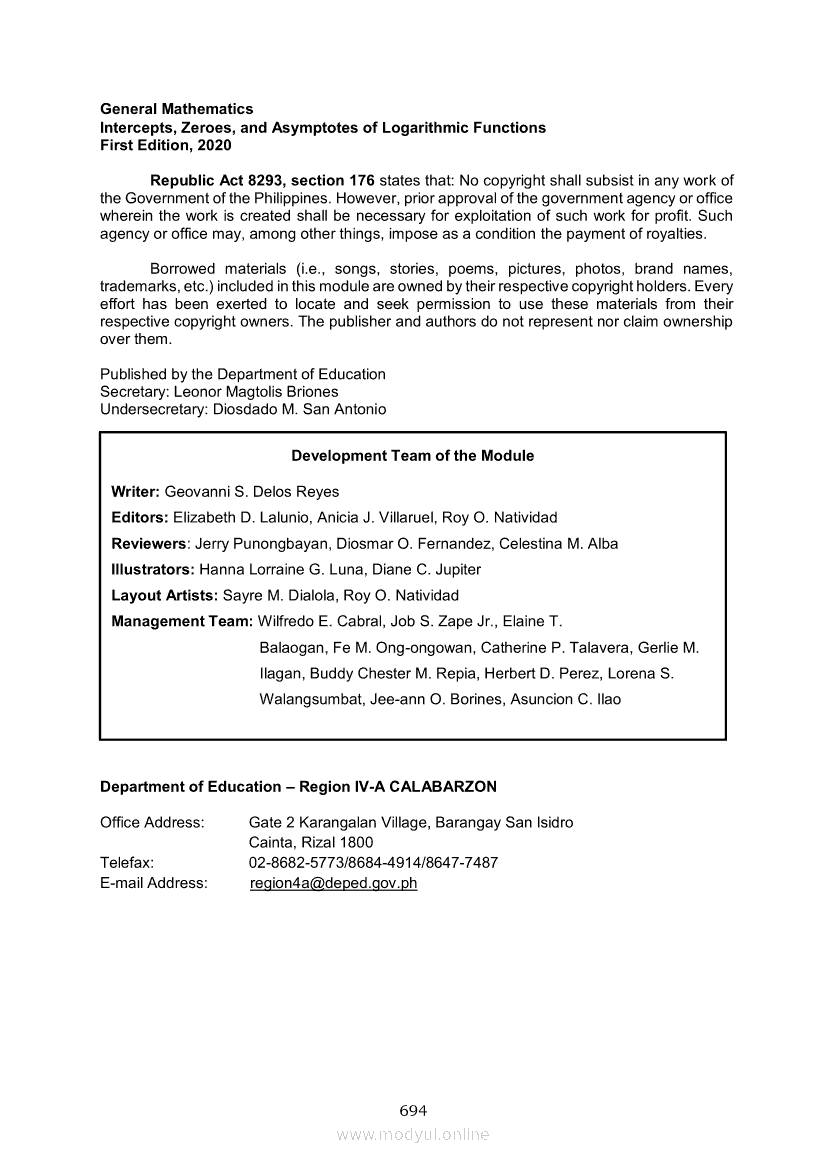 General Mathematics PIVOT Module in General MathematicsApr 22, 2021 SHSGrab your copy of Collegio Advance - ULTIMATE Updated College Entrance Exam Reviewer and pass with flying colors 🎉. General MathematicsRelatedGeneral Mathematics Module 12: The Inverse of One-to-one FunctionsGeneral Mathematics Quarter 2 – Module 18: Tautologies and FallaciesGeneral Mathematics Module 8: The Domain and Range of a Rational FunctionsGeneral Mathematics Module 26: Domain and Range of Logarithmic FunctionsGeneral Mathematics Module 7: Representations of Rational Functions
