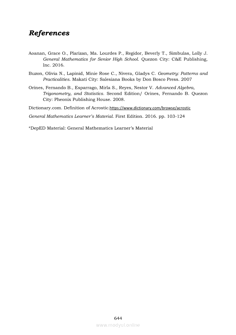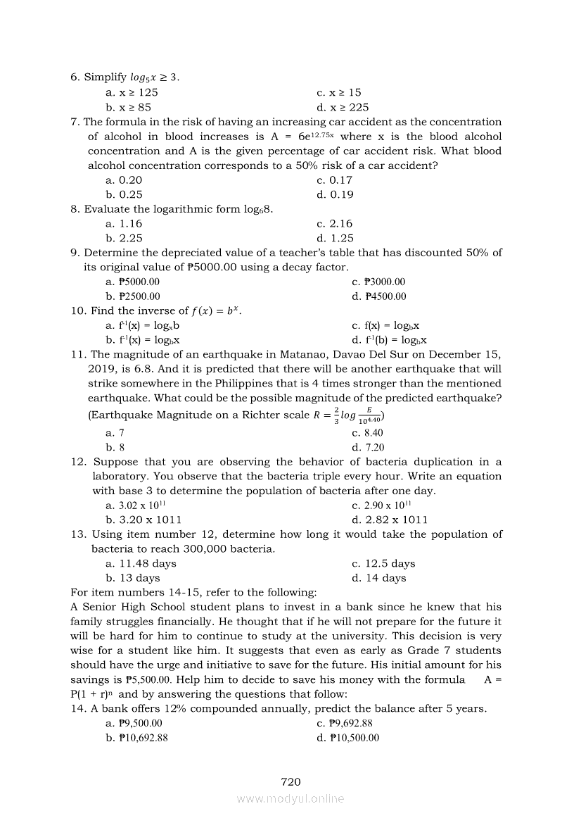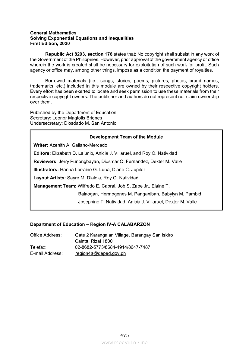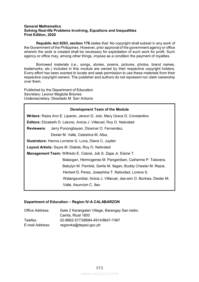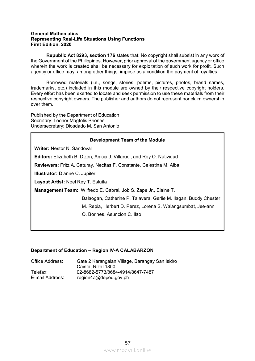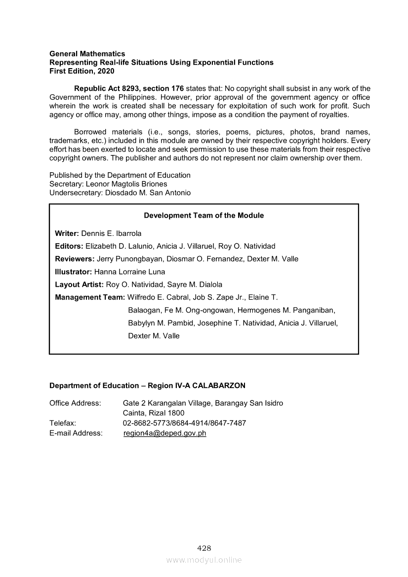 General Mathematics PIVOT Module in General MathematicsApr 22, 2021 SHSGrab your copy of Collegio Advance - ULTIMATE Updated College Entrance Exam Reviewer and pass with flying colors 🎉. General MathematicsRelatedGeneral Mathematics Module 12: The Inverse of One-to-one FunctionsGeneral Mathematics Quarter 2 – Module 18: Tautologies and FallaciesGeneral Mathematics Module 8: The Domain and Range of a Rational FunctionsGeneral Mathematics Module 26: Domain and Range of Logarithmic FunctionsGeneral Mathematics Module 7: Representations of Rational Functions
