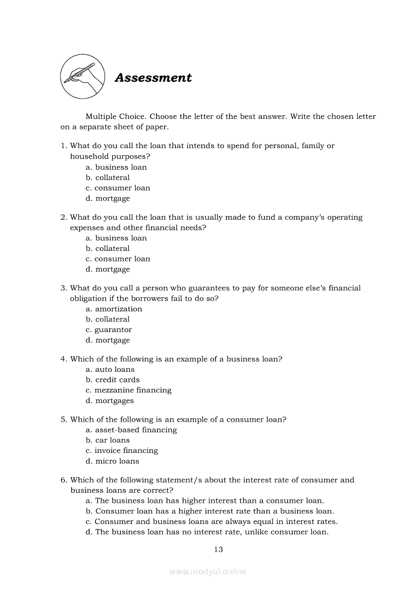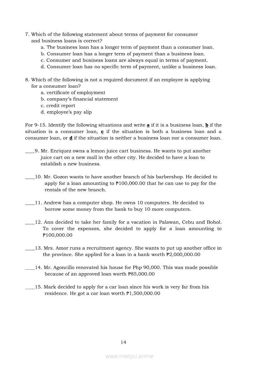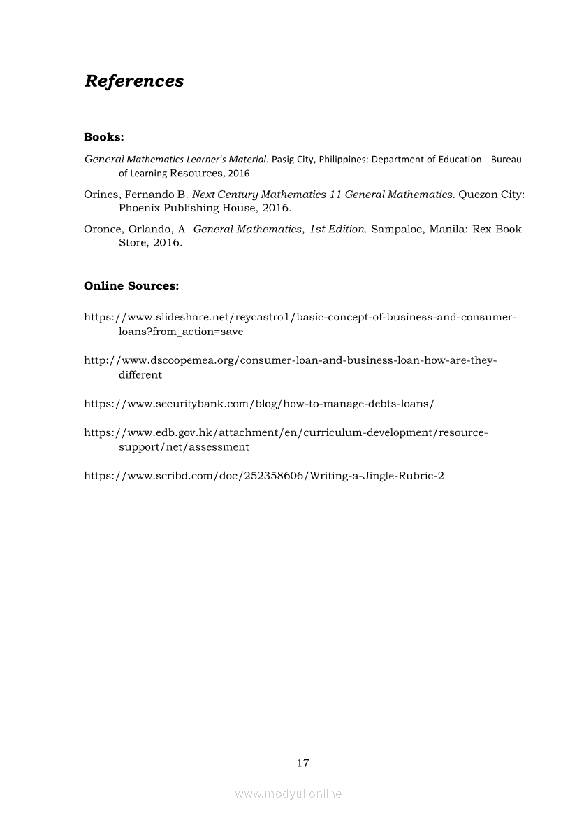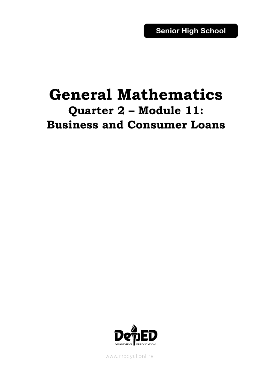 General Mathematics Quarter 2 – Module 11: Business and Consumer LoansApr 22, 2021 SHSGrab your copy of Collegio Advance - ULTIMATE Updated College Entrance Exam Reviewer and pass with flying colors 🎉. General MathematicsRelatedGeneral Mathematics Module 3: Operations on FunctionsGeneral Mathematics Module 11: One-to-One FunctionsGeneral Mathematics Quarter 2 – Module 10: Market Indices for Stocks and BondsGeneral Mathematics Module 10: Solving Real-Life Problems Involving Rational Functions, Equations, and InequalitiesGeneral Mathematics Quarter 2 – Module 14: Simple and Compound Propositions