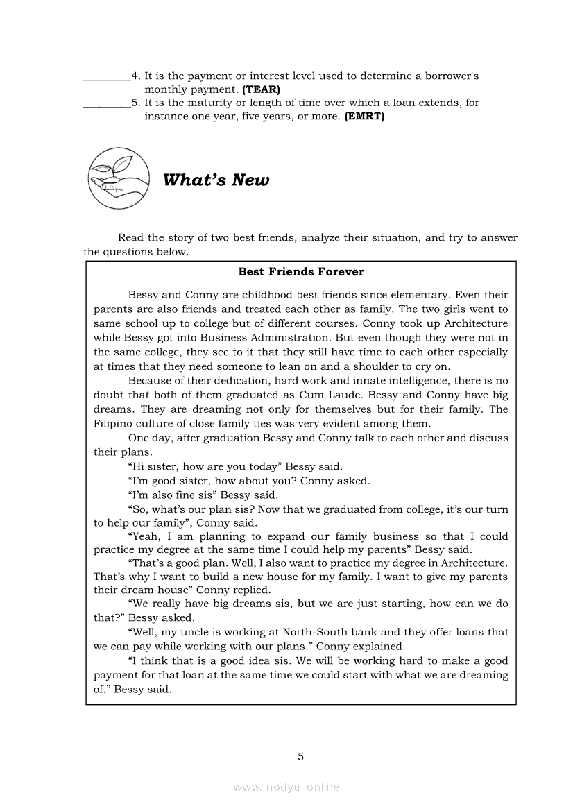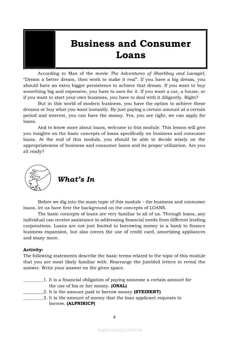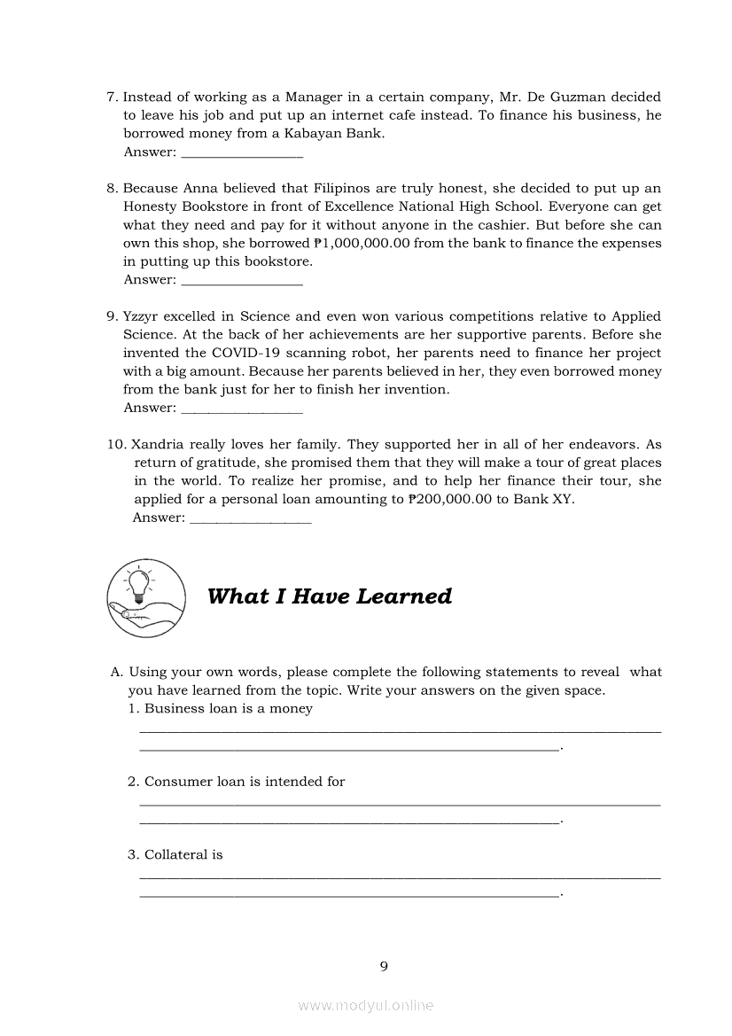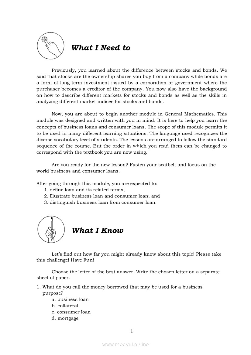 General Mathematics Quarter 2 – Module 11: Business and Consumer LoansApr 22, 2021 SHSGrab your copy of Collegio Advance - ULTIMATE Updated College Entrance Exam Reviewer and pass with flying colors 🎉. General MathematicsRelatedGeneral Mathematics Module 3: Operations on FunctionsGeneral Mathematics Module 11: One-to-One FunctionsGeneral Mathematics Quarter 2 – Module 10: Market Indices for Stocks and BondsGeneral Mathematics Module 10: Solving Real-Life Problems Involving Rational Functions, Equations, and InequalitiesGeneral Mathematics Quarter 2 – Module 14: Simple and Compound Propositions