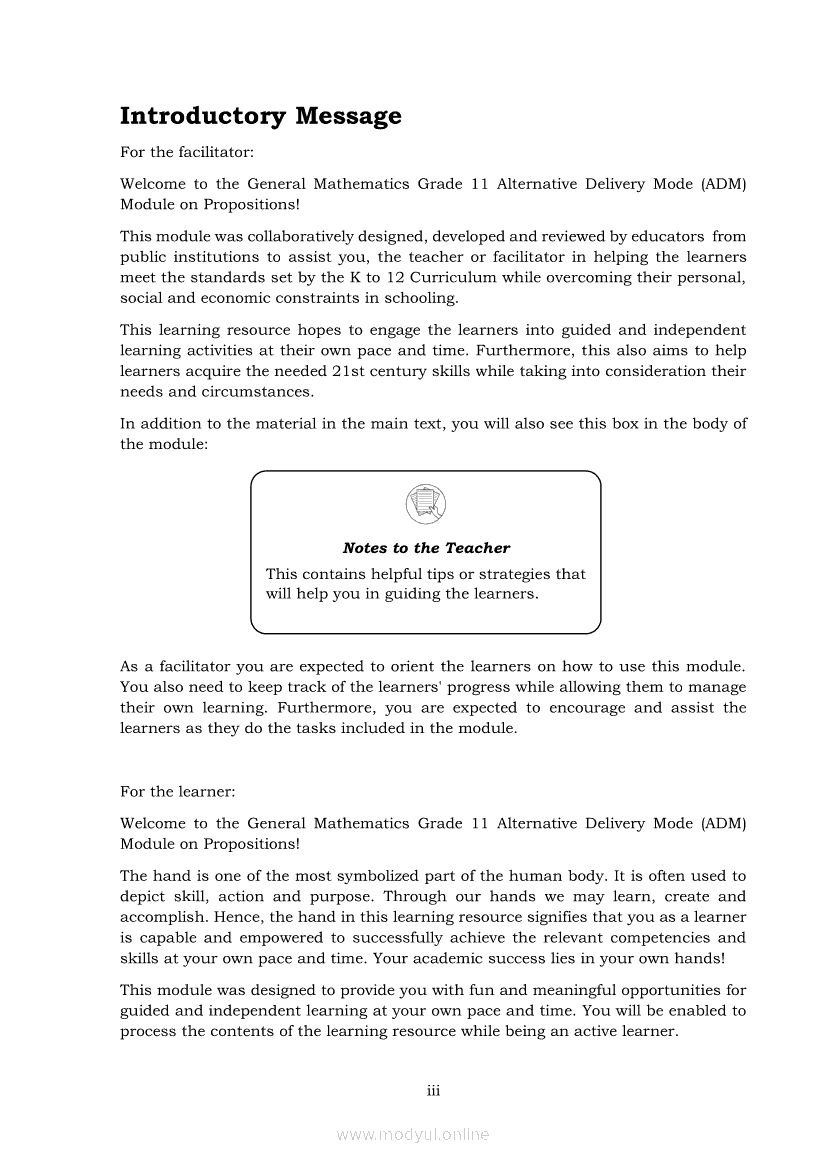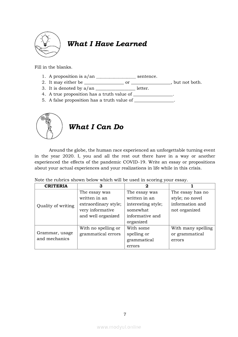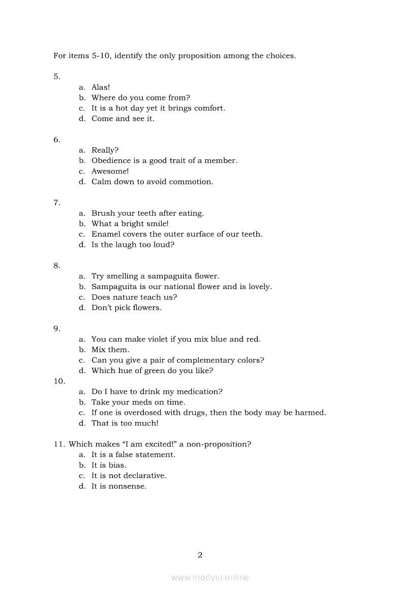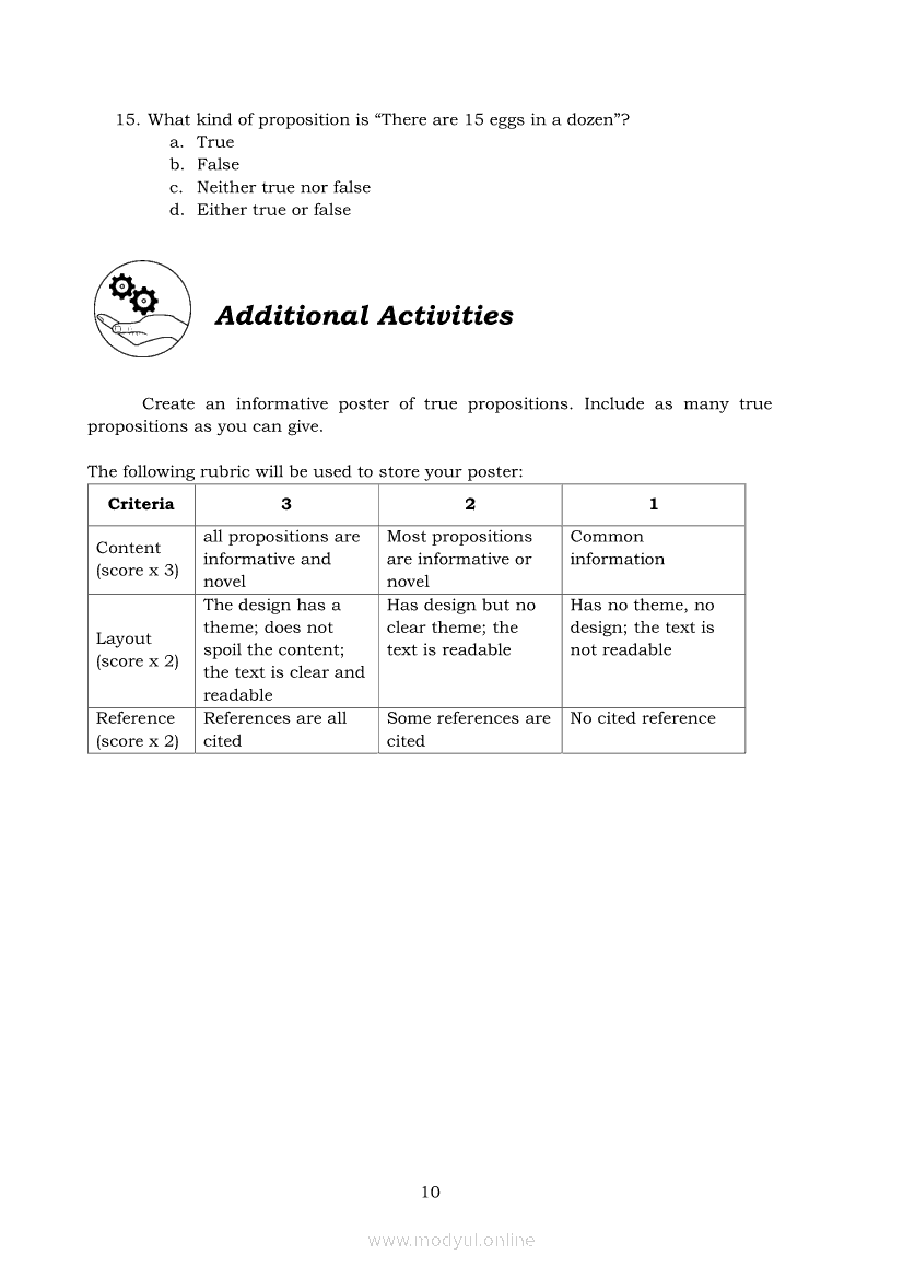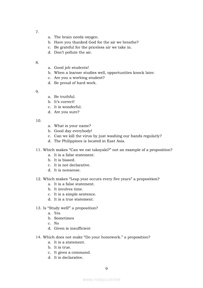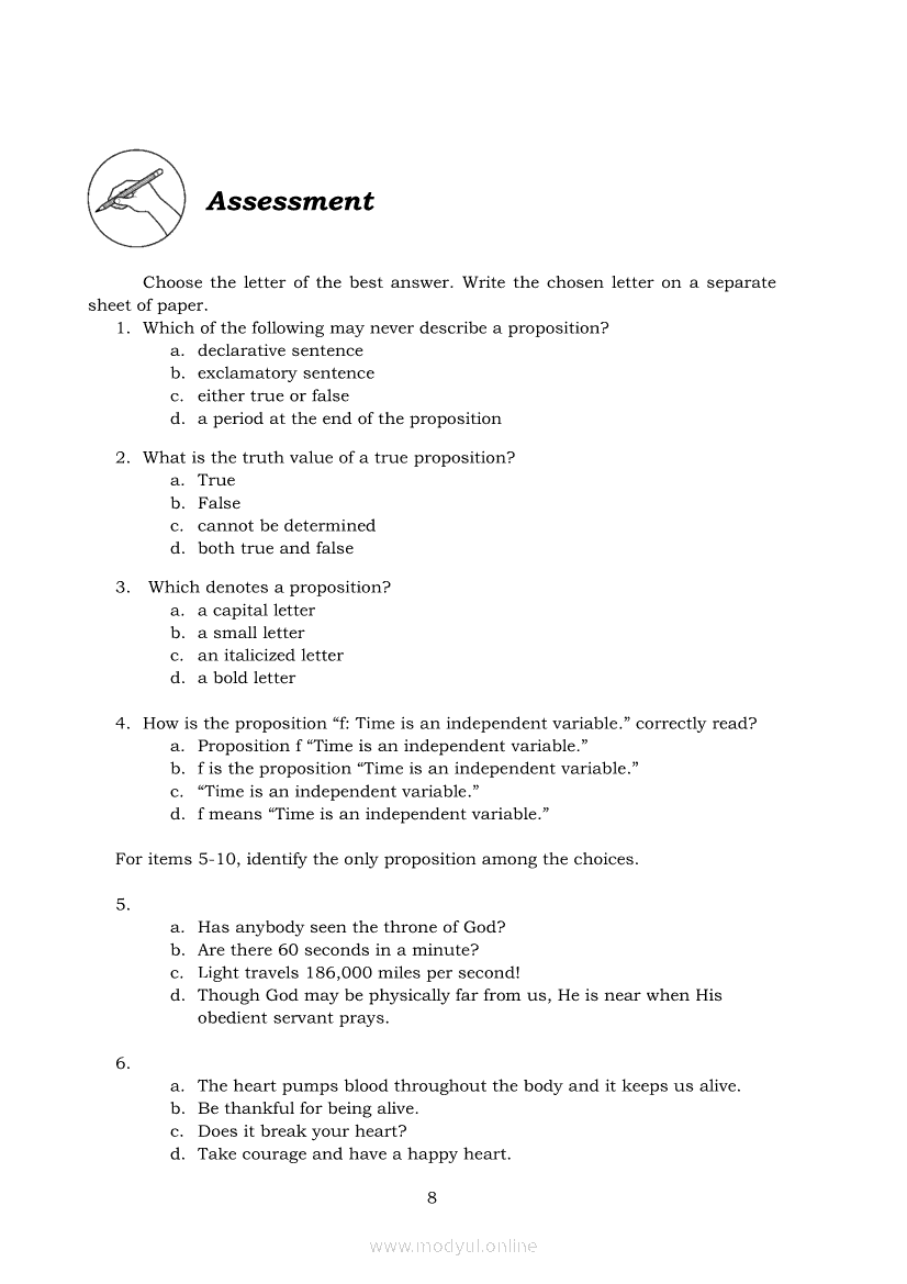 General Mathematics Quarter 2 – Module 13: PropositionsApr 22, 2021 SHSGrab your copy of Collegio Advance - ULTIMATE Updated College Entrance Exam Reviewer and pass with flying colors 🎉. General MathematicsRelatedGeneral Mathematics Module 8: The Domain and Range of a Rational FunctionsGeneral Mathematics Quarter 2 – Module 20: Valid Arguments and FallaciesGeneral Mathematics Module 10: Solving Real-Life Problems Involving Rational Functions, Equations, and InequalitiesGeneral Mathematics Quarter 2 – Module 15: Logical OperatorsGeneral Mathematics Quarter 2 – Module 14: Simple and Compound Propositions
