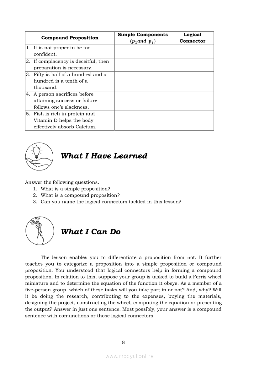 General Mathematics Quarter 2 – Module 14: Simple and Compound PropositionsApr 22, 2021 SHSGrab your copy of Collegio Advance - ULTIMATE Updated College Entrance Exam Reviewer and pass with flying colors 🎉. General MathematicsRelatedGeneral Mathematics Quarter 2 – Module 12: Solving Problems on Business and Consumer LoansGeneral Mathematics Module 7: Representations of Rational FunctionsGeneral Mathematics Quarter 2 – Module 18: Tautologies and FallaciesGeneral Mathematics Quarter 2 – Module 15: Logical OperatorsGeneral Mathematics Quarter 2 – Module 4: Simple and General Annuities