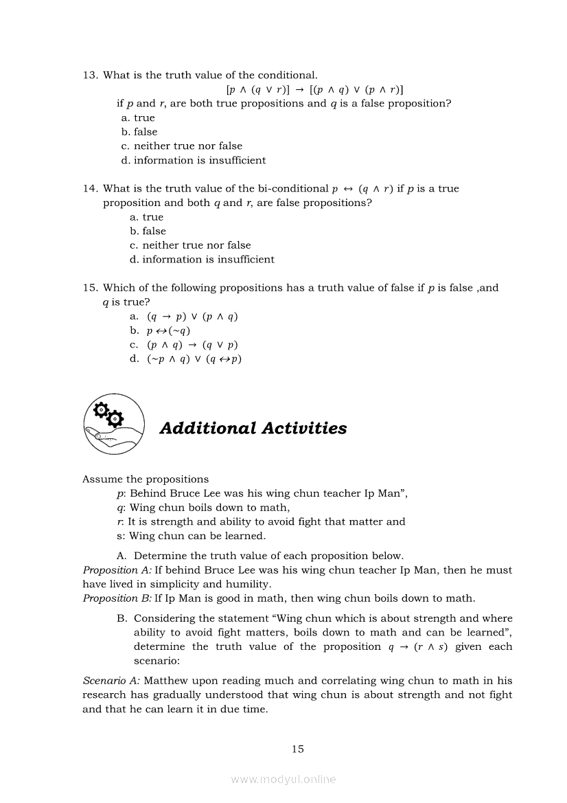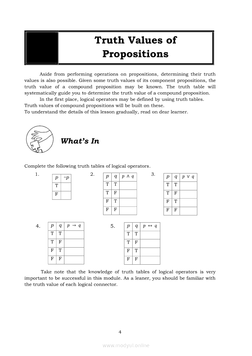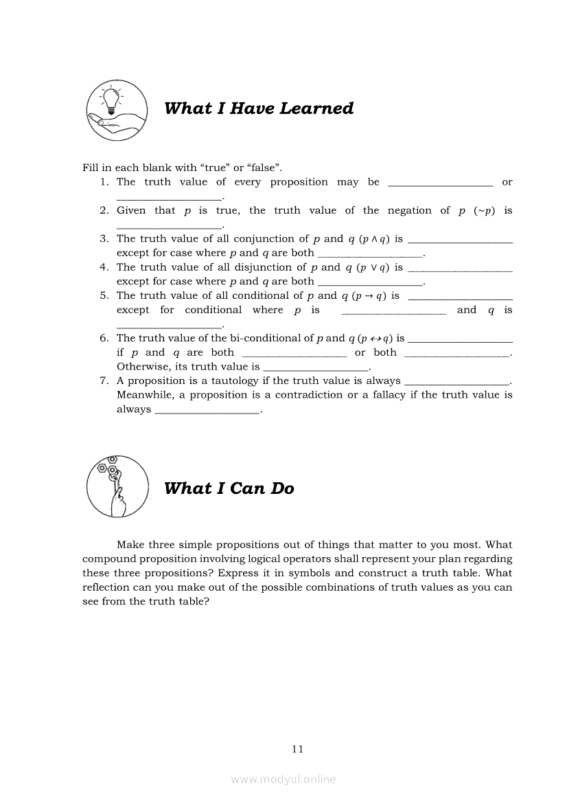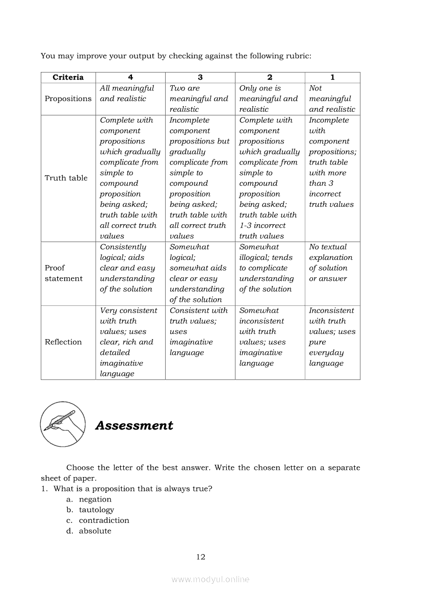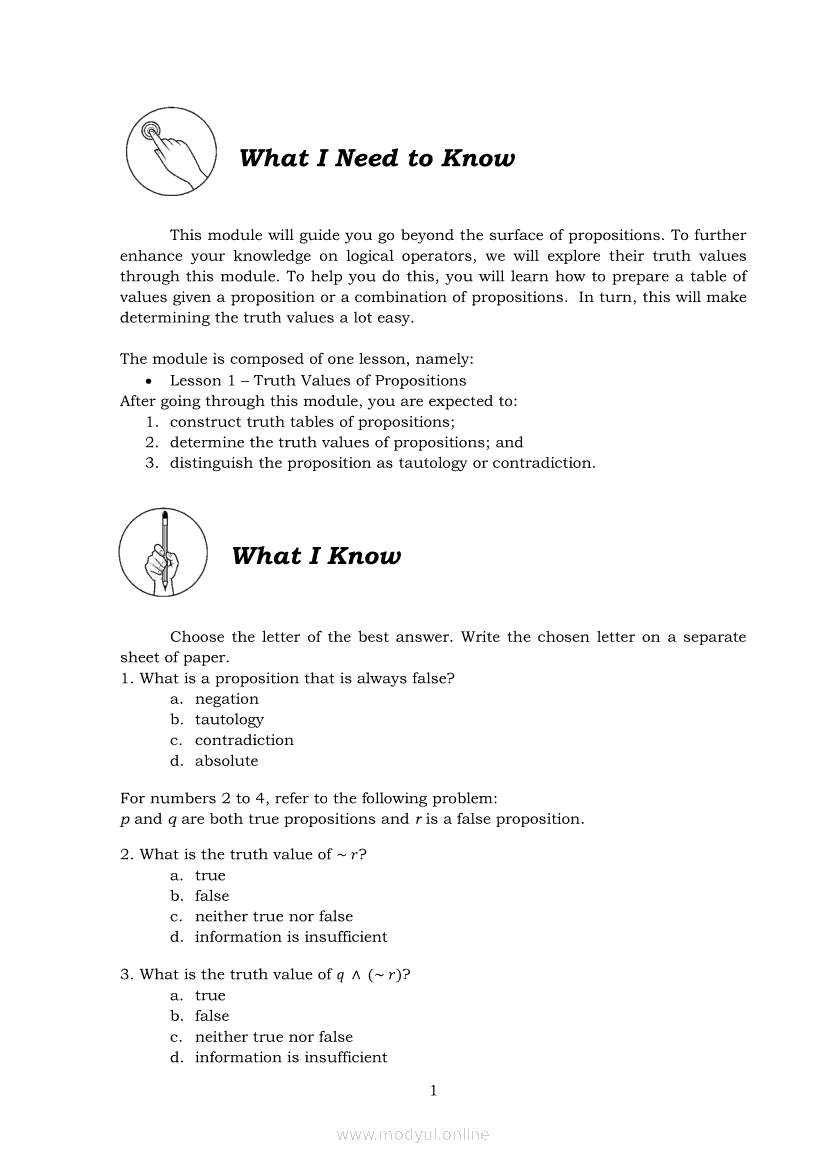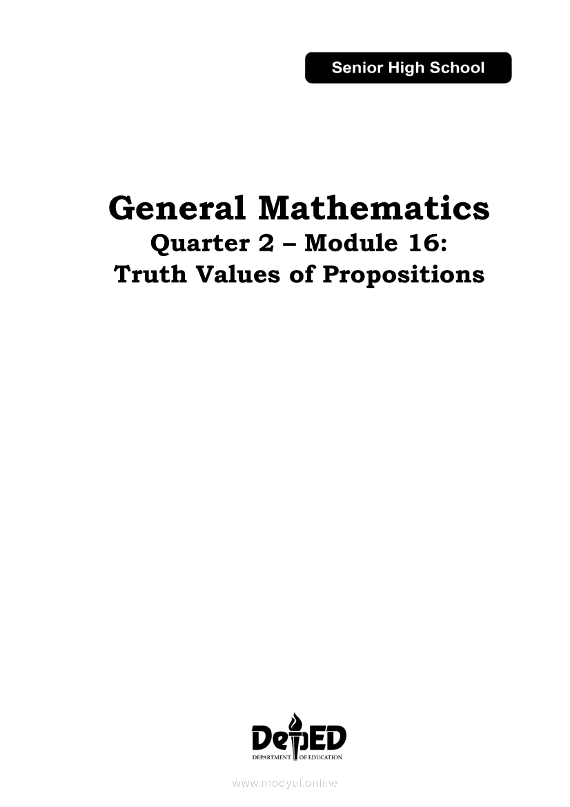 General Mathematics Quarter 2 – Module 16: Truth Values of PropositionsApr 22, 2021 SHSGrab your copy of Collegio Advance - ULTIMATE Updated College Entrance Exam Reviewer and pass with flying colors 🎉. General MathematicsRelatedGeneral Mathematics Quarter 2 – Module 10: Market Indices for Stocks and BondsGeneral Mathematics Quarter 2 – Module 20: Valid Arguments and FallaciesGeneral Mathematics Quarter 2 – Module 13: PropositionsGeneral Mathematics Quarter 2 – Module 17: Logical Equivalence and Conditional PropositionsGeneral Mathematics Quarter 2 – Module 9: Different Markets for Stocks and Bonds
