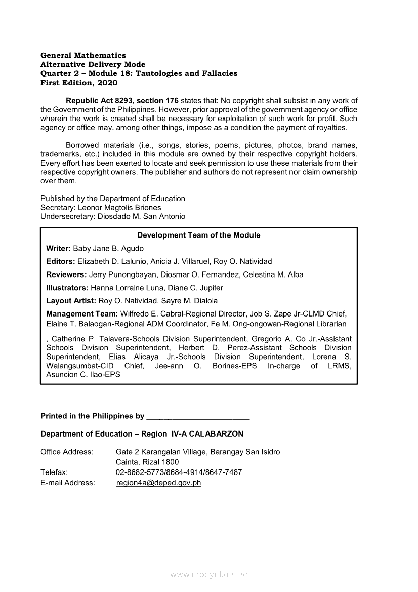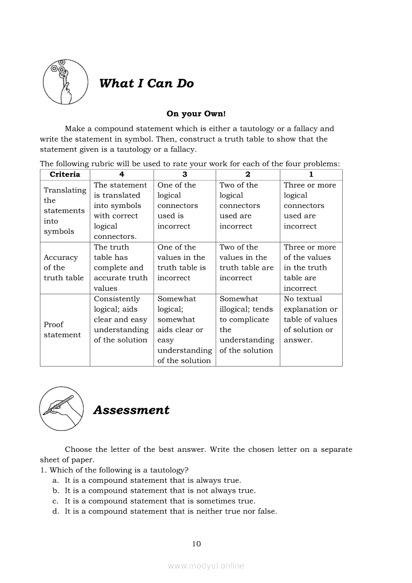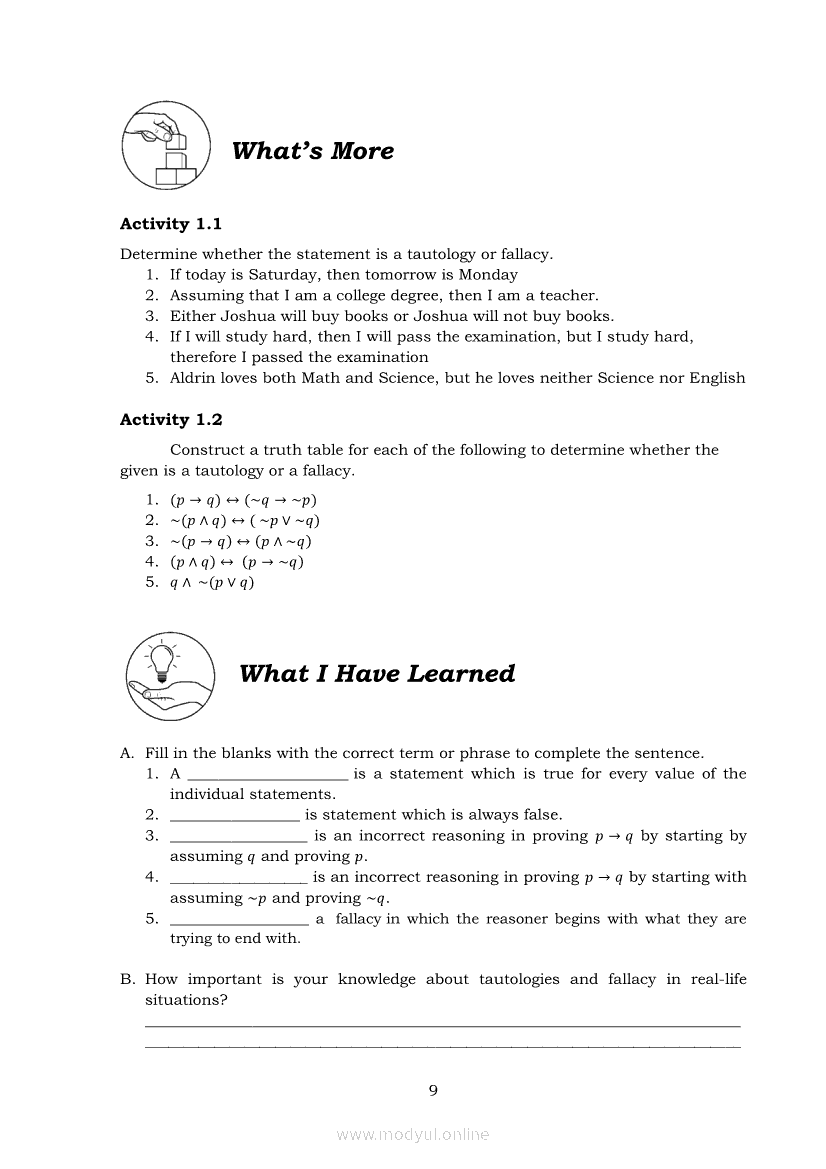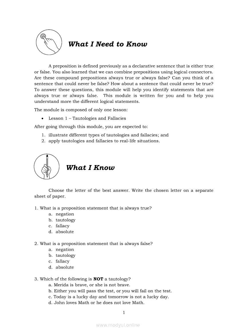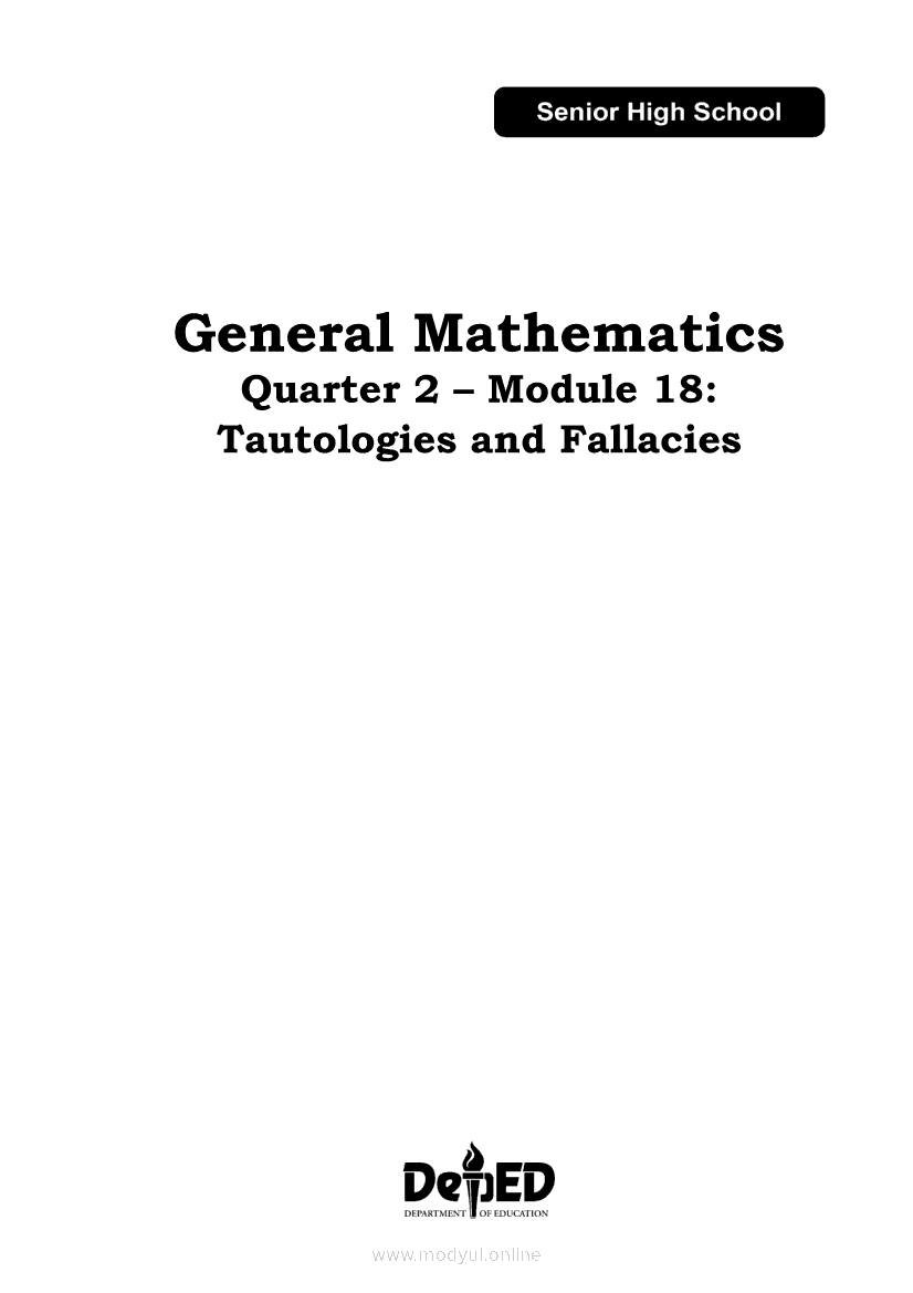 General Mathematics Quarter 2 – Module 18: Tautologies and FallaciesApr 22, 2021 SHSGrab your copy of Collegio Advance - ULTIMATE Updated College Entrance Exam Reviewer and pass with flying colors 🎉. General MathematicsRelatedGeneral Mathematics Quarter 2 – Module 8: Stocks and BondsGeneral Mathematics Module 26: Domain and Range of Logarithmic FunctionsGeneral Mathematics Quarter 2 – Module 17: Logical Equivalence and Conditional PropositionsGeneral Mathematics Quarter 2 – Module 15: Logical OperatorsGeneral Mathematics Quarter 2 – Module 2: Interest, Maturity, Future, and Present Values in Simple and Compound Interests