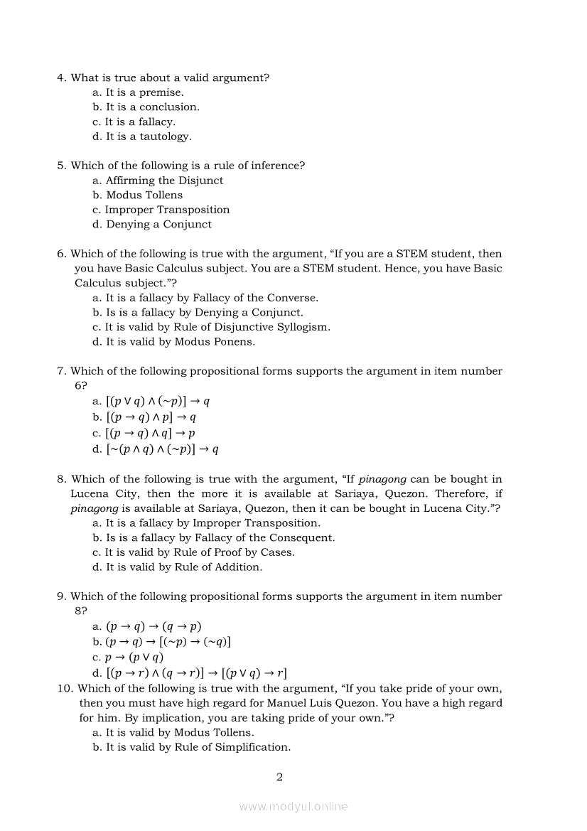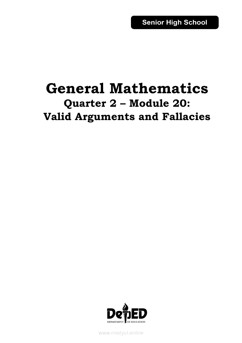 General Mathematics Quarter 2 – Module 20: Valid Arguments and FallaciesApr 22, 2021 SHSGrab your copy of Collegio Advance - ULTIMATE Updated College Entrance Exam Reviewer and pass with flying colors 🎉. General MathematicsRelatedGeneral Mathematics Module 27: Intercepts, Zeroes and Asymptotes of Logarithmic FunctionsGeneral Mathematics Module 1: FunctionsGeneral Mathematics Module 4: Solving Real- Life Problems Involving FunctionsGeneral Mathematics Quarter 2 – Module 3: Solving Problems Involving Simple and Compound InterestGeneral Mathematics Quarter 2 – Module 9: Different Markets for Stocks and Bonds