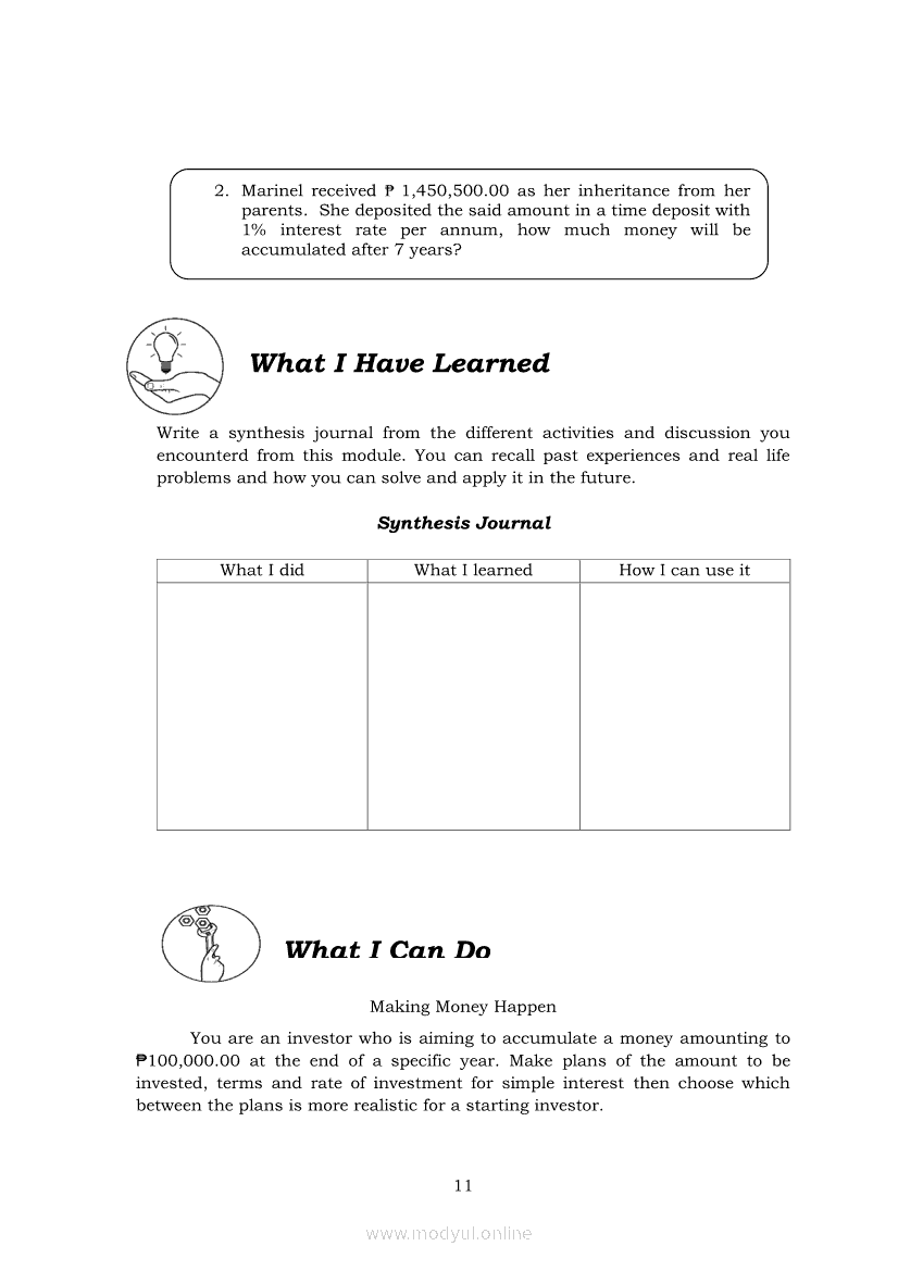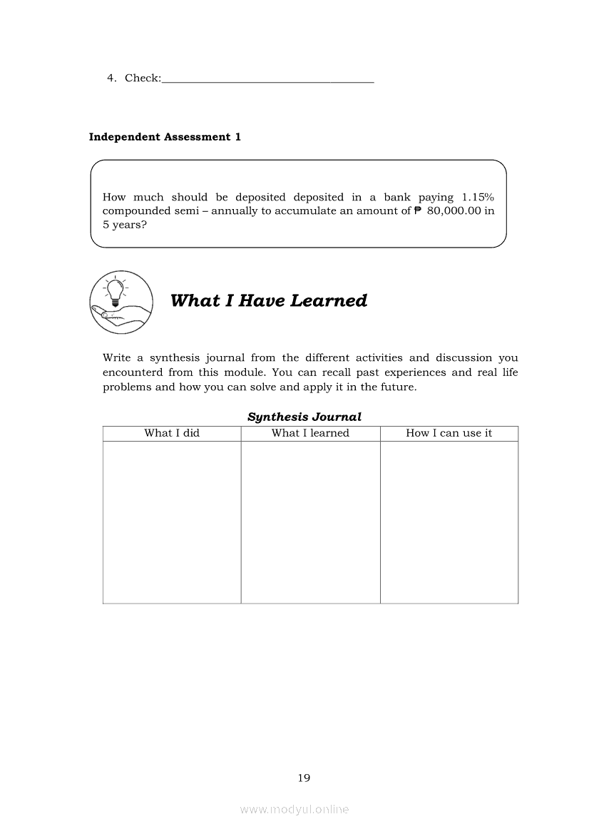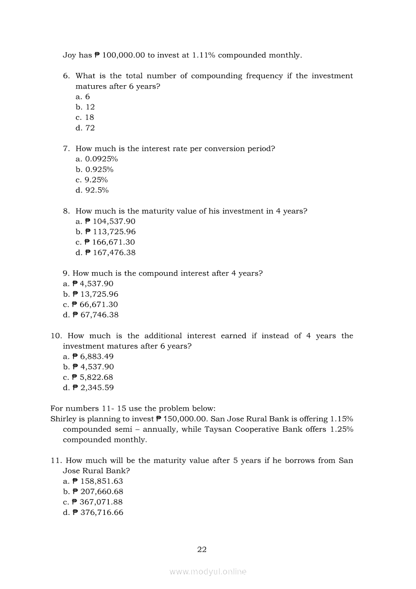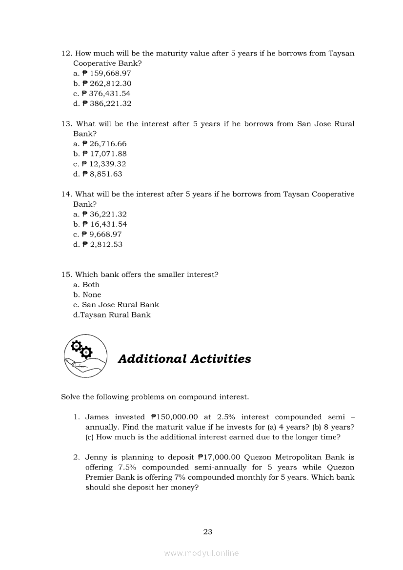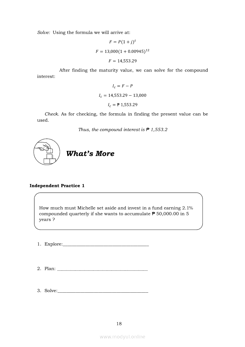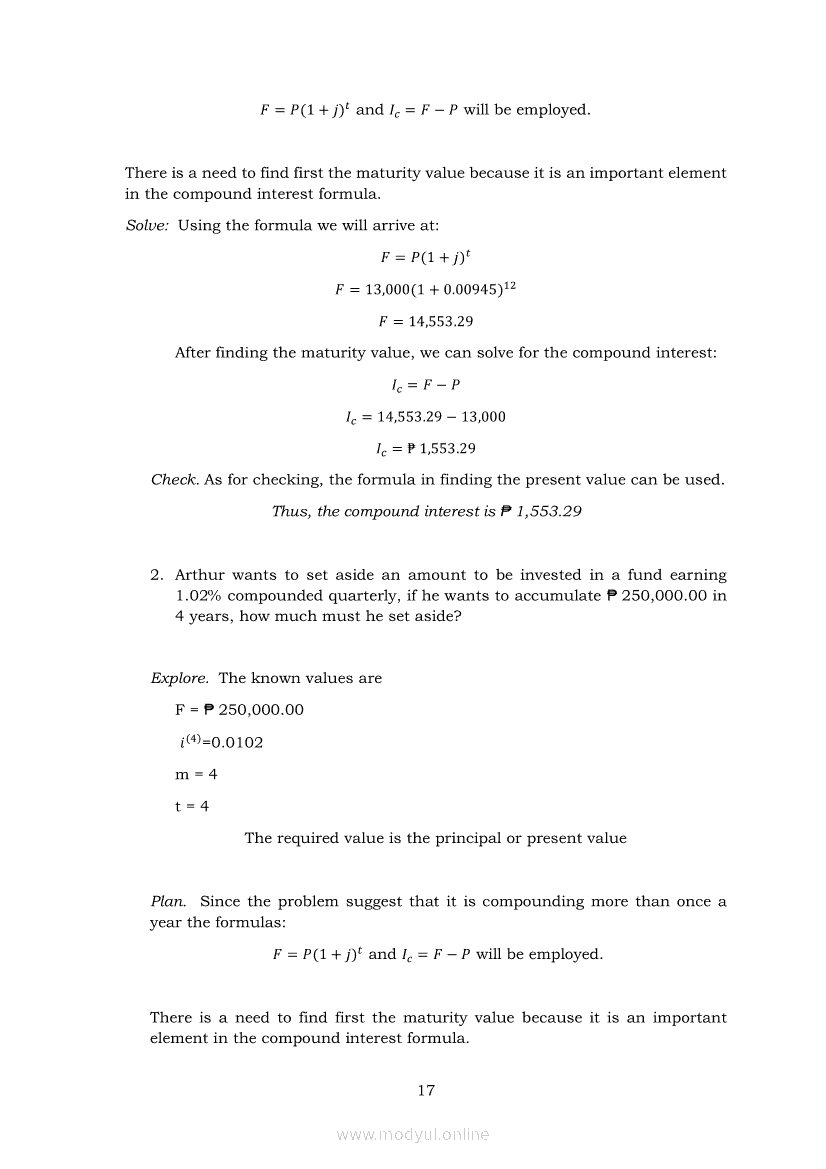 General Mathematics Quarter 2 – Module 3: Solving Problems Involving Simple and Compound InterestApr 22, 2021 SHSGrab your copy of Collegio Advance - ULTIMATE Updated College Entrance Exam Reviewer and pass with flying colors 🎉. General MathematicsRelatedGeneral Mathematics Module 5: Rational Functions, Equations and InequalitiesGeneral Mathematics Quarter 2 – Module 19: Validity of Categorical SyllogismsGeneral Mathematics Module 8: The Domain and Range of a Rational FunctionsGeneral Mathematics Quarter 2 – Module 2: Interest, Maturity, Future, and Present Values in Simple and Compound InterestsGeneral Mathematics Quarter 2 – Module 20: Valid Arguments and Fallacies