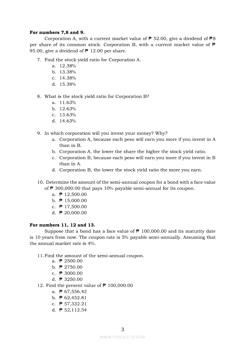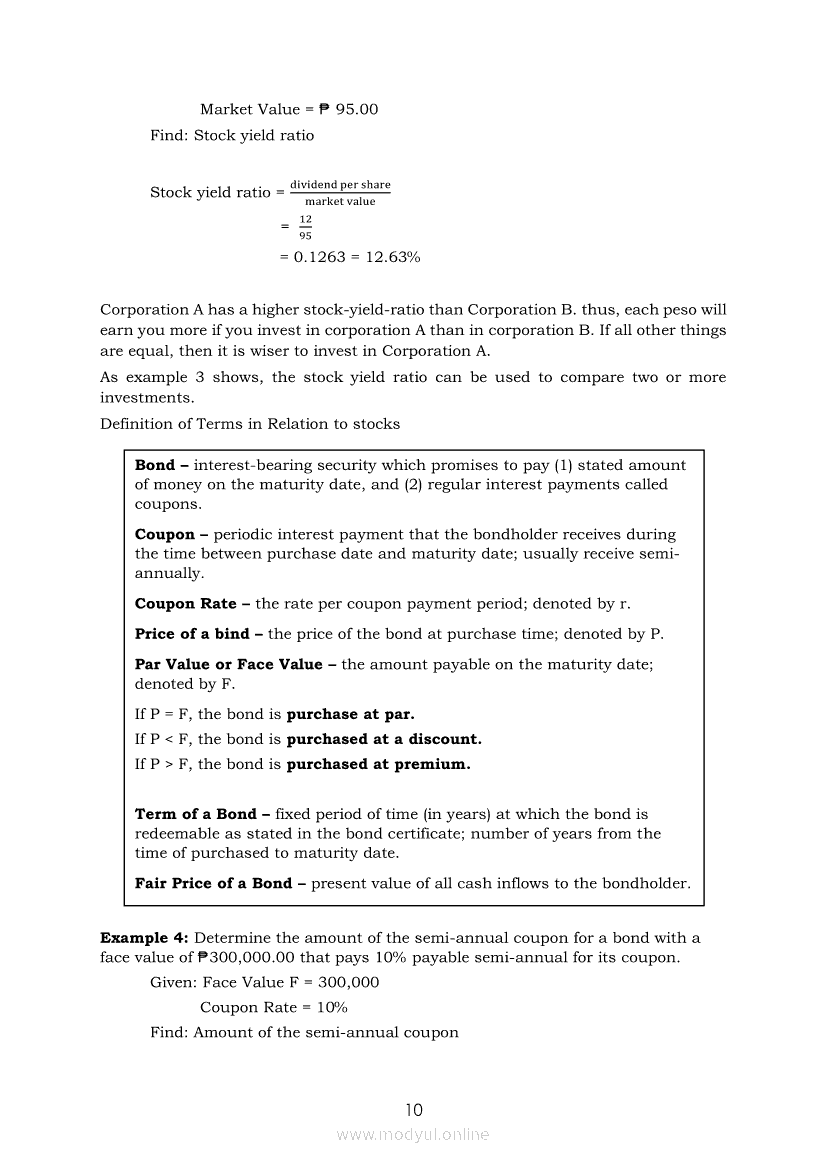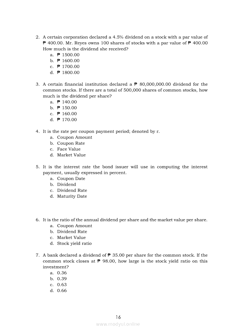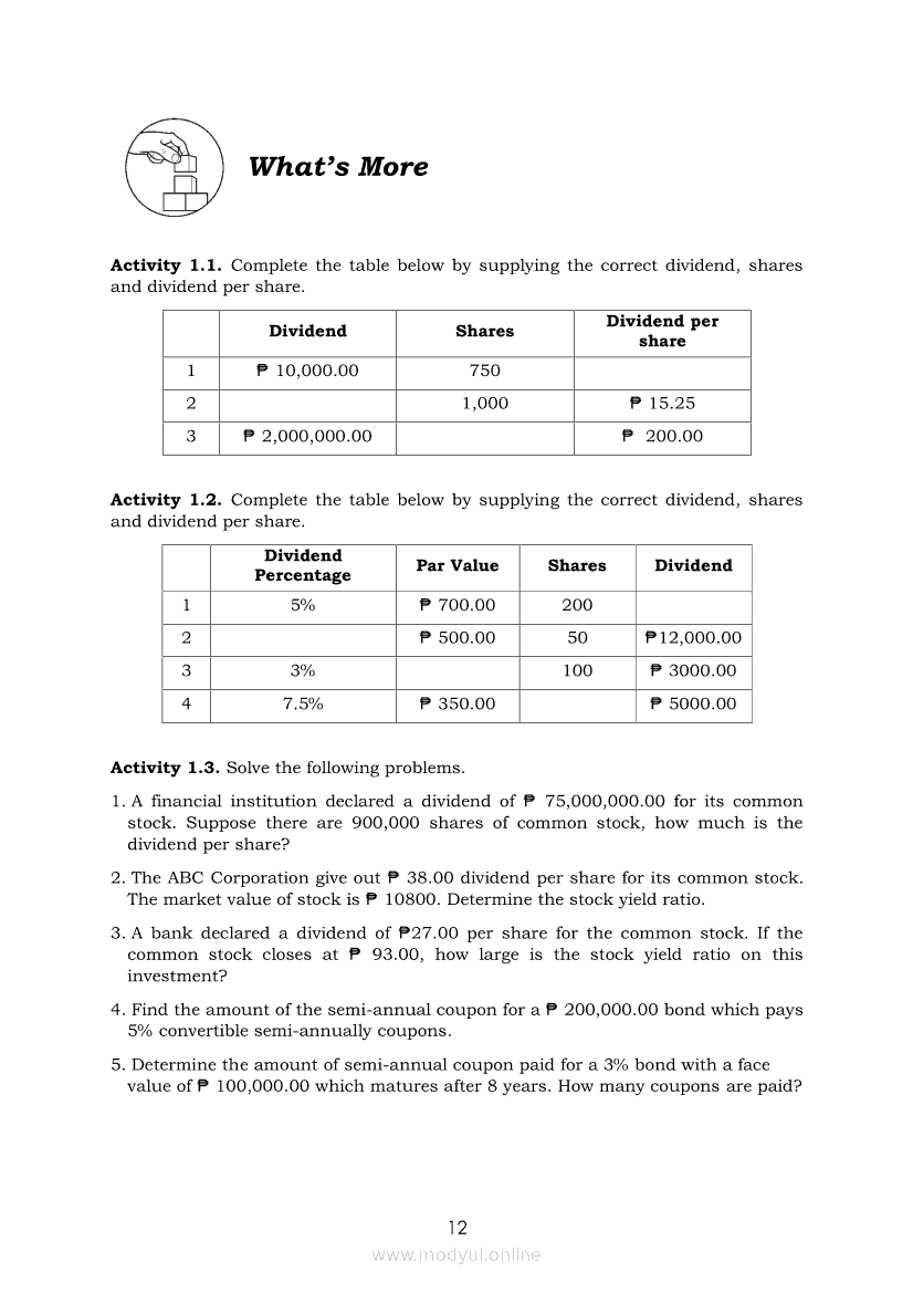 General Mathematics Quarter 2 – Module 8: Stocks and BondsApr 22, 2021 SHSGrab your copy of Collegio Advance - ULTIMATE Updated College Entrance Exam Reviewer and pass with flying colors 🎉. General MathematicsRelatedGeneral Mathematics Quarter 2 – Module 5: Future and Present Values of Simple and General AnnuitiesGeneral Mathematics Module 1: FunctionsGeneral Mathematics Module 12: The Inverse of One-to-one FunctionsGeneral Mathematics Quarter 2 – Module 2: Interest, Maturity, Future, and Present Values in Simple and Compound InterestsGeneral Mathematics Quarter 2 – Module 16: Truth Values of Propositions