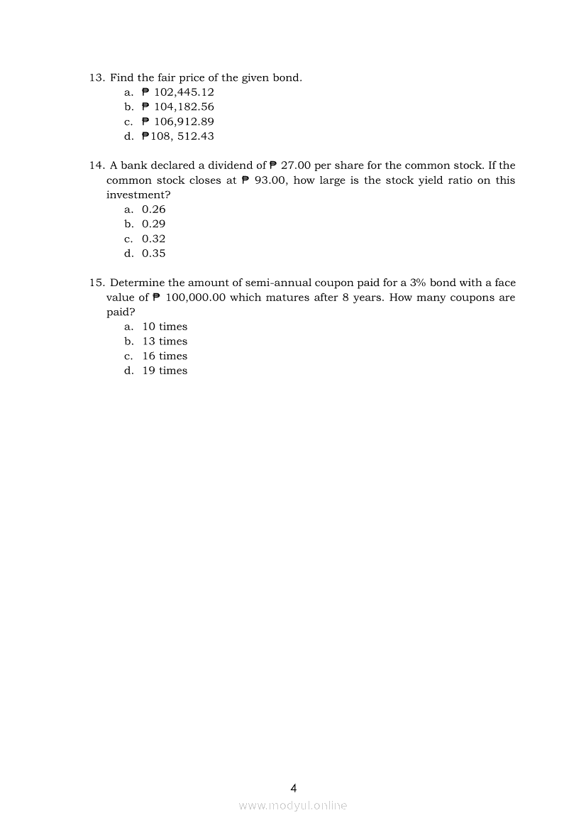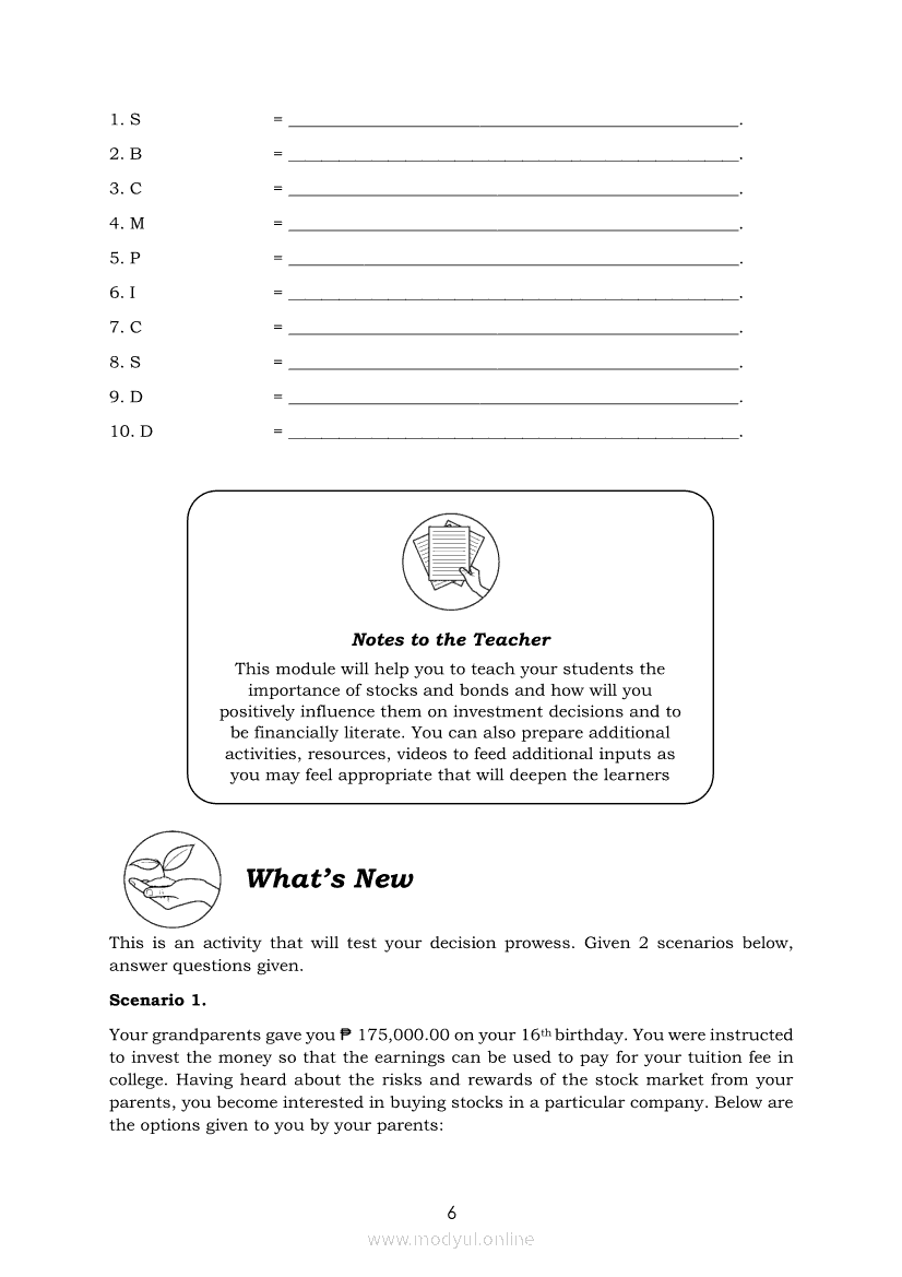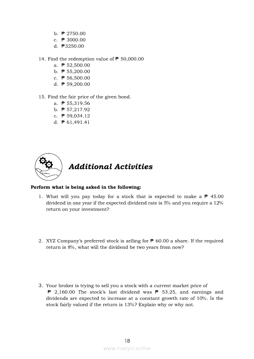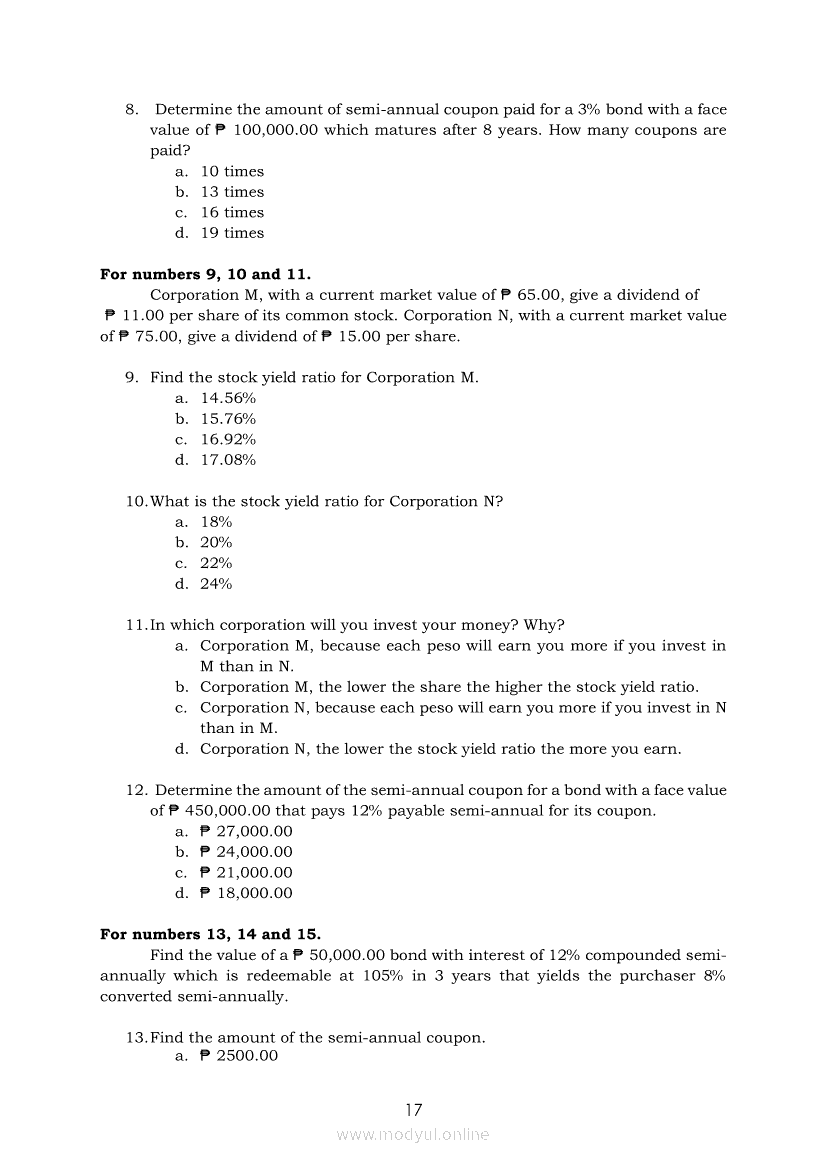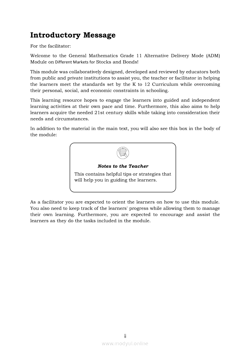 General Mathematics Quarter 2 – Module 8: Stocks and BondsApr 22, 2021 SHSGrab your copy of Collegio Advance - ULTIMATE Updated College Entrance Exam Reviewer and pass with flying colors 🎉. General MathematicsRelatedGeneral Mathematics Quarter 2 – Module 5: Future and Present Values of Simple and General AnnuitiesGeneral Mathematics Module 1: FunctionsGeneral Mathematics Module 12: The Inverse of One-to-one FunctionsGeneral Mathematics Quarter 2 – Module 2: Interest, Maturity, Future, and Present Values in Simple and Compound InterestsGeneral Mathematics Quarter 2 – Module 16: Truth Values of Propositions
