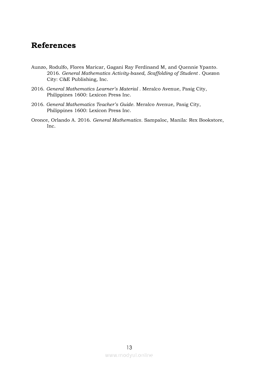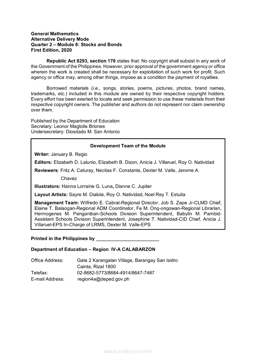 General Mathematics Quarter 2 – Module 9: Different Markets for Stocks and BondsApr 22, 2021 SHSGrab your copy of Collegio Advance - ULTIMATE Updated College Entrance Exam Reviewer and pass with flying colors 🎉. General MathematicsRelatedGeneral Mathematics Module 6: Solving Rational Equations and InequalitiesGeneral Mathematics Module 3: Operations on FunctionsGeneral Mathematics Module 14: Domain and Range of Inverse FunctionsGeneral Mathematics Module 20: Domain and Range of Exponential FunctionsGeneral Mathematics Module 4: Solving Real- Life Problems Involving Functions