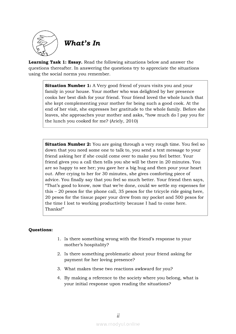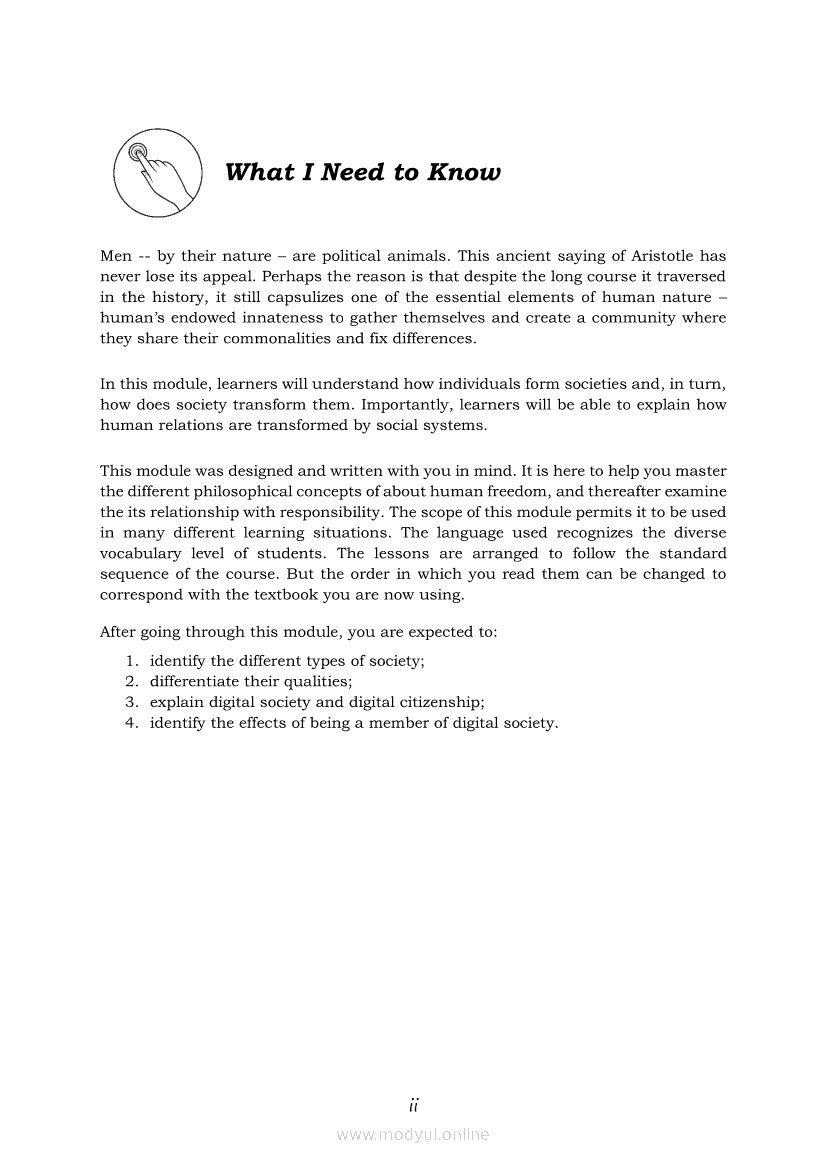Introduction to Philosophy of the Human Person Quarter 2 – Module 3: Human Person and SocietyApr 22, 2021 SHSGrab your copy of Collegio Advance - ULTIMATE Updated College Entrance Exam Reviewer and pass with flying colors 🎉. Introduction to Philosophy of the Human PersonRelatedIntroduction to Philosophy Method of Philosophizing Quarter 1 Week 5Introduction to Philosophy of the Human Person Doing PhilosophyIntroduction to Philosophy of the Human Person Module 4: THE HUMAN PERSON IN THE ENVIRONMENTIntroduction to Philosophy of the Human Person Quarter 2 – Module 1: Freedom and ResponsibilityIntroduction to Philosophy of the Human Person Quarter 2 – Module 4: Human Person and Death