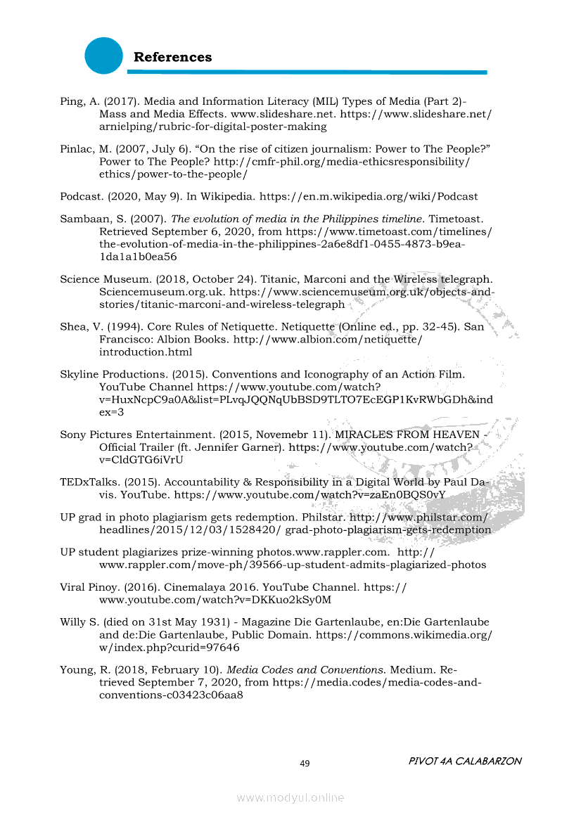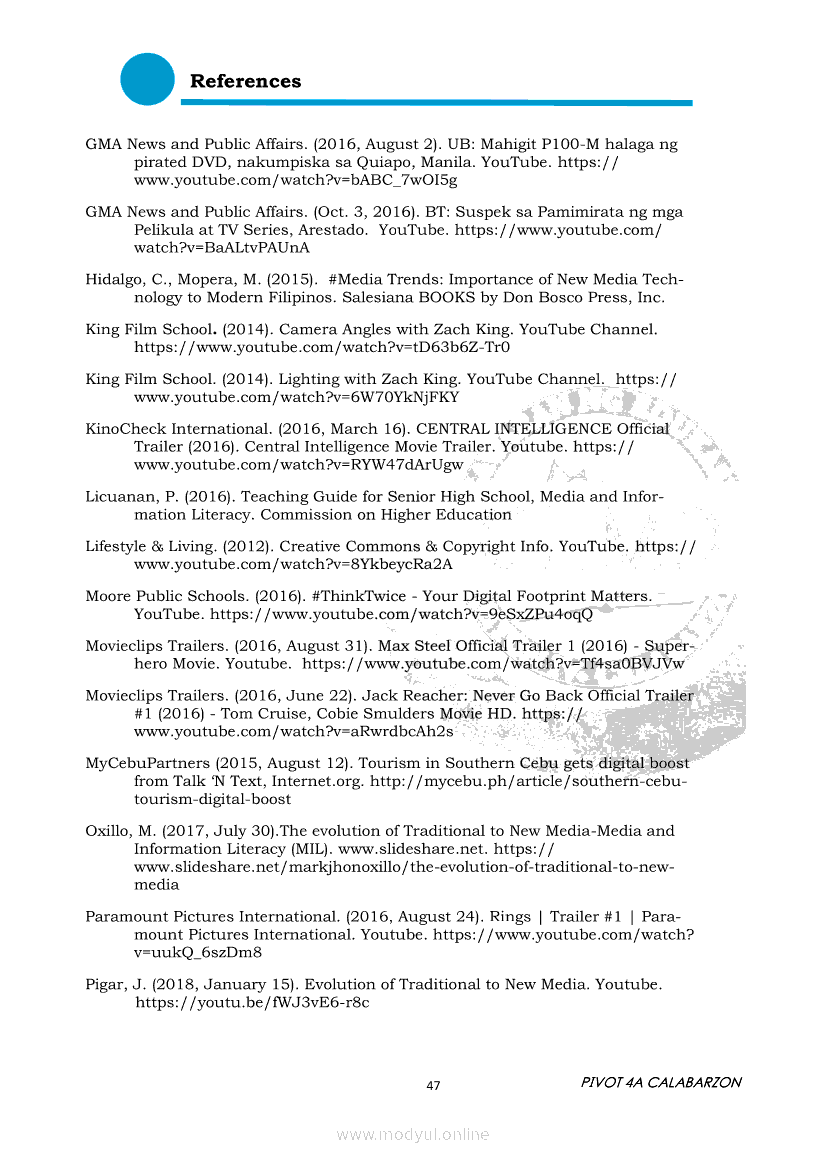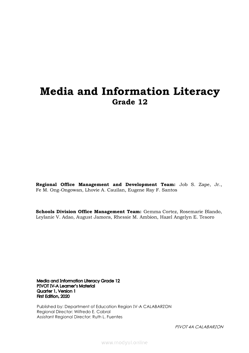Media and Information Literacy Grade 12 (PIVOT)Apr 22, 2021 SHSGrab your copy of Collegio Advance - ULTIMATE Updated College Entrance Exam Reviewer and pass with flying colors 🎉. Media and Information LiteracyRelatedMedia and Information Literacy Quarter 2 – Module 8: Evaluating MultimediaMedia and Information Literacy Quarter 2 – Module 7: Producing Multimedia ContentMedia and Information Literacy Quarter 2 – Module 5: Audio and Motion Dimensions of Information and MediaMedia and Information Literacy Quarter 2 – Module 1: The Power of Media and InformationMedia and Information Literacy Quarter 2 – Module 3: Implications of Media and Information