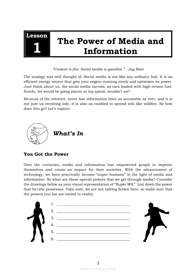 Media and Information Literacy Quarter 2 – Module 1: The Power of Media and InformationApr 22, 2021 SHSGrab your copy of Collegio Advance - ULTIMATE Updated College Entrance Exam Reviewer and pass with flying colors 🎉. Media and Information LiteracyRelatedMedia and Information Literacy Grade 12 (PIVOT)Media and Information Literacy Quarter 2 – Module 5: Audio and Motion Dimensions of Information and MediaMedia and Information Literacy Quarter 2 – Module 6: Manipulative and Multimedia Dimensions of Information and MediaMedia and Information Literacy Quarter 2 – Module 9: Creative Content CreationMedia and Information Literacy Quarter 2 – Module 4: Text and Visual Dimensions of Information and Media