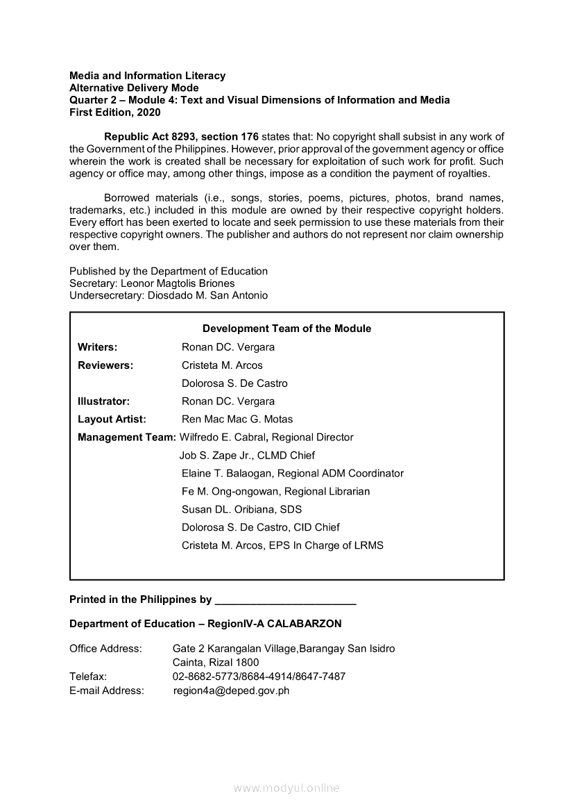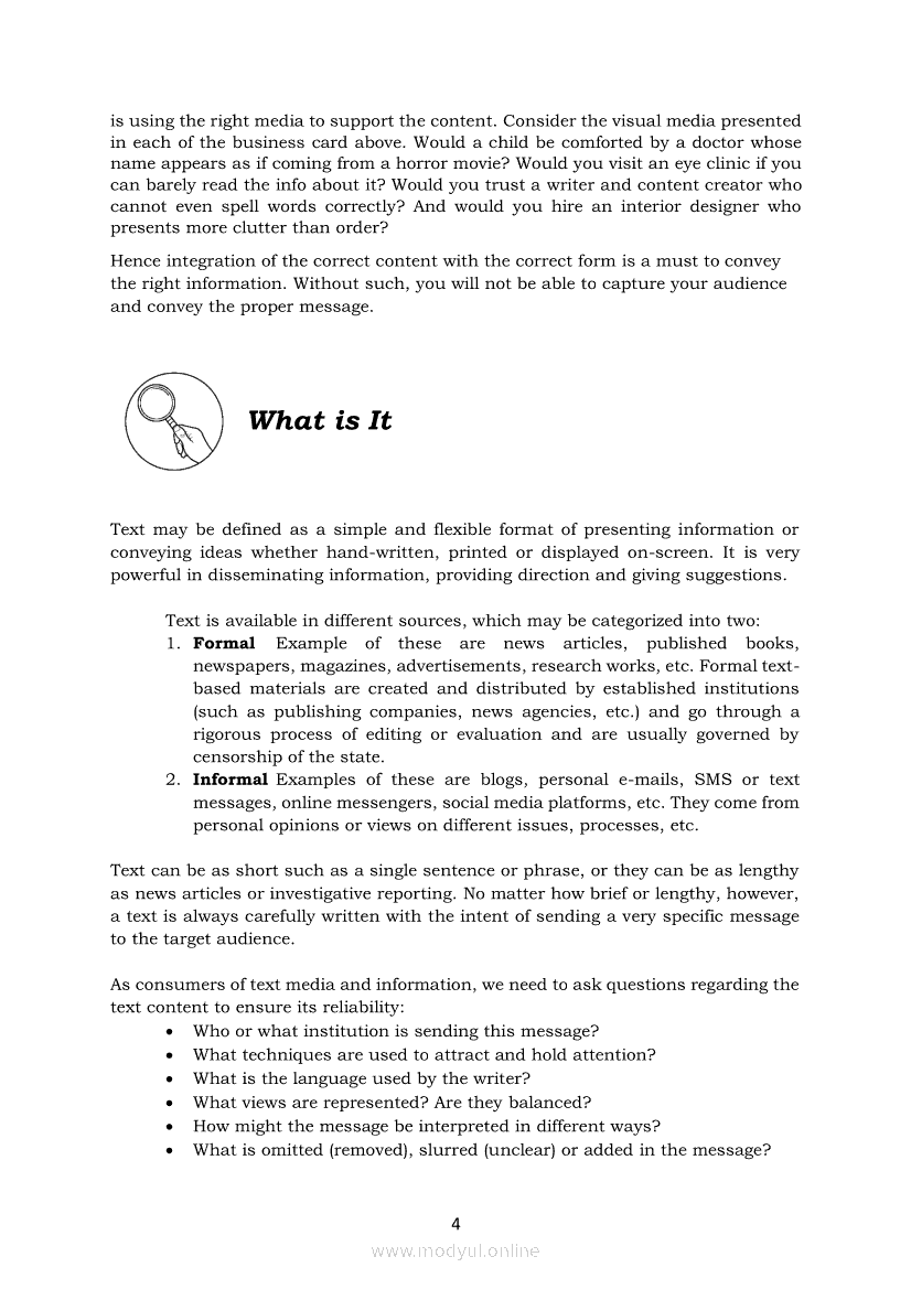 Media and Information Literacy Quarter 2 – Module 4: Text and Visual Dimensions of Information and MediaApr 22, 2021 SHSGrab your copy of Collegio Advance - ULTIMATE Updated College Entrance Exam Reviewer and pass with flying colors 🎉. Media and Information LiteracyRelatedMedia and Information Literacy Quarter 2 – Module 9: Creative Content CreationMedia and Information Literacy Quarter 2 – Module 7: Producing Multimedia ContentMedia and Information Literacy Quarter 2 – Module 2: Current and Future Trends in Media and InformationMedia and Information Literacy Quarter 2 – Module 6: Manipulative and Multimedia Dimensions of Information and MediaMedia and Information Literacy Quarter 2 – Module 5: Audio and Motion Dimensions of Information and Media
