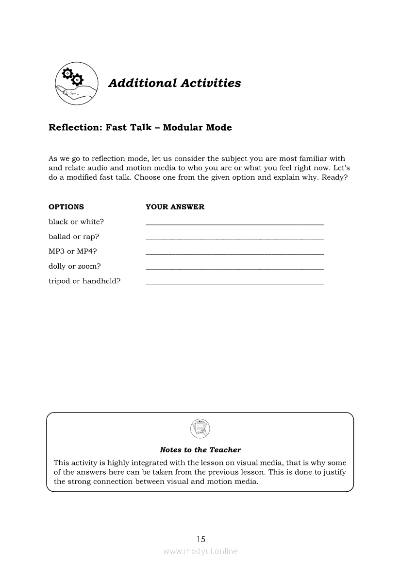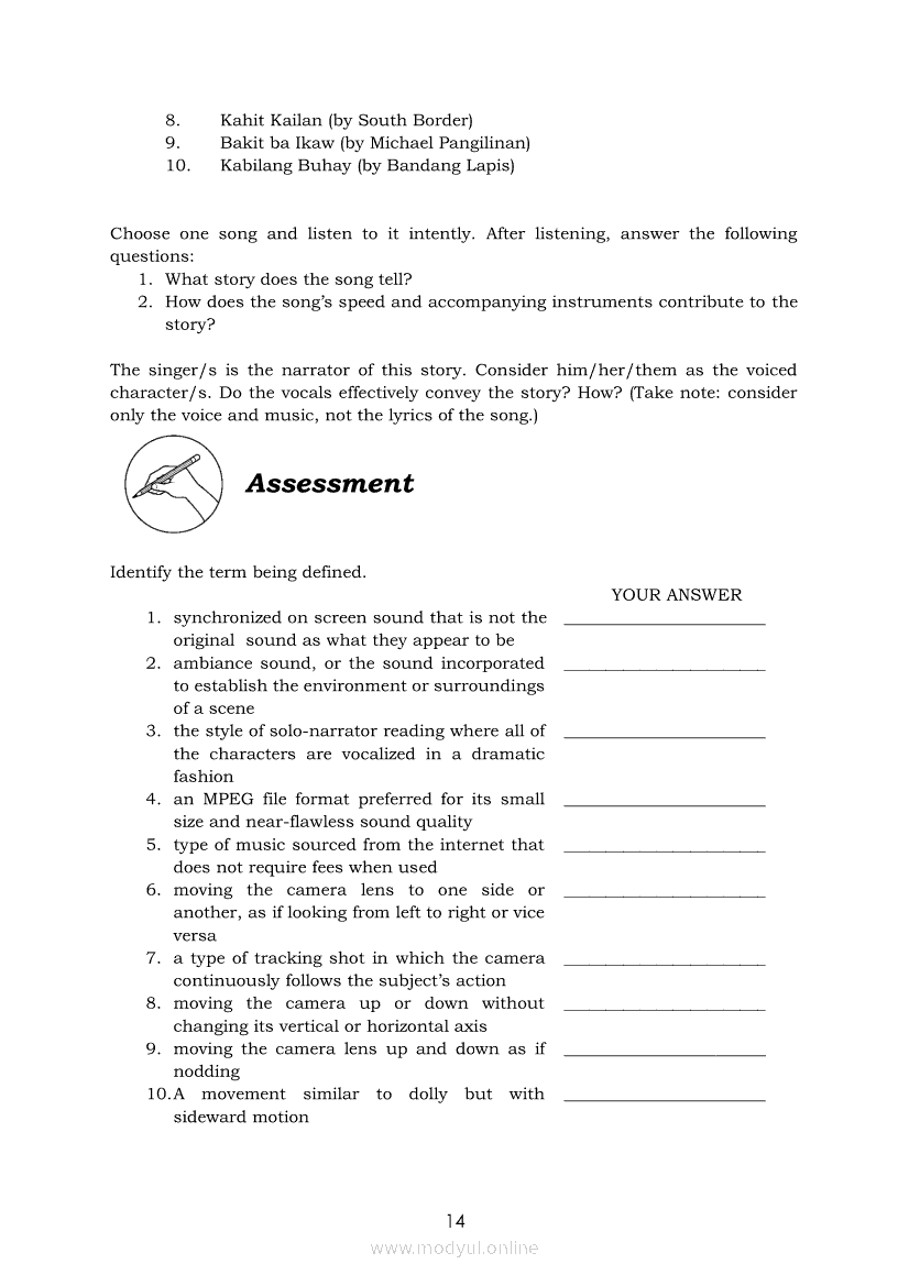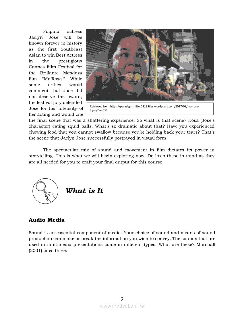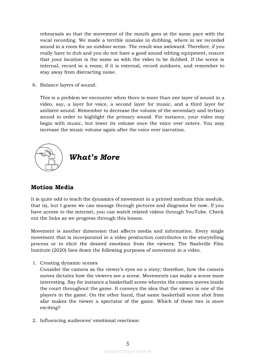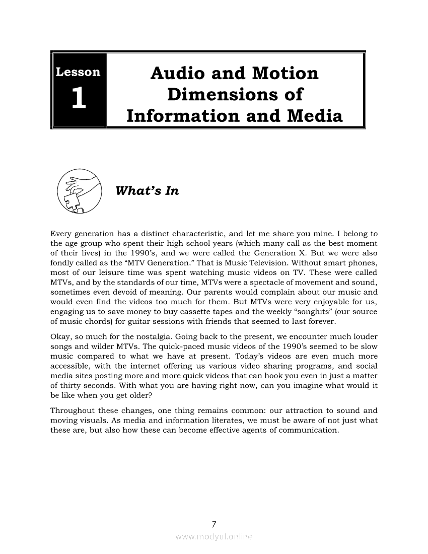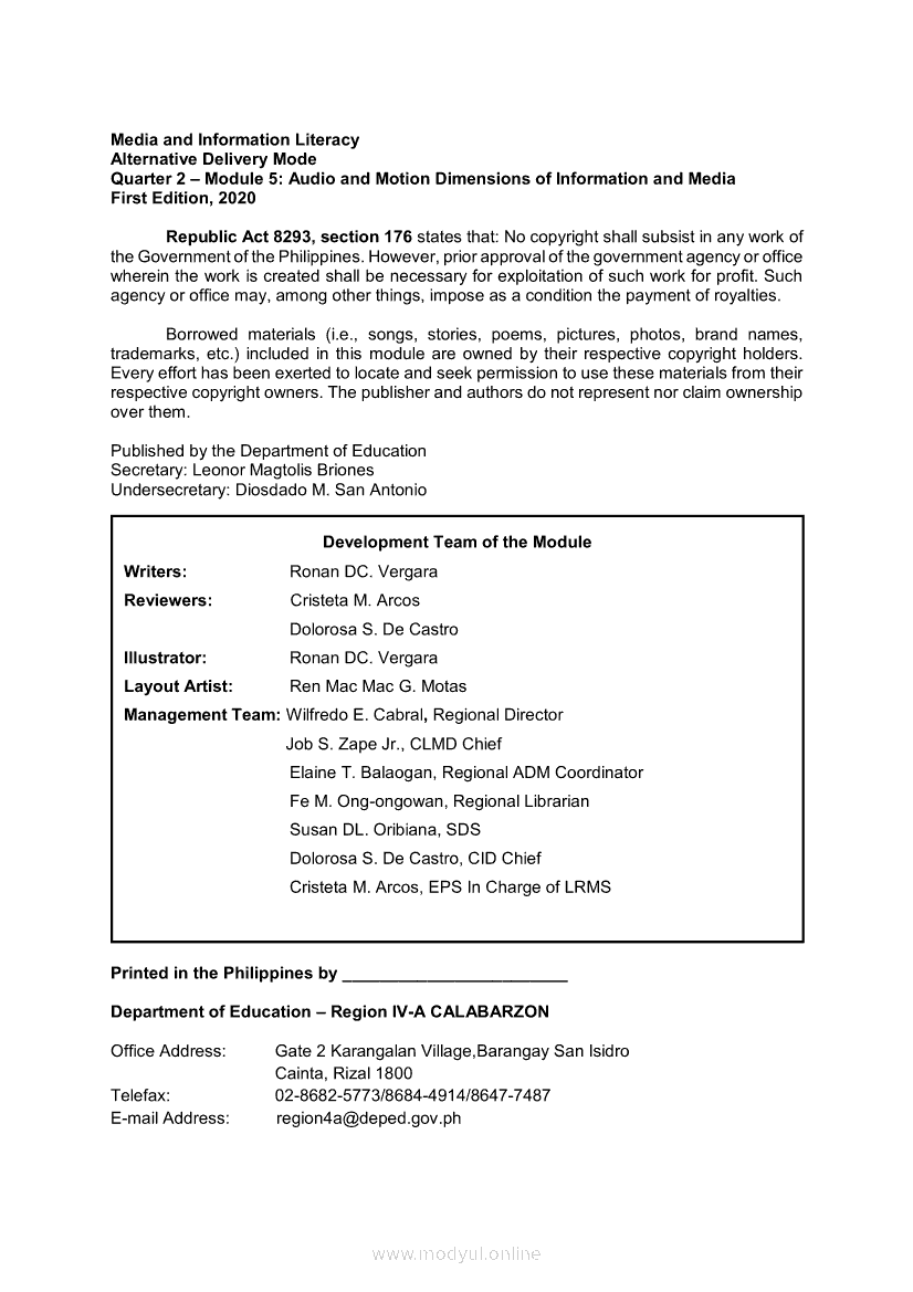 Media and Information Literacy Quarter 2 – Module 5: Audio and Motion Dimensions of Information and MediaApr 22, 2021 SHSGrab your copy of Collegio Advance - ULTIMATE Updated College Entrance Exam Reviewer and pass with flying colors 🎉. Media and Information LiteracyRelatedMedia and Information Literacy Quarter 2 – Module 6: Manipulative and Multimedia Dimensions of Information and MediaMedia and Information Literacy Quarter 2 – Module 9: Creative Content CreationMedia and Information Literacy Quarter 2 – Module 4: Text and Visual Dimensions of Information and MediaMedia and Information Literacy Quarter 2 – Module 1: The Power of Media and InformationMedia and Information Literacy Quarter 2 – Module 2: Current and Future Trends in Media and Information
