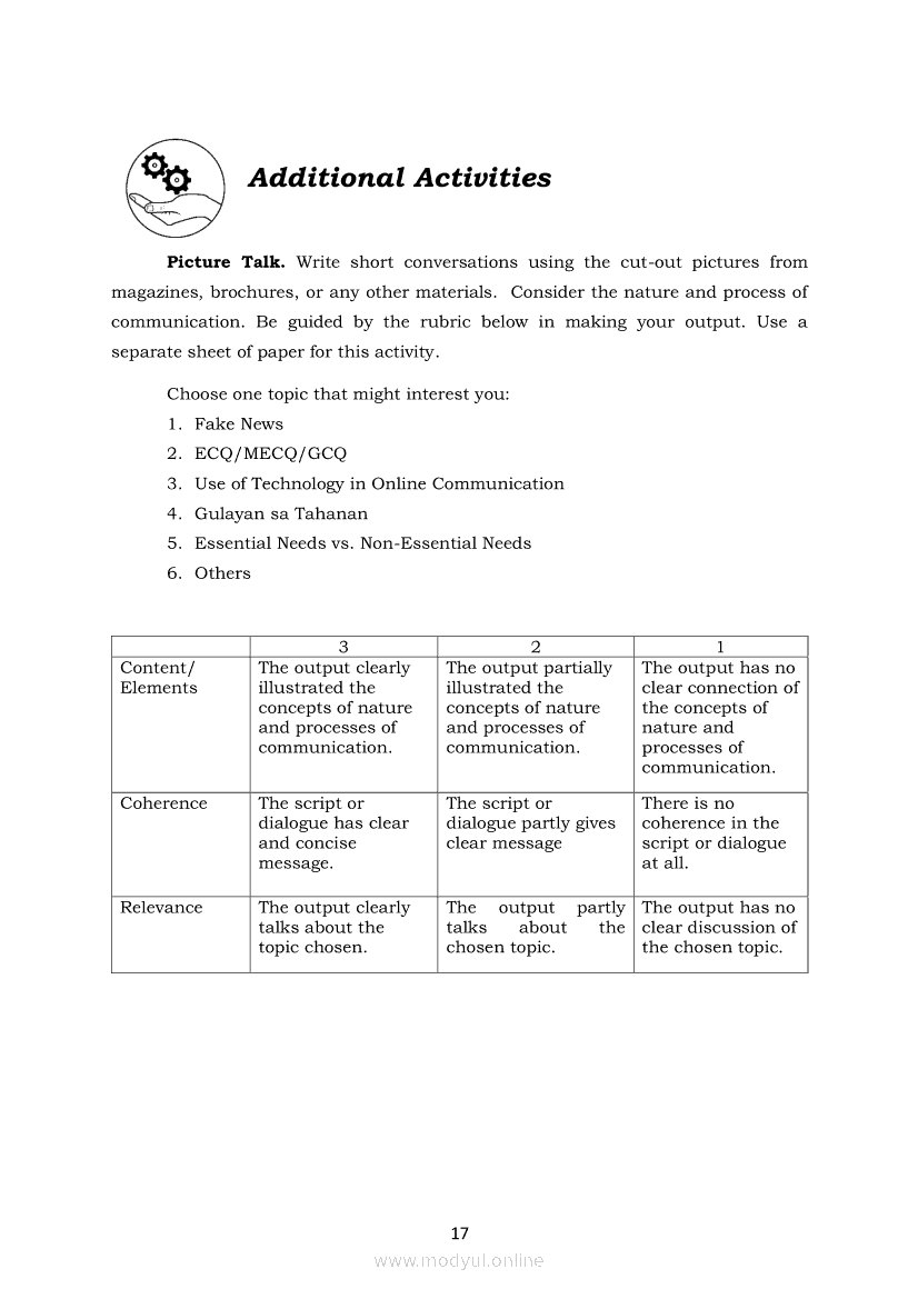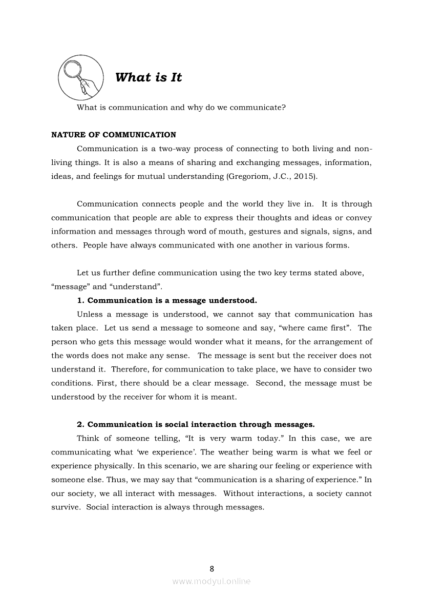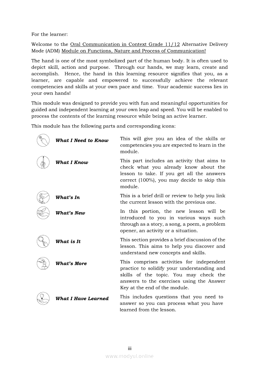 Oral Communication in Context Module 1-Functions, Nature and Process of CommunicationApr 22, 2021 SHSGrab your copy of Collegio Advance - ULTIMATE Updated College Entrance Exam Reviewer and pass with flying colors 🎉. Oral Communication in ContextRelatedOral Communication in Context Quarter 2 – Module 2: Understanding Speech Context, Speech Style, Speech Act and Communicative StrategyOral Communication in Context Module 5: Types of Speech ContextOral Communication in Context Module 7: Types of Speech ActOral Communication in Context Oral Communication in Context (PIVOT)Oral Communication in Context Module 3: Strategies to Avoid Communication Breakdown