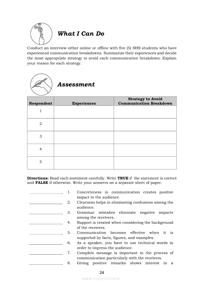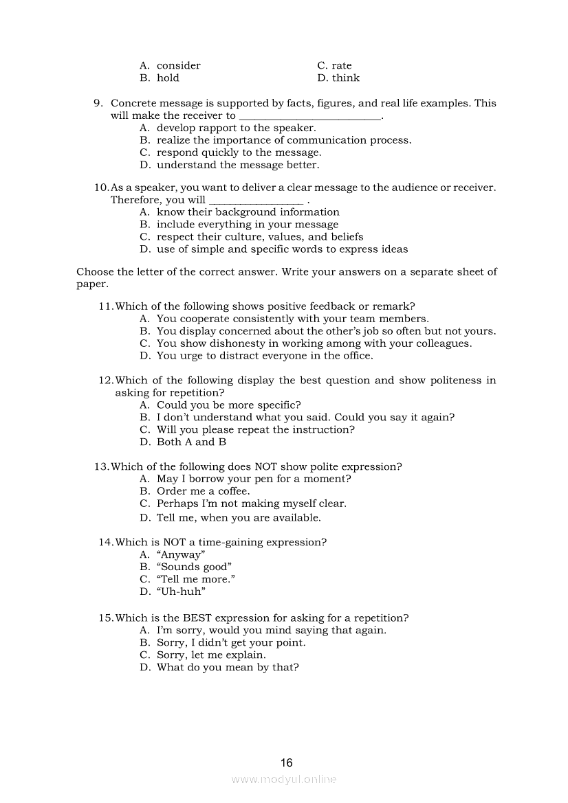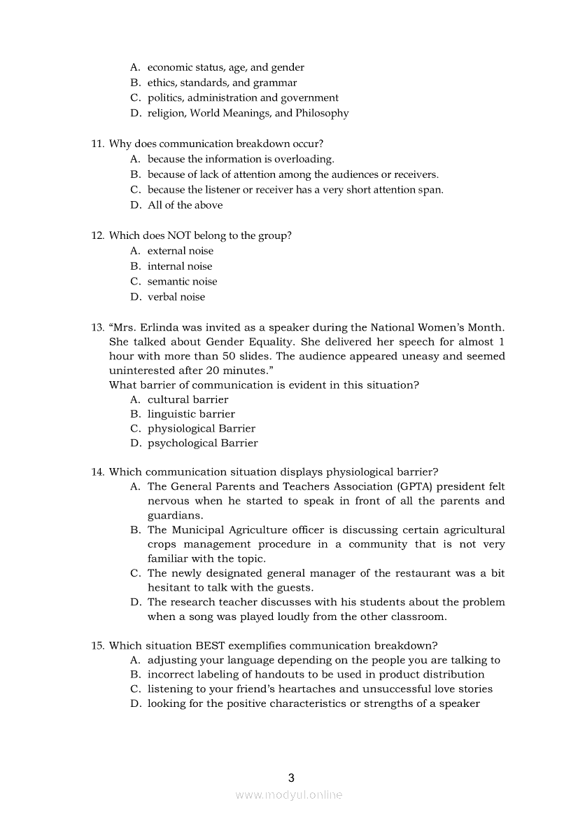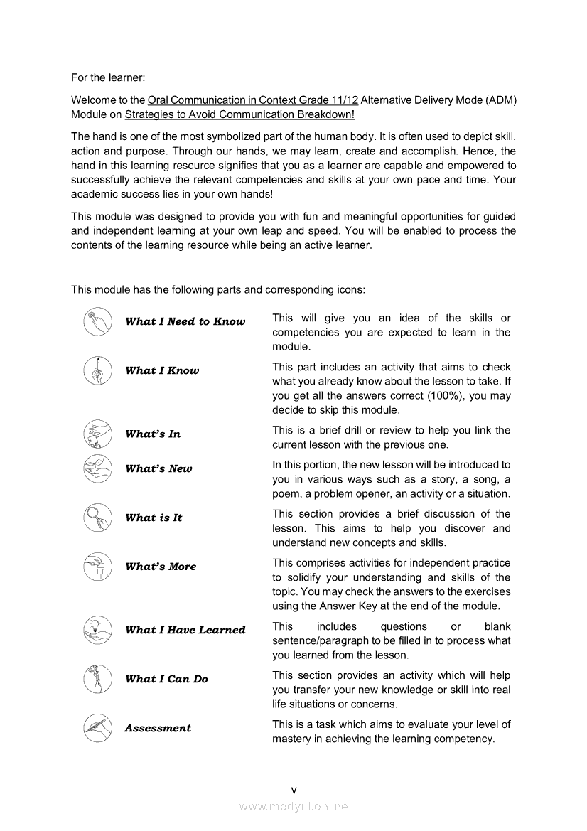 Oral Communication in Context Module 3: Strategies to Avoid Communication BreakdownApr 22, 2021 SHSGrab your copy of Collegio Advance - ULTIMATE Updated College Entrance Exam Reviewer and pass with flying colors 🎉. Oral Communication in ContextRelatedOral Communication in Context Module 1-Functions, Nature and Process of CommunicationOral Communication in Context Quarter 2 – Module 2: Understanding Speech Context, Speech Style, Speech Act and Communicative StrategyOral Communication in Context Quarter 2 – Module 1: Types of Communicative StrategyOral Communication in Context Module 5: Types of Speech ContextOral Communication in Context Oral Communication in Context (PIVOT)