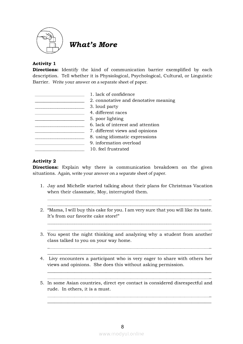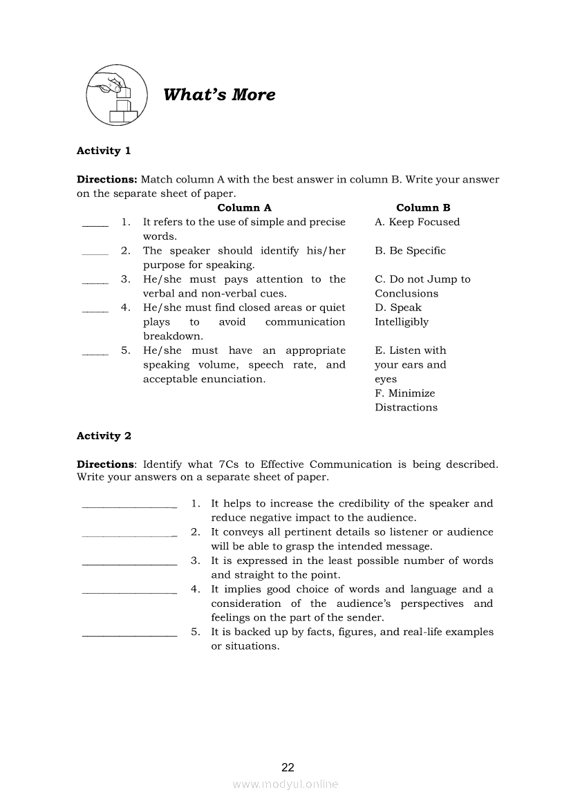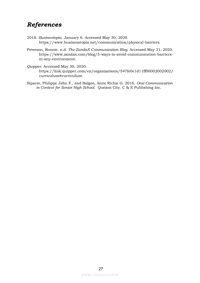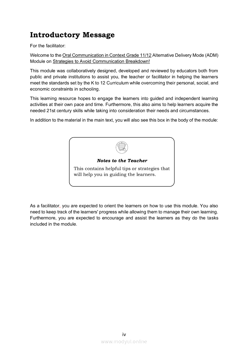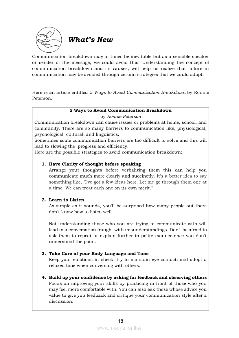 Oral Communication in Context Module 3: Strategies to Avoid Communication BreakdownApr 22, 2021 SHSGrab your copy of Collegio Advance - ULTIMATE Updated College Entrance Exam Reviewer and pass with flying colors 🎉. Oral Communication in ContextRelatedOral Communication in Context Module 1-Functions, Nature and Process of CommunicationOral Communication in Context Quarter 2 – Module 2: Understanding Speech Context, Speech Style, Speech Act and Communicative StrategyOral Communication in Context Quarter 2 – Module 1: Types of Communicative StrategyOral Communication in Context Module 5: Types of Speech ContextOral Communication in Context Oral Communication in Context (PIVOT)