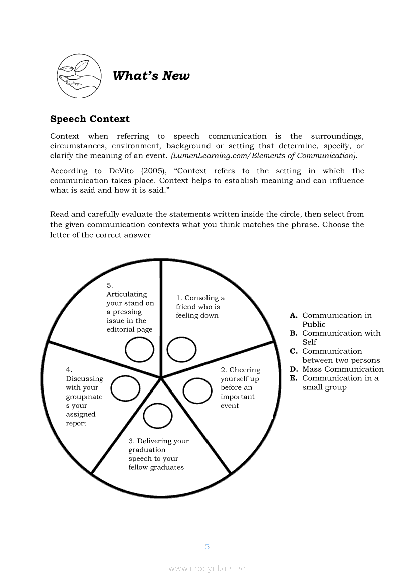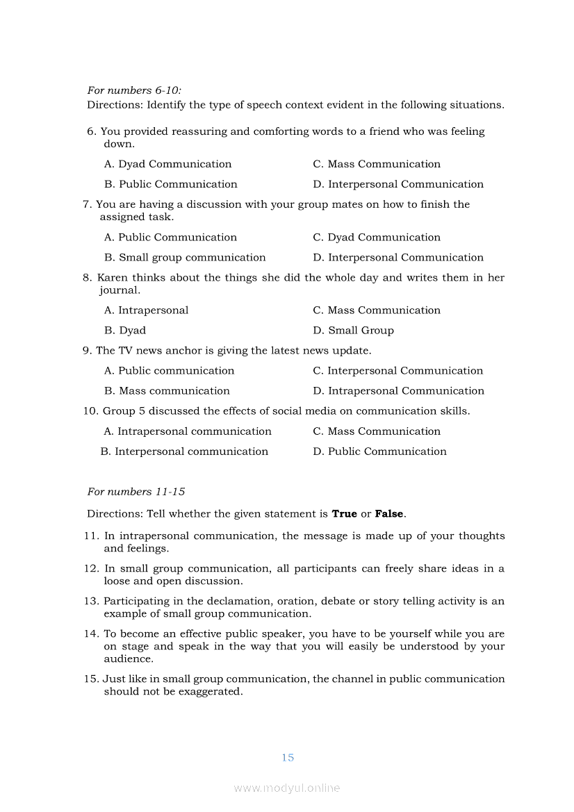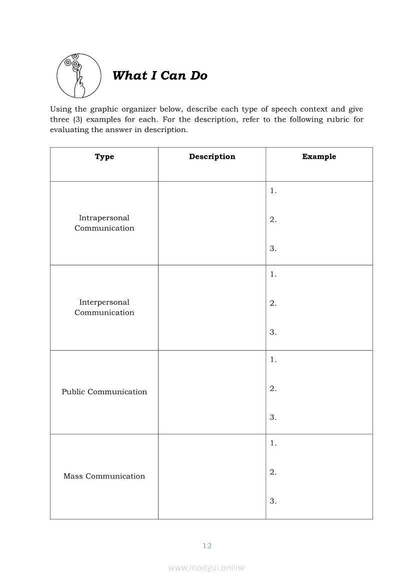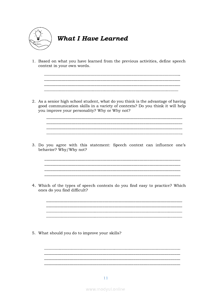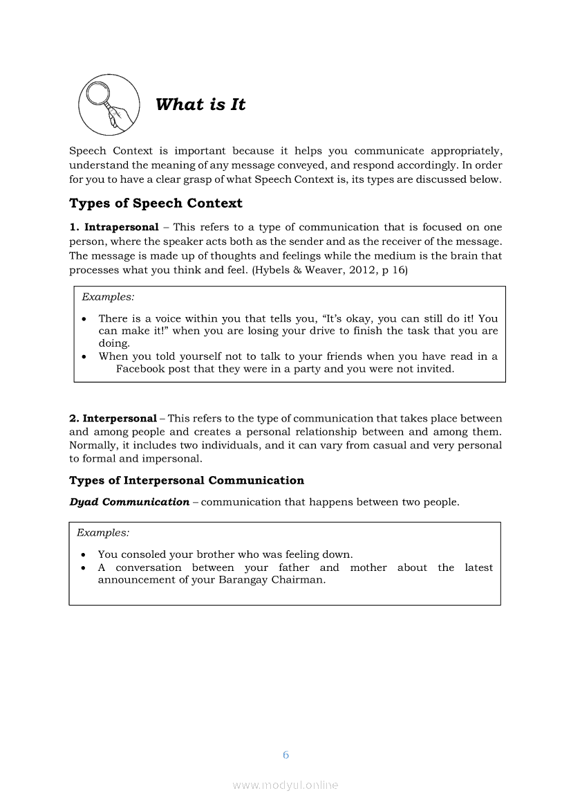 Oral Communication in Context Module 5: Types of Speech ContextApr 22, 2021 SHSGrab your copy of Collegio Advance - ULTIMATE Updated College Entrance Exam Reviewer and pass with flying colors 🎉. Oral Communication in ContextRelatedOral Communication in Context Module 3: Strategies to Avoid Communication BreakdownOral Communication in Context Module 1-Functions, Nature and Process of CommunicationOral Communication in Context Oral Communication in Context (PIVOT)Oral Communication in Context Module 2: Communication ModelsOral Communication in Context Quarter 2 – Module 2: Understanding Speech Context, Speech Style, Speech Act and Communicative Strategy