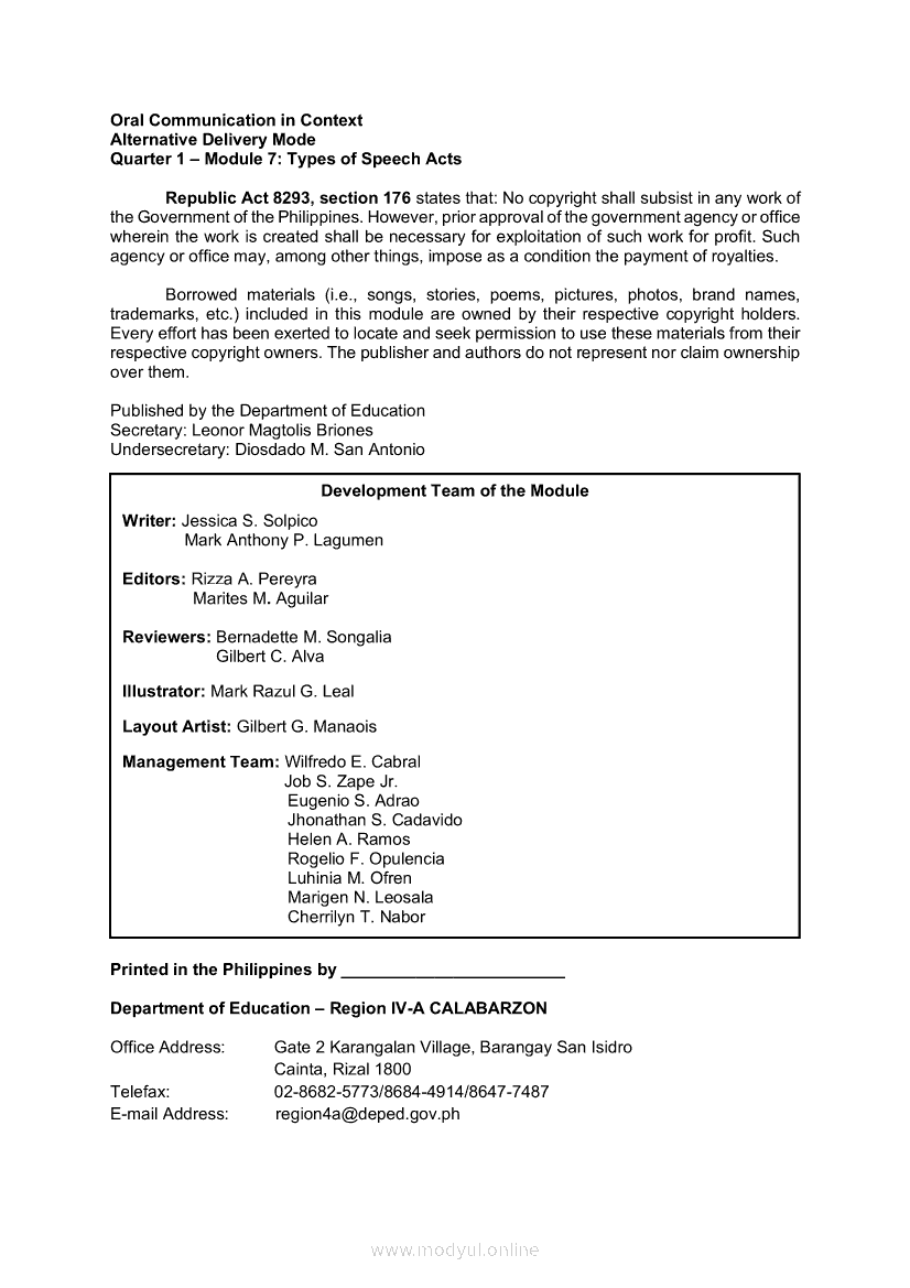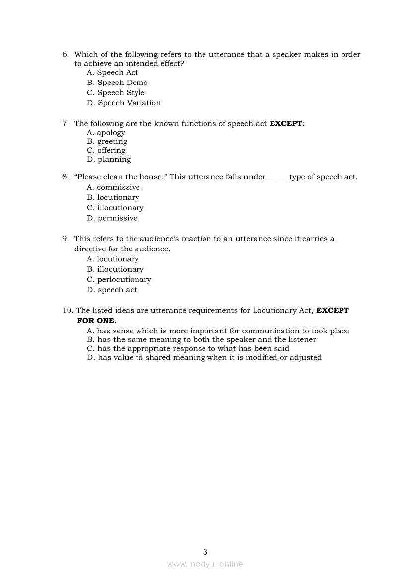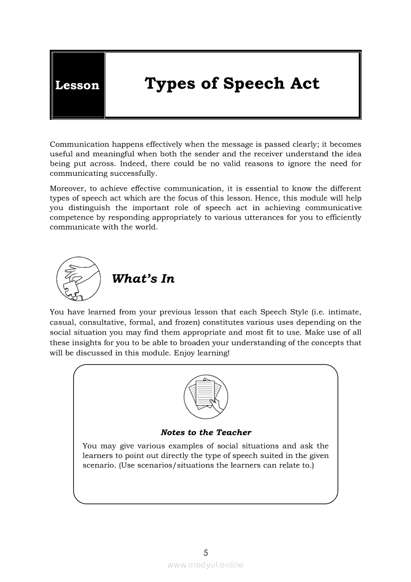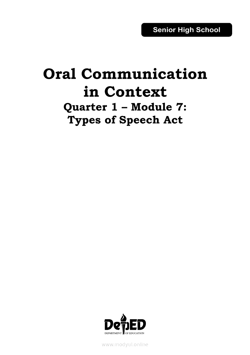 Oral Communication in Context Module 7: Types of Speech ActApr 22, 2021 SHSGrab your copy of Collegio Advance - ULTIMATE Updated College Entrance Exam Reviewer and pass with flying colors 🎉. Oral Communication in ContextRelatedOral Communication in Context Module 3: Strategies to Avoid Communication BreakdownOral Communication in Context Module 1-Functions, Nature and Process of CommunicationOral Communication in Context Module 5: Types of Speech ContextOral Communication in Context Quarter 2 – Module 3: Principles of Effective Speech Writing and DeliveryOral Communication in Context Module 2: Communication Models