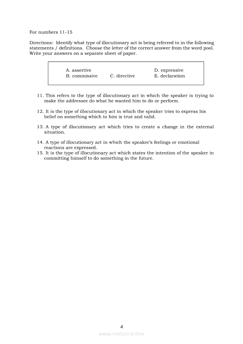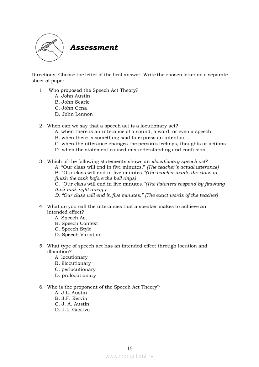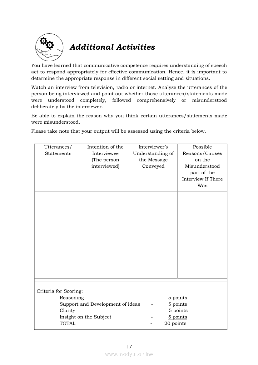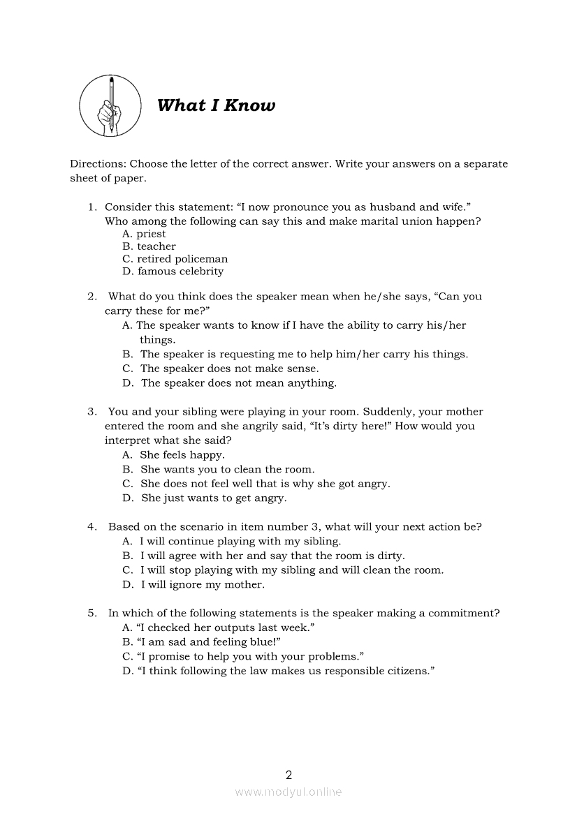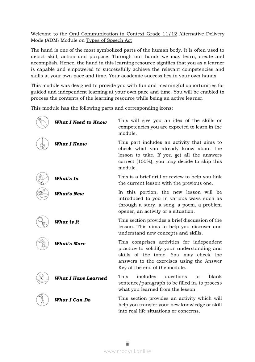 Oral Communication in Context Module 7: Types of Speech ActApr 22, 2021 SHSGrab your copy of Collegio Advance - ULTIMATE Updated College Entrance Exam Reviewer and pass with flying colors 🎉. Oral Communication in ContextRelatedOral Communication in Context Module 3: Strategies to Avoid Communication BreakdownOral Communication in Context Module 1-Functions, Nature and Process of CommunicationOral Communication in Context Module 5: Types of Speech ContextOral Communication in Context Quarter 2 – Module 3: Principles of Effective Speech Writing and DeliveryOral Communication in Context Module 2: Communication Models